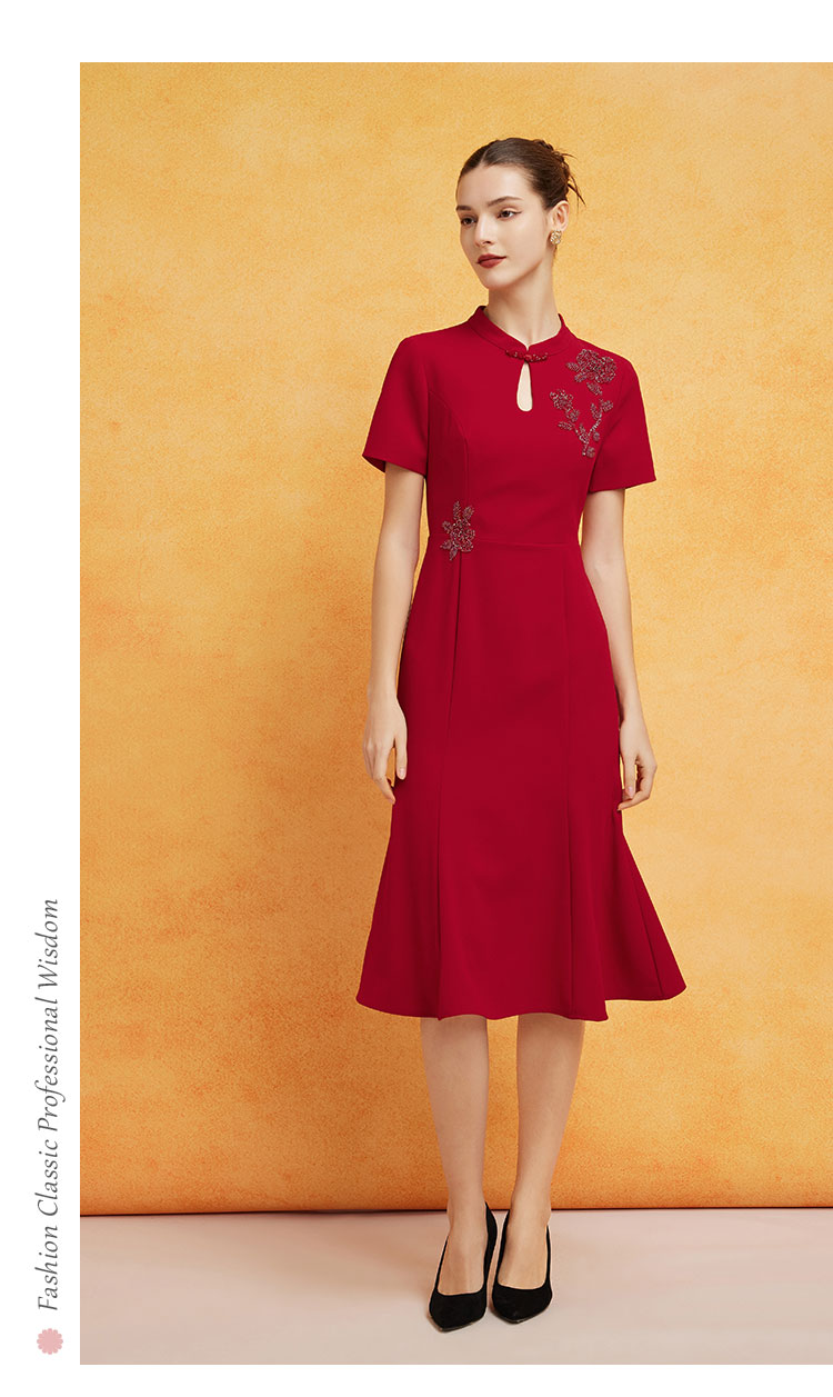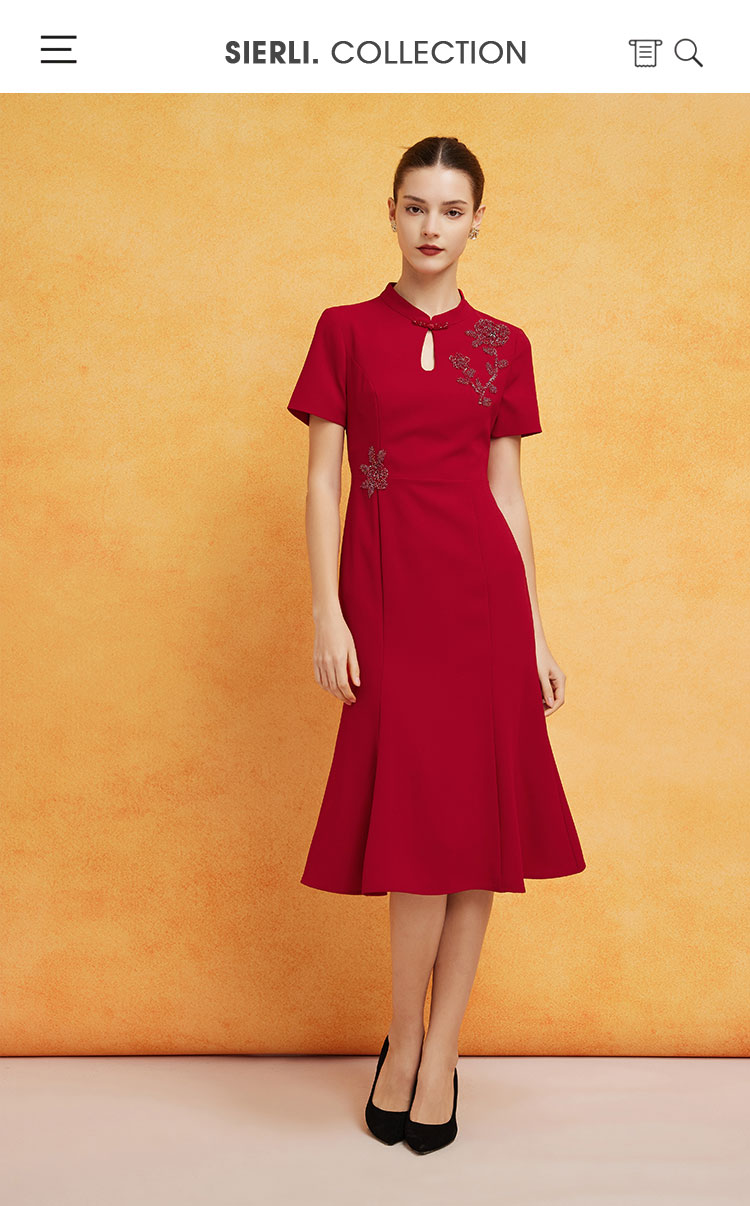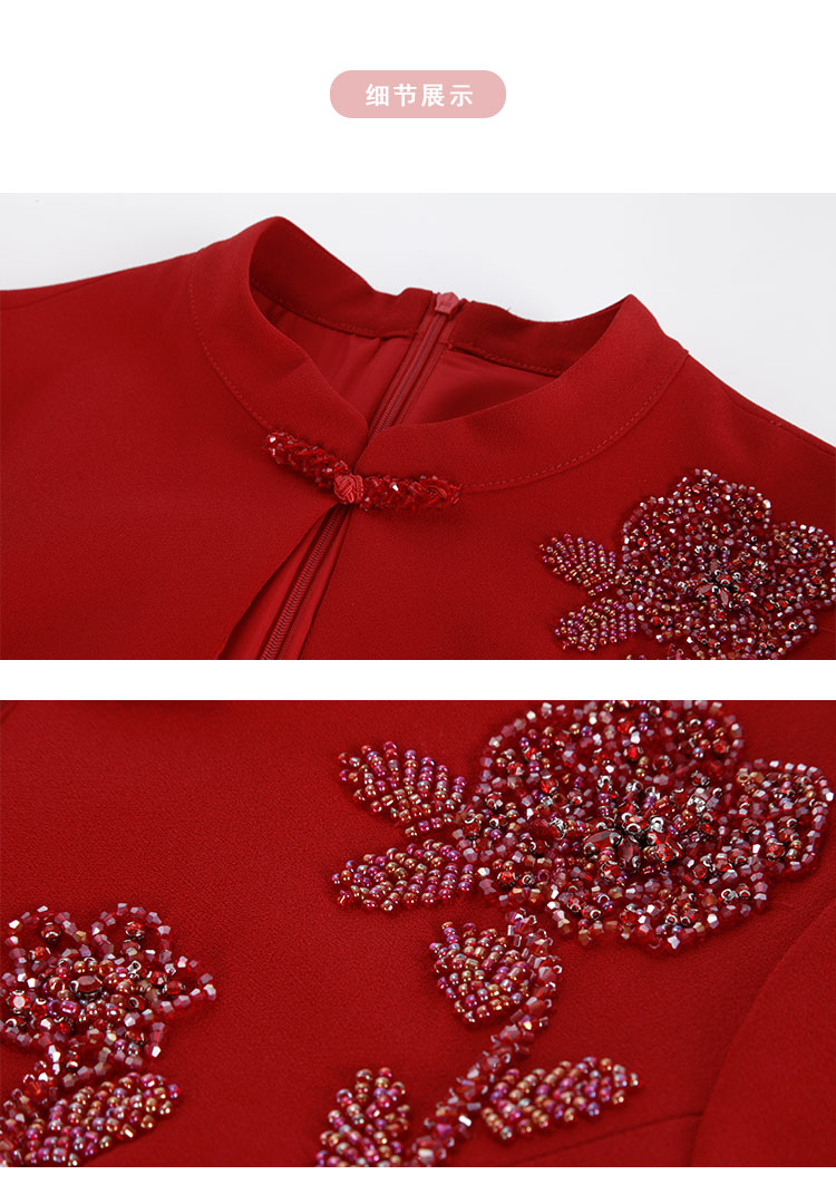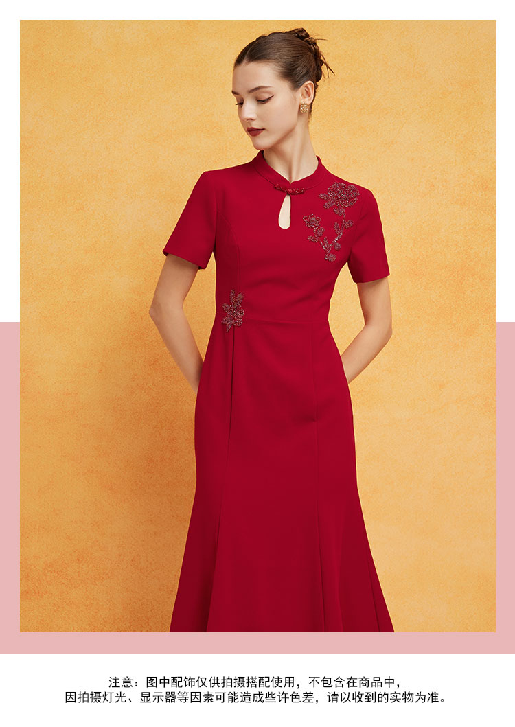 PF8J6斯尔丽2024新款商场同款改良旗袍收腰A摆重工宴会礼服连衣裙
