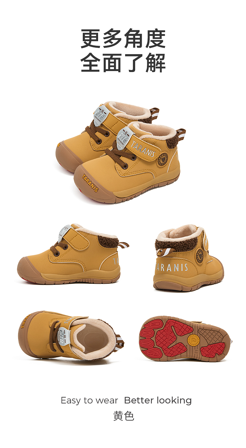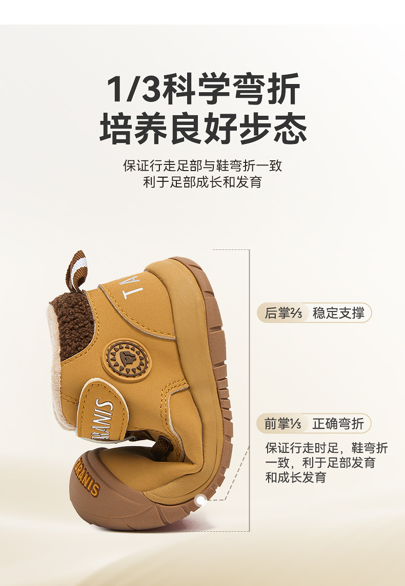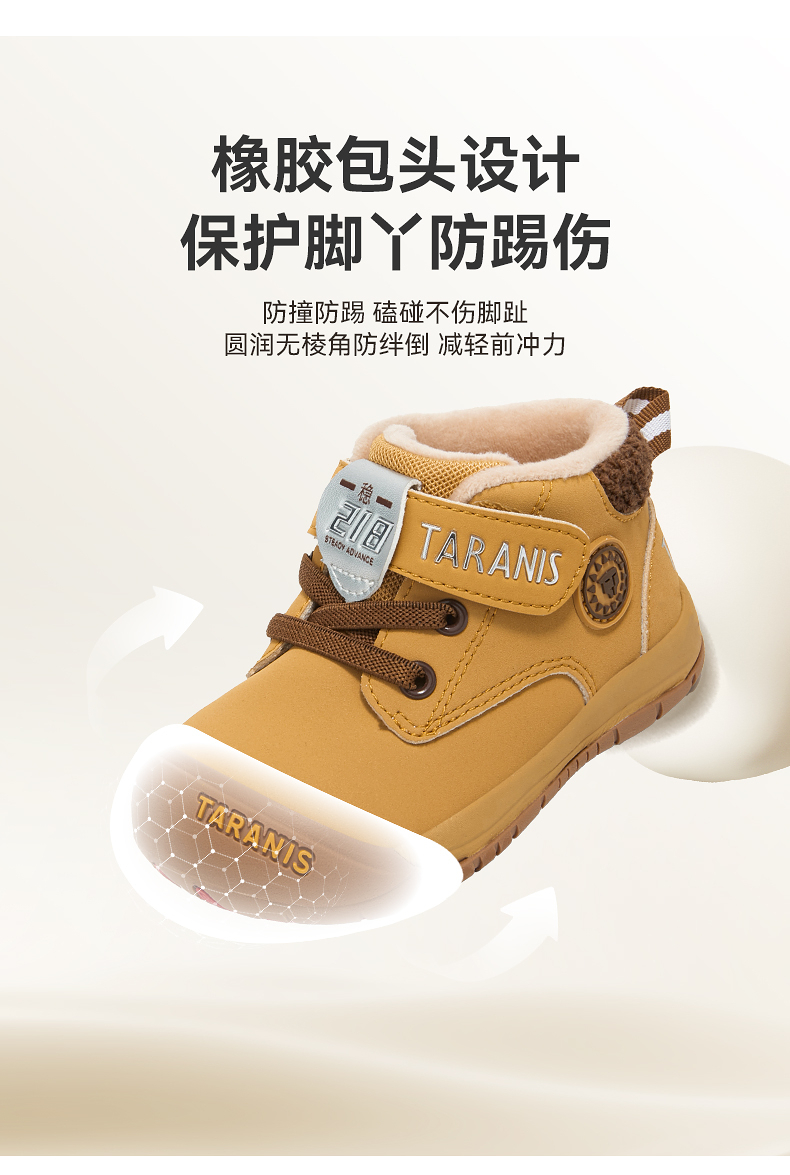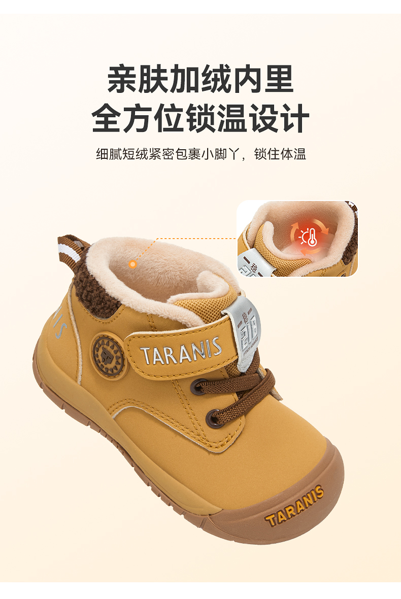 泰兰尼斯218学步鞋冬季新款男童保暖加绒短靴女童轻便软底机能鞋T01T5D6429