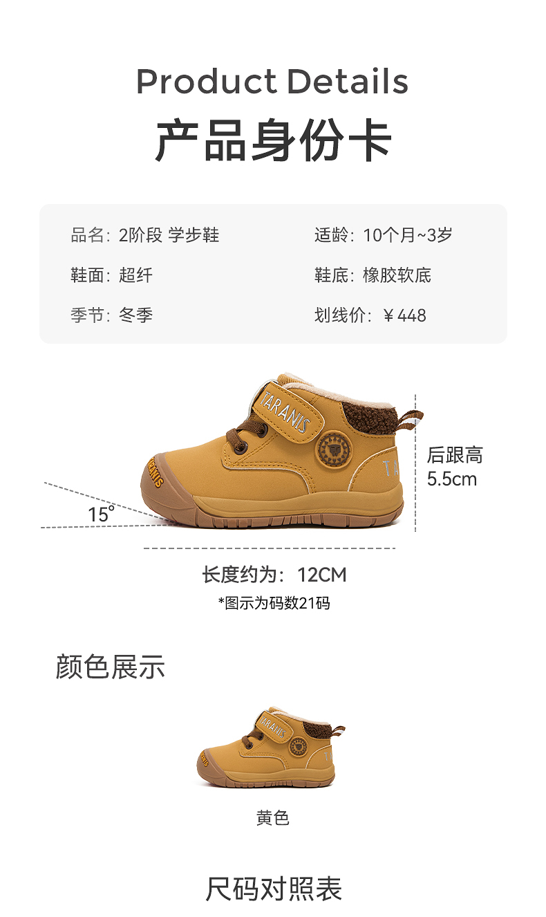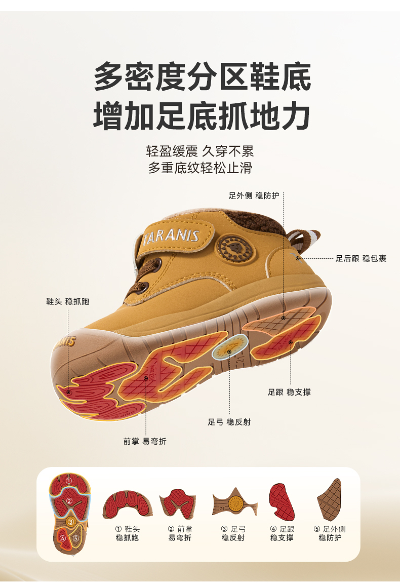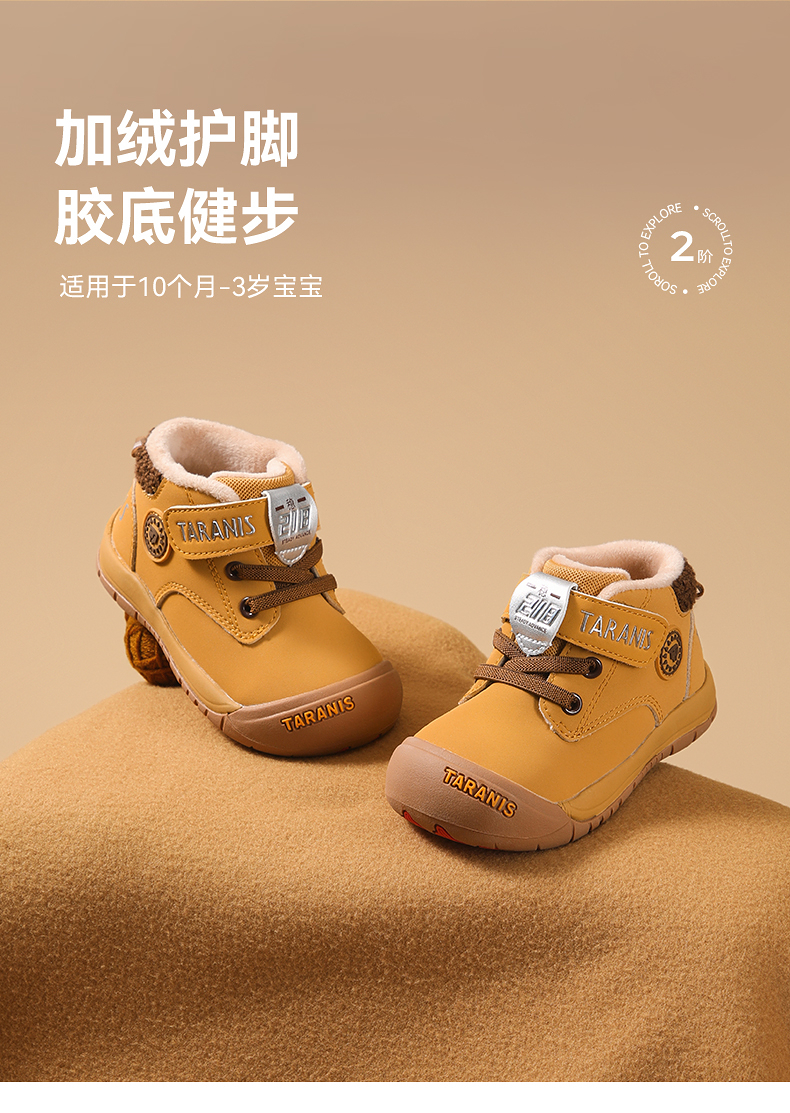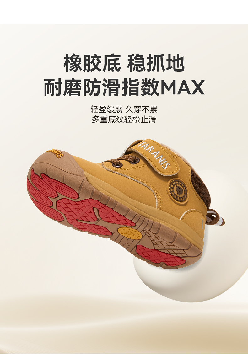 泰兰尼斯218学步鞋冬季新款男童保暖加绒短靴女童轻便软底机能鞋T01T5D6429