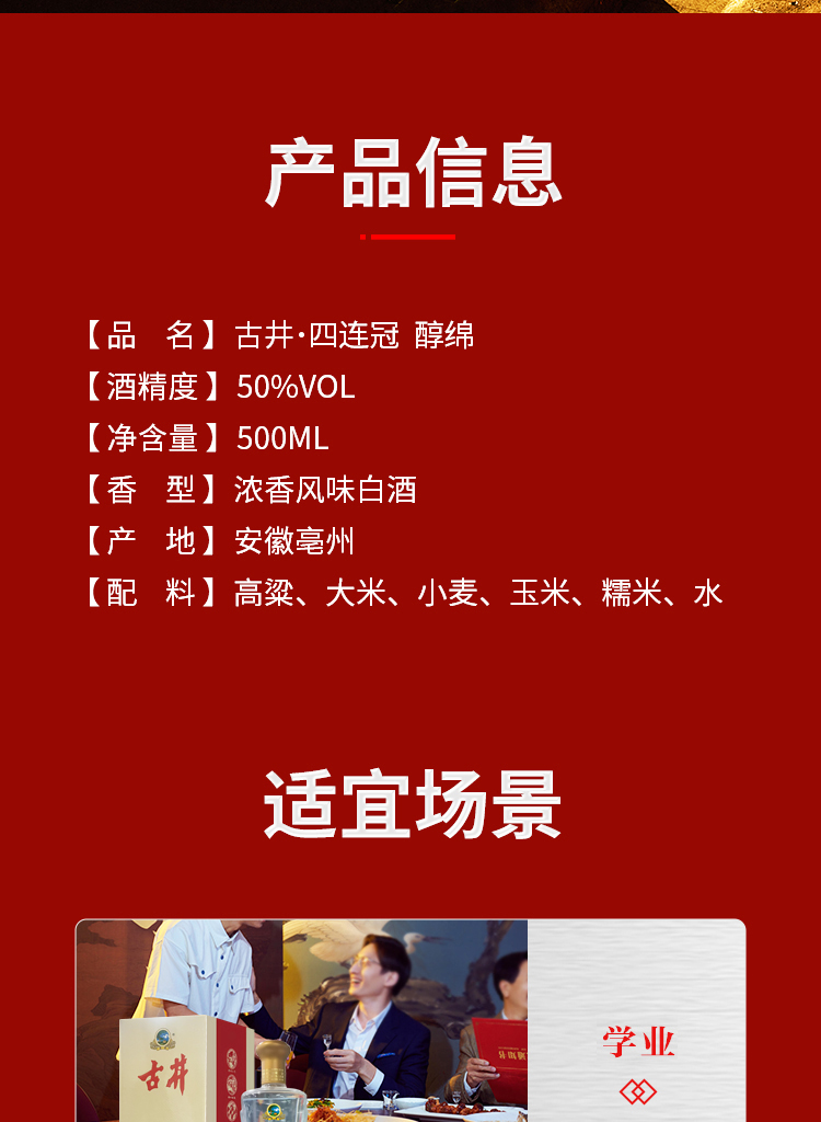 心选丨古井四连冠 醇绵 500ML*6瓶 50度浓香型白酒