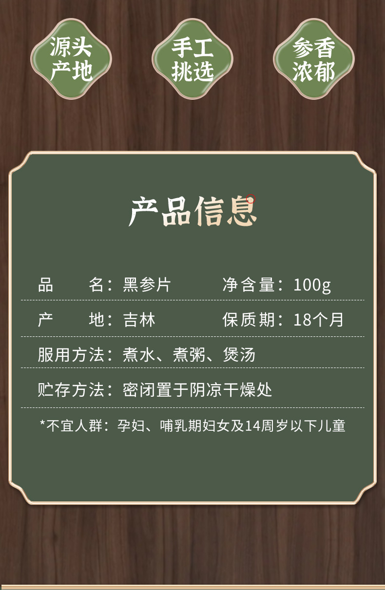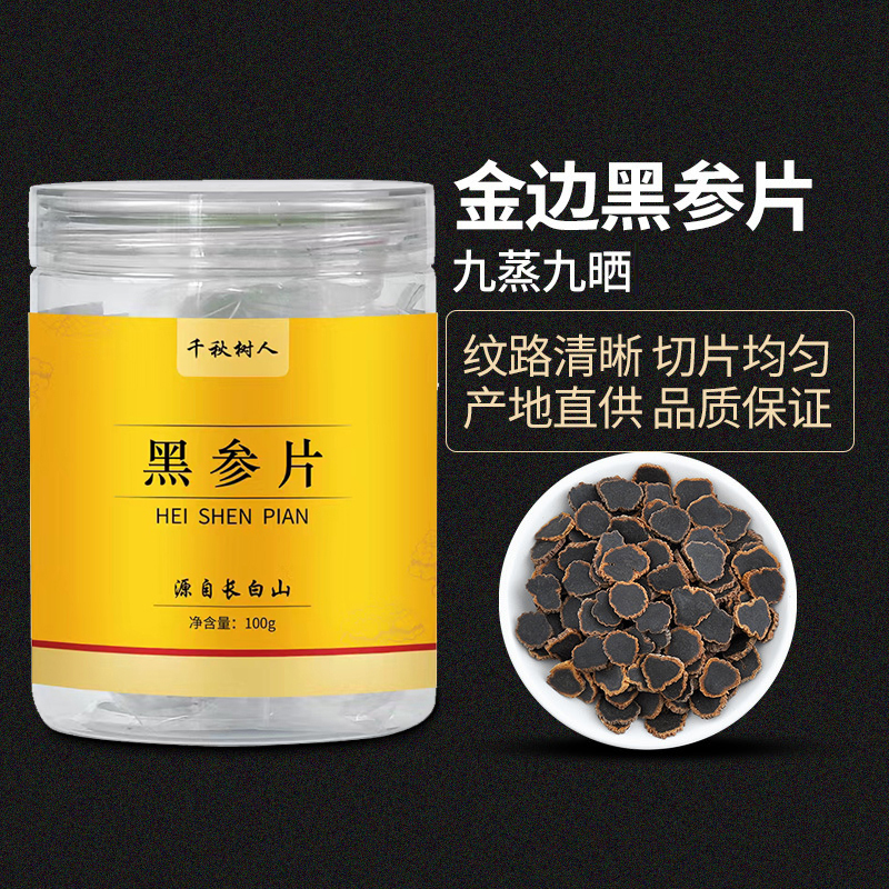 【地道参 九蒸九晒】长白山金边黑参片 100g/罐 黑参片泡水喝东北特产