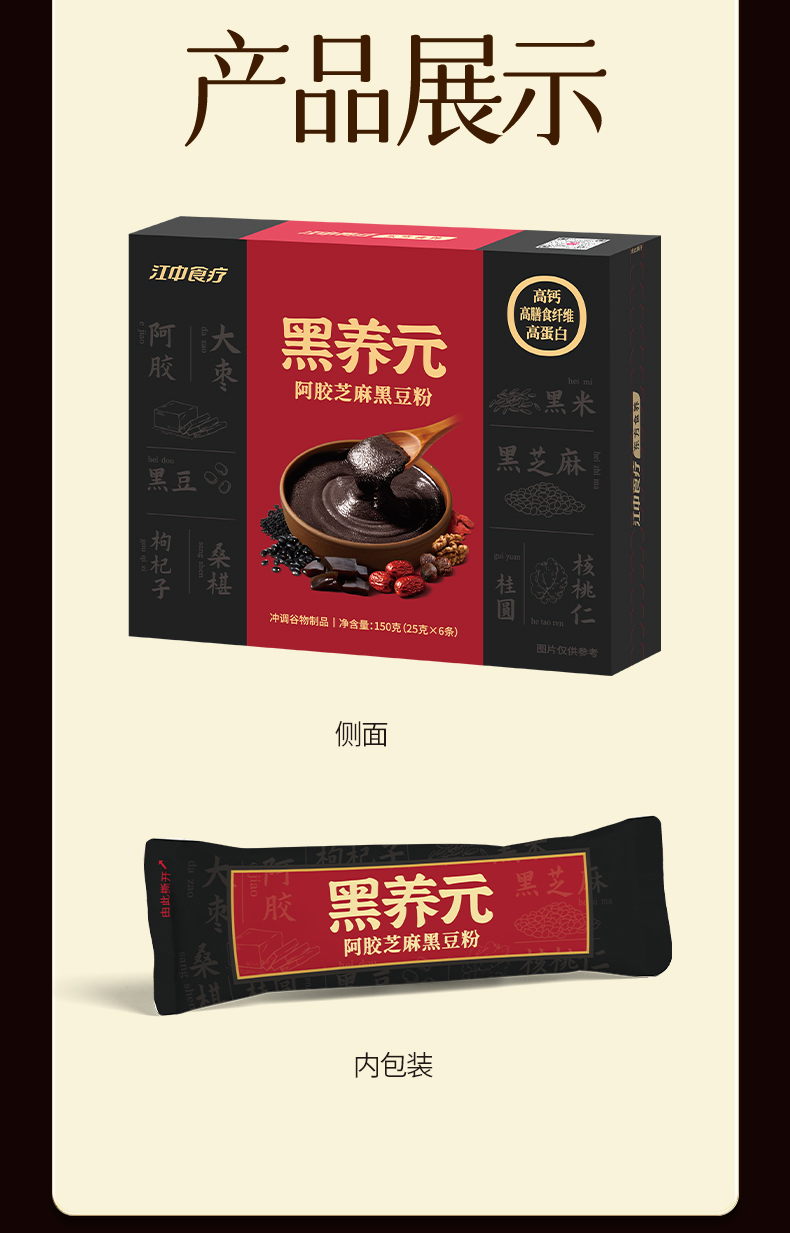 【预售】2盒*江中食疗黑养元150g/盒 黑芝麻糊代餐 核桃阿胶黑豆桂圆红豆早餐 五黑粉 25克/条*6条/盒 2026年1月生产/保质期12个月