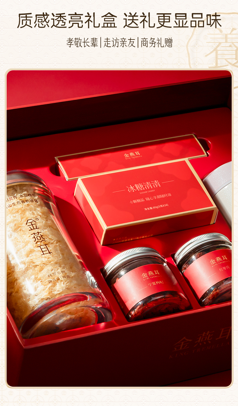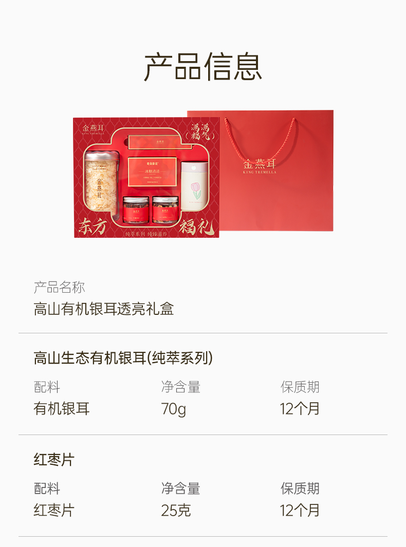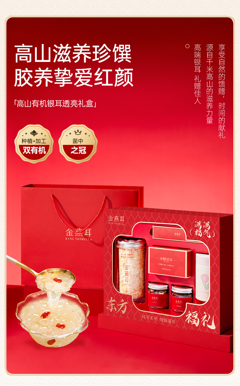 【红色透亮礼盒】金燕耳高山生态有机银耳70g 红色透亮礼盒 20分钟焖煮即食 银耳干品送礼