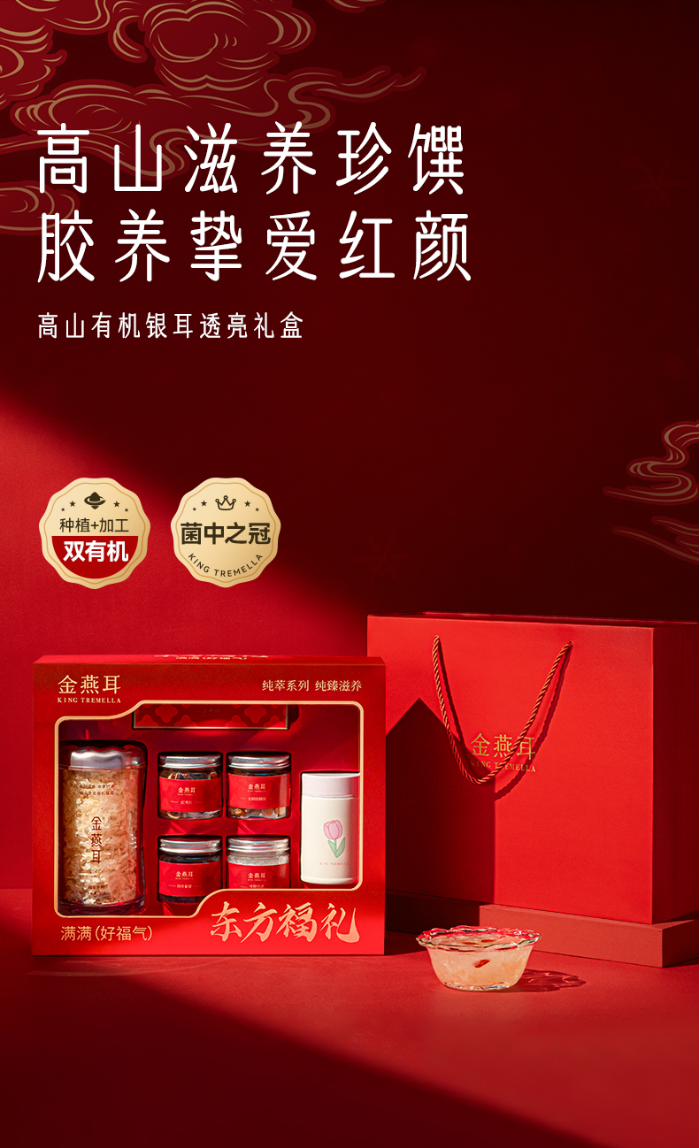 - 金燕耳 多胶金品银耳,滋养东方女性 开创高山生态有机银耳品类 连续两年银耳类目销量Top1 好银耳,天生金贵 引领银耳品质 让更多人吃到中国好银耳 成为高品质中国银耳标杆品牌