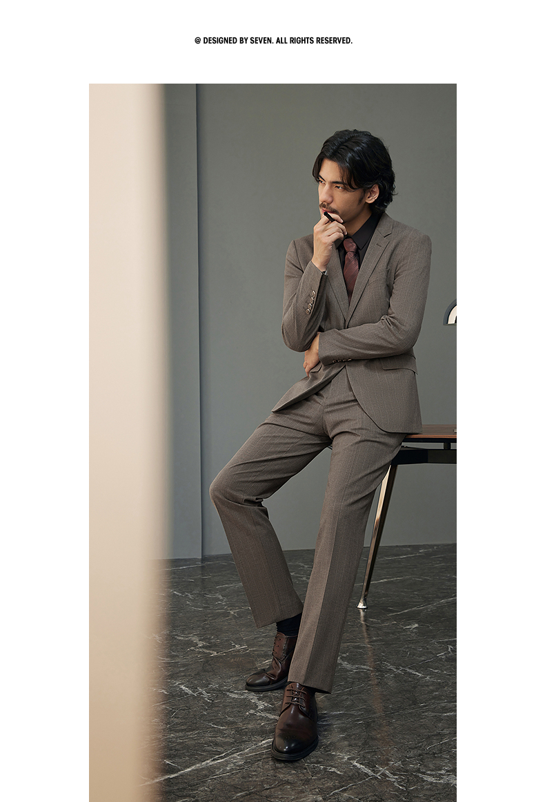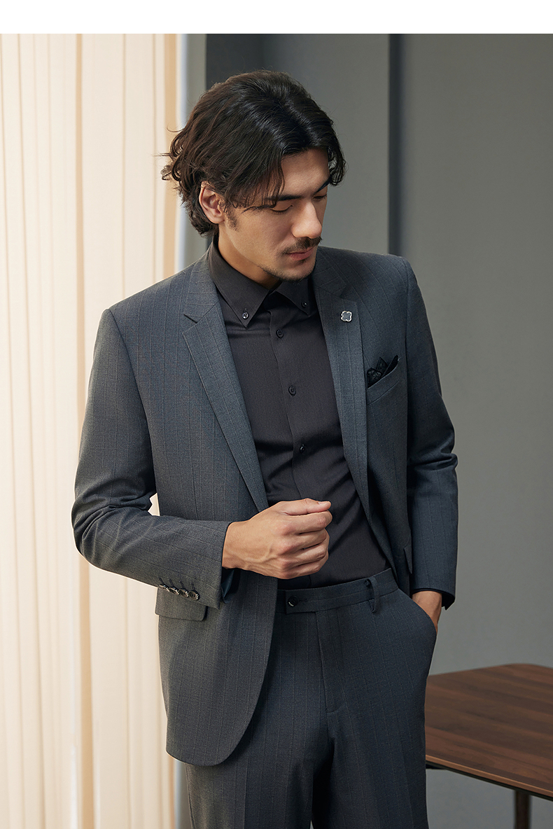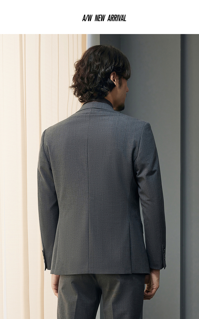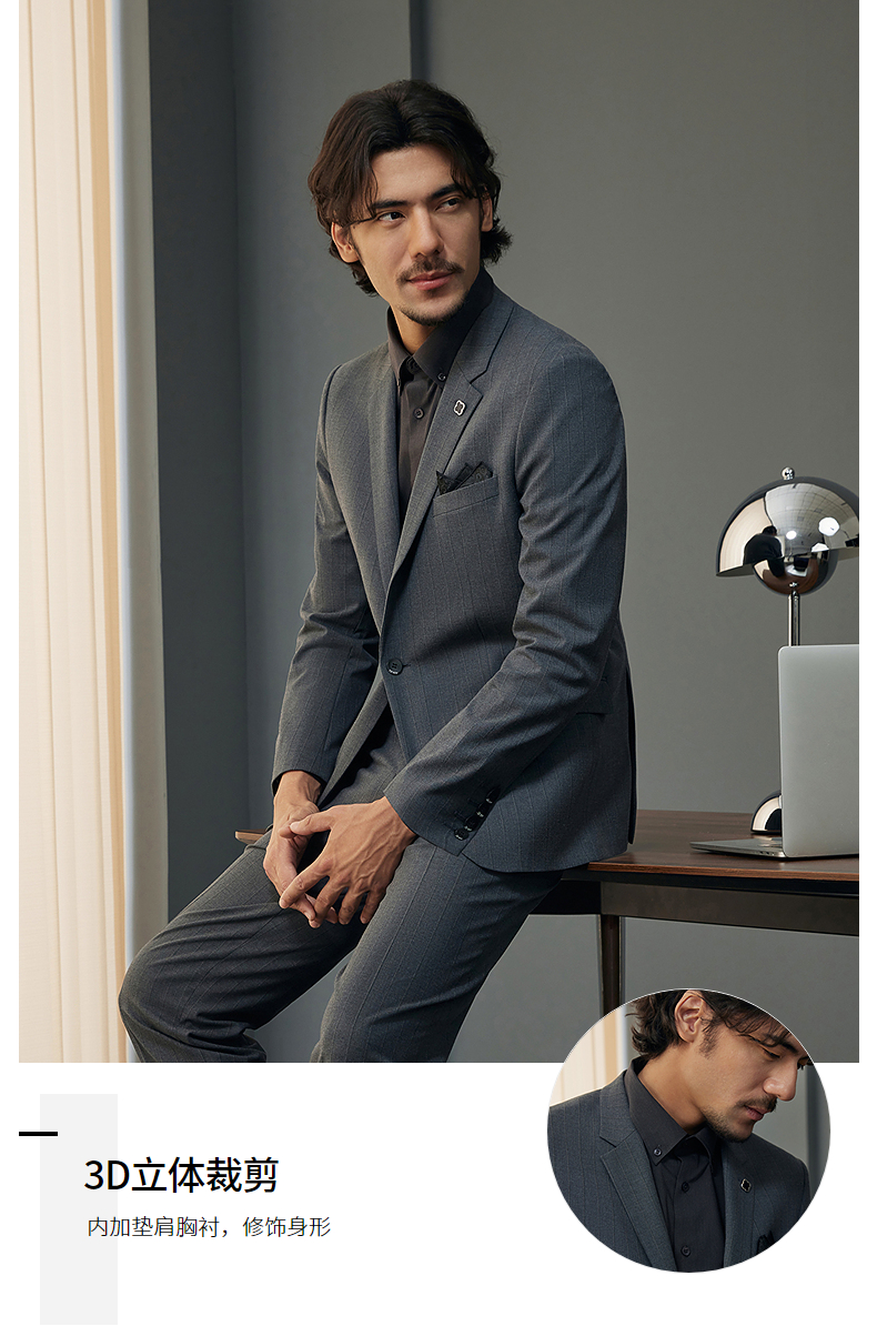 【婚礼季/含羊毛】柒牌西装男士套装2025秋季新款商务休闲竖条纹西服外套 127C70070