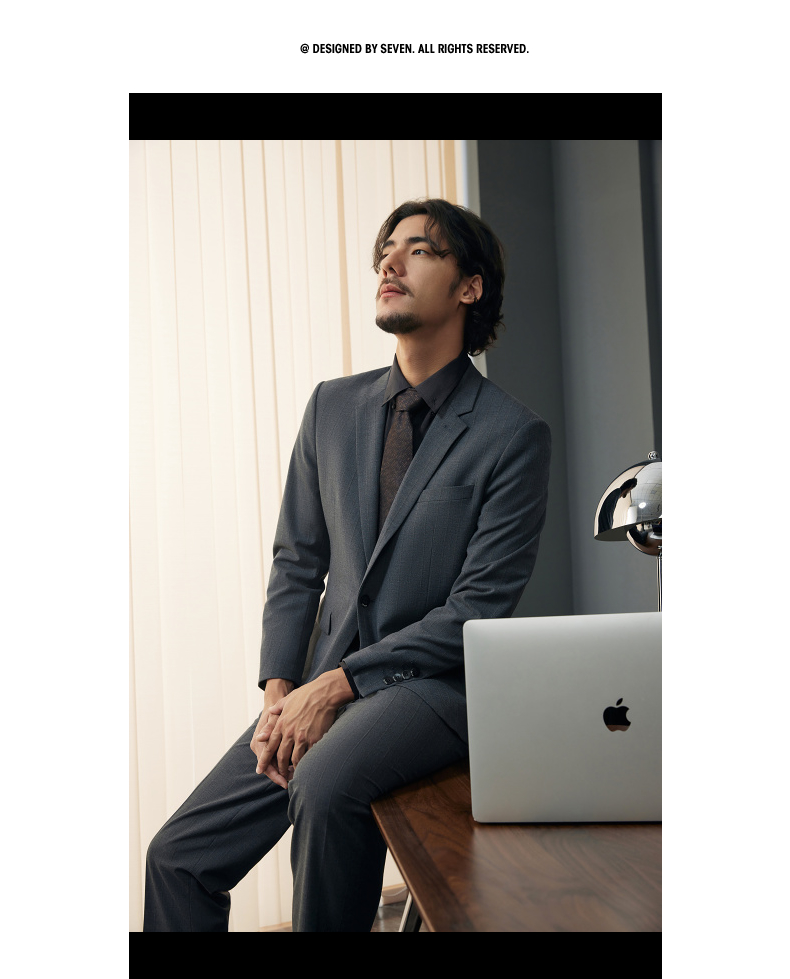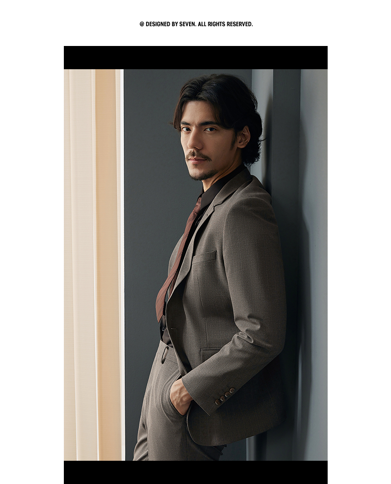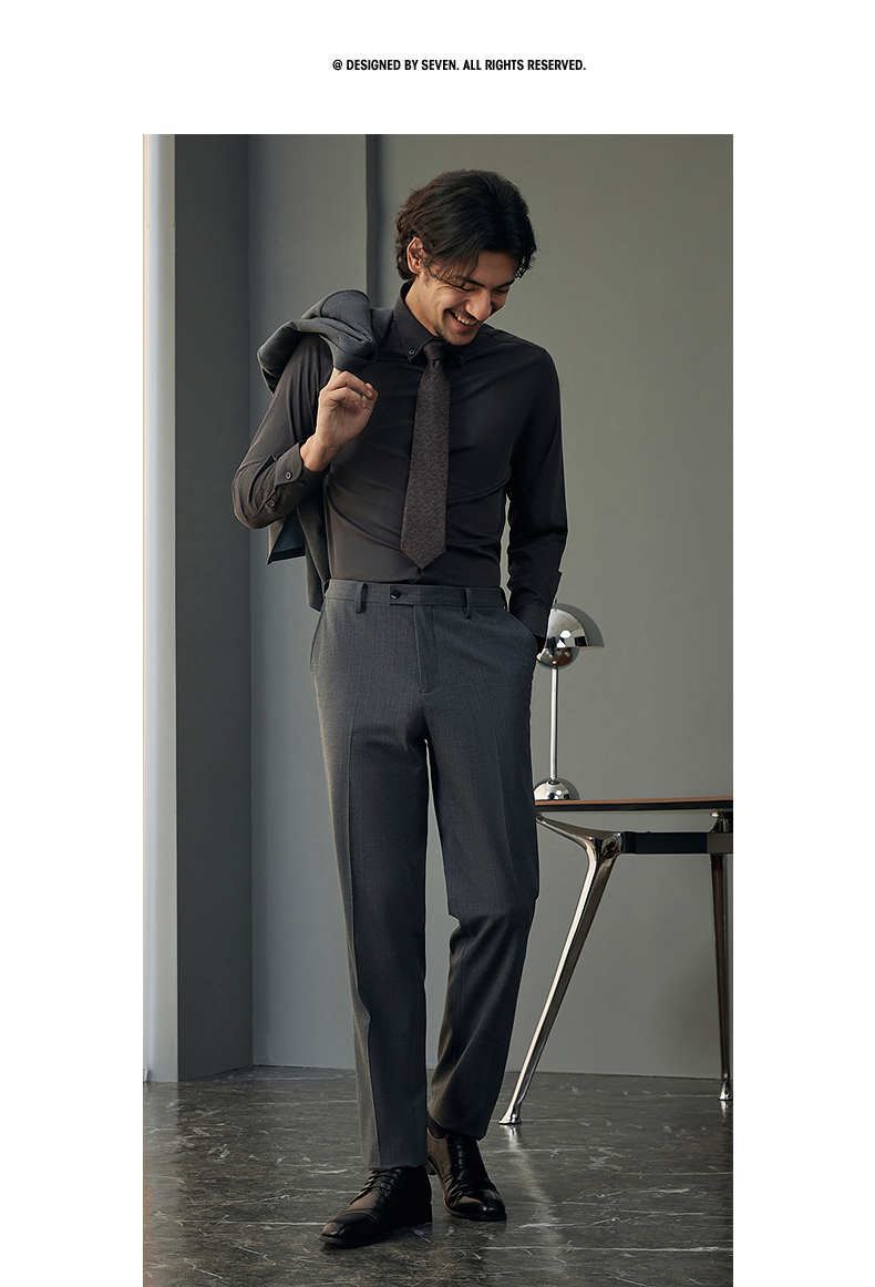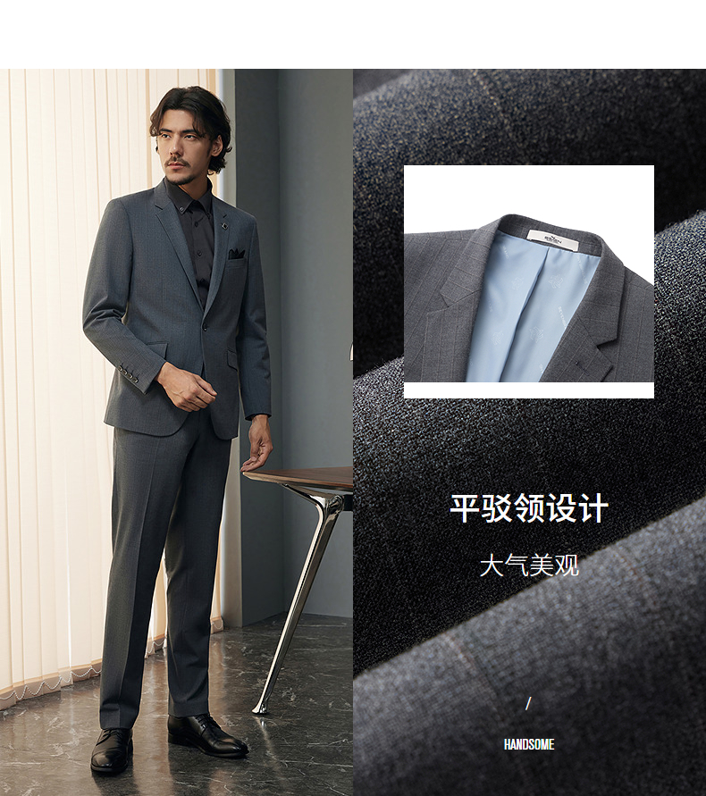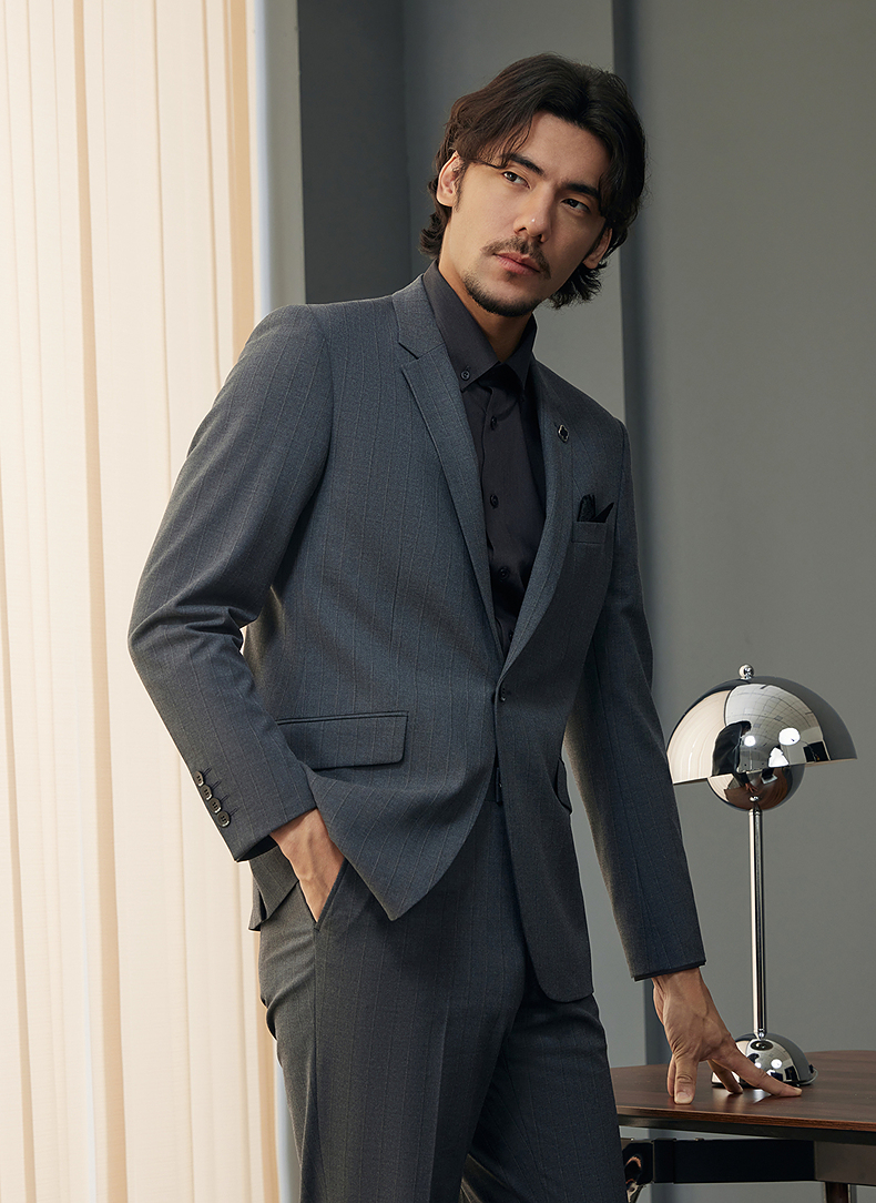 【婚礼季/含羊毛】柒牌西装男士套装2025秋季新款商务休闲竖条纹西服外套 127C70070