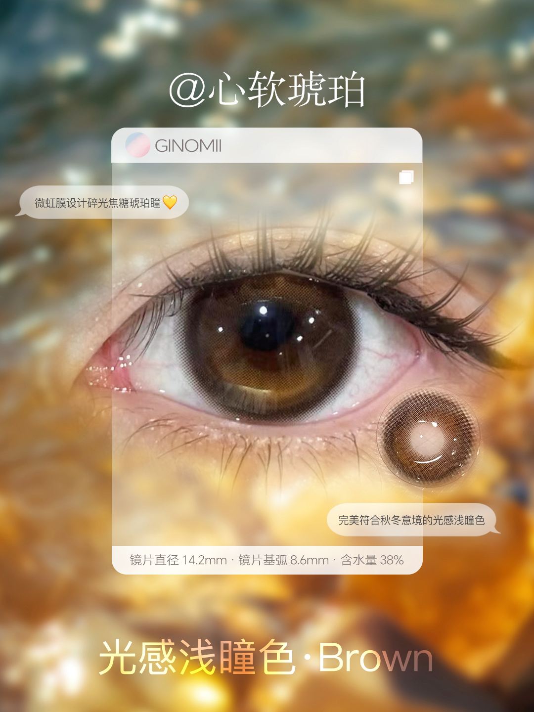 GINOMII 半年抛 心软琥珀/桃汽蓝调 ( 咖棕蓝直径14.2mm,最高800度)