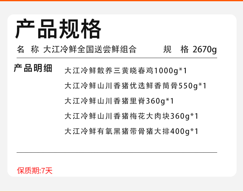 【发出后不支持拦截退货】大江 冷鲜全国送尝鲜组合 2670g