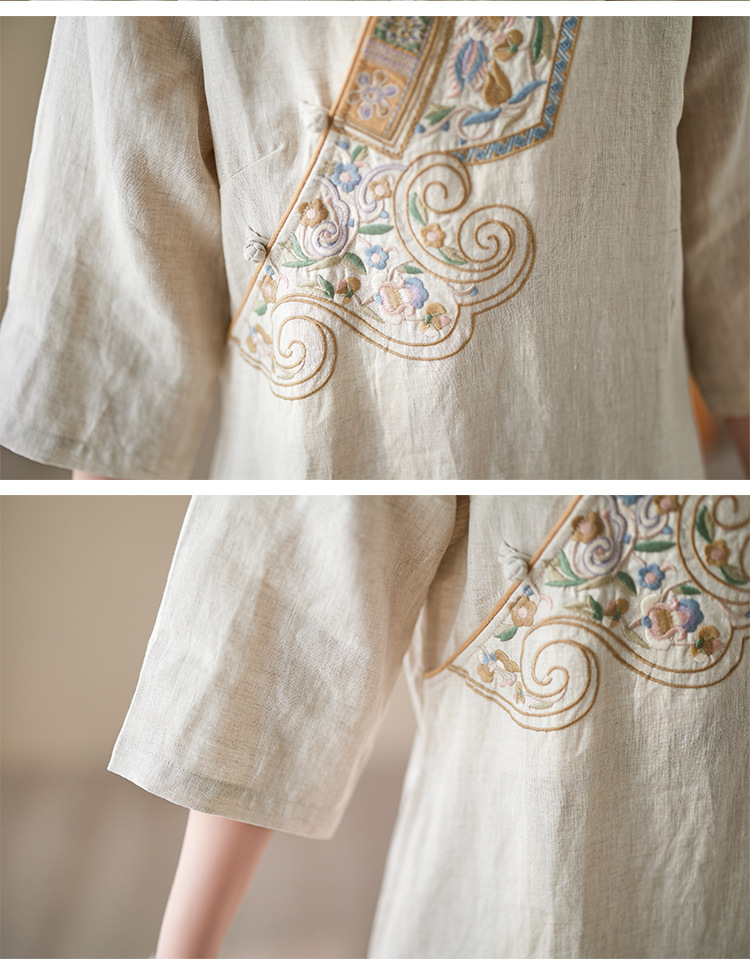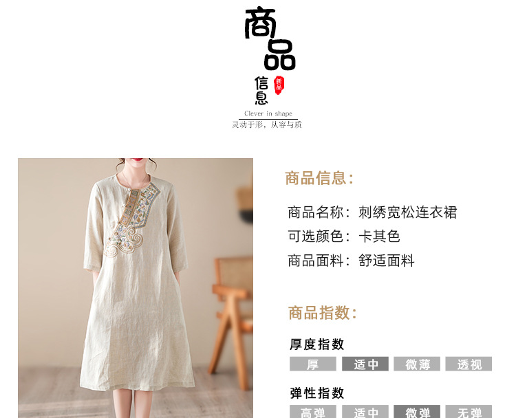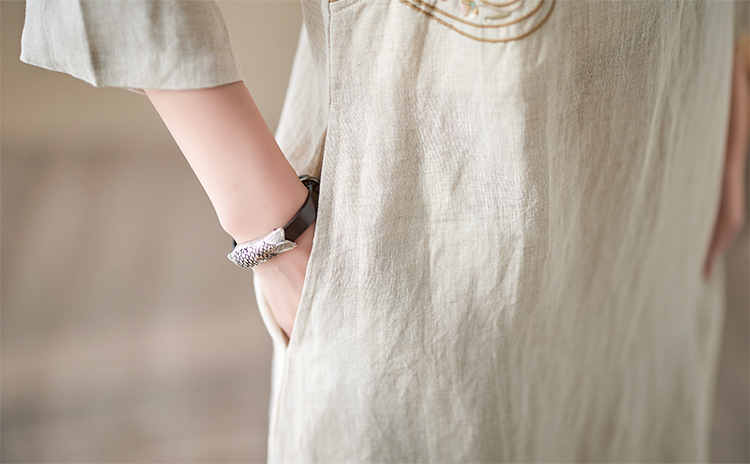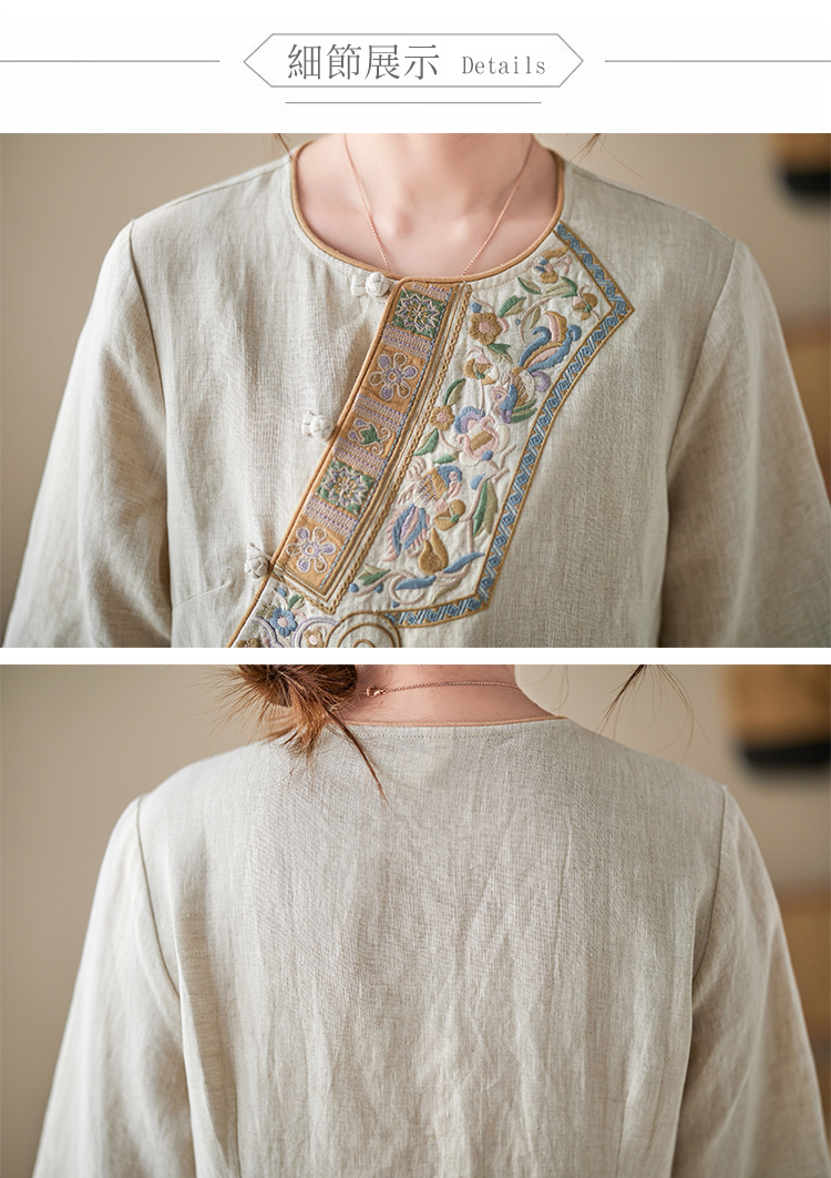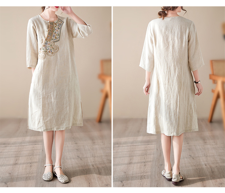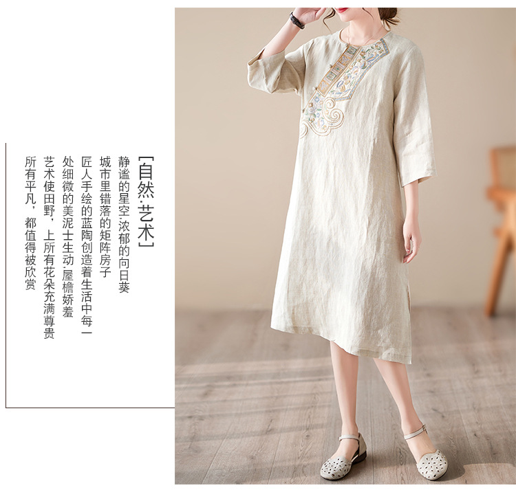 中国风棉麻连衣裙复古盘扣刺绣花中式茶服中长裙SJ-9261