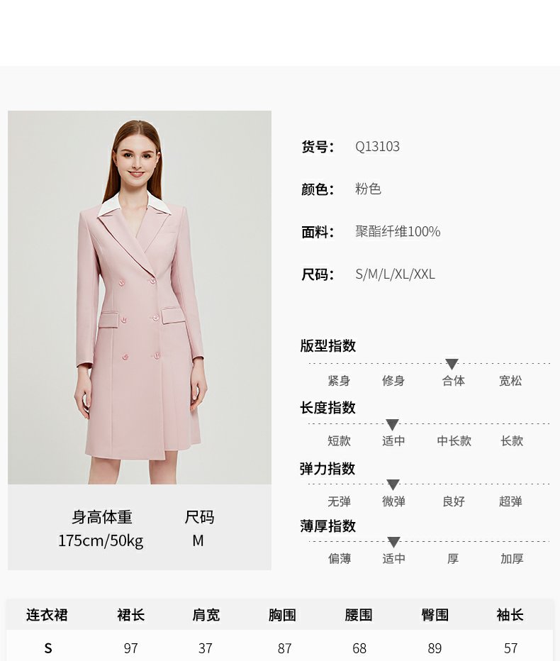 IWY/春夏季粉色职业连衣裙女医美前台美容师教师工作服女正装Q13103粉色