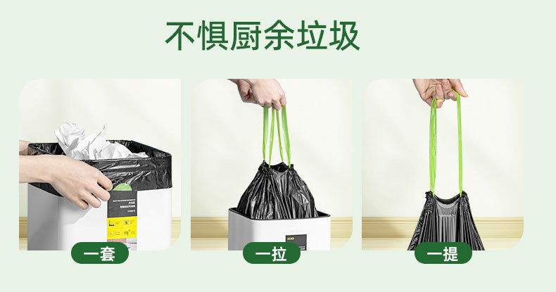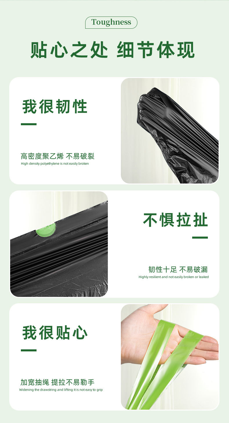 【不易破❗️免手撕】抽绳垃圾袋加厚不脏手自动收口手提式塑料袋家用厨房加厚结实。ja