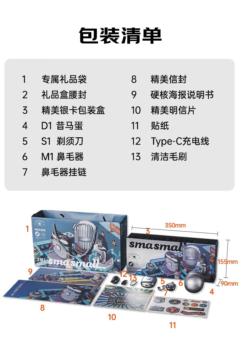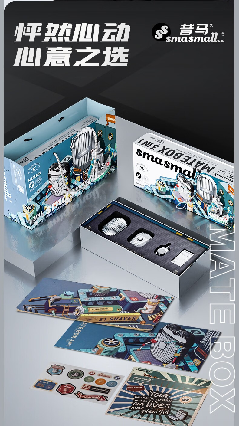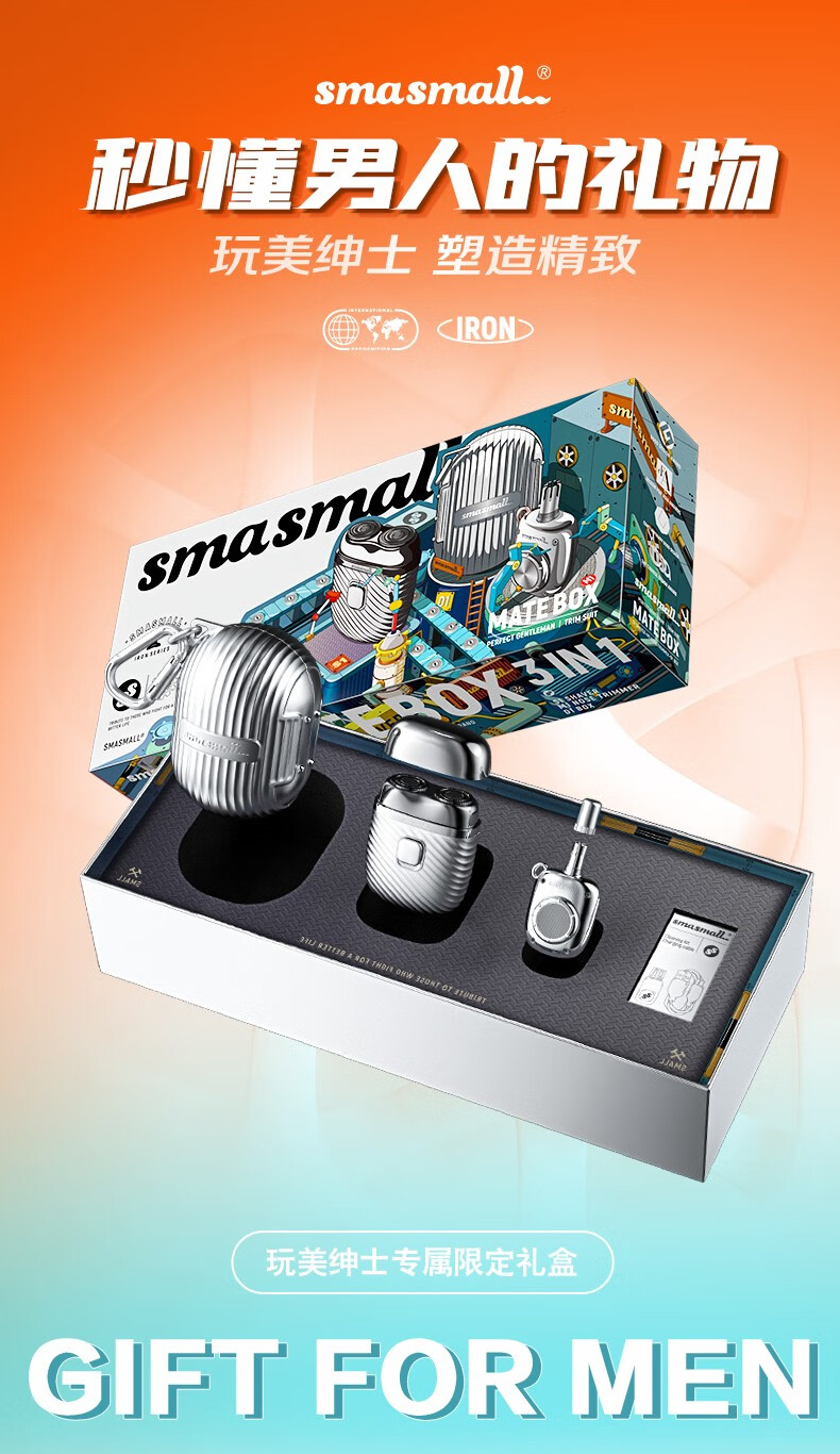 昔马(SMASMALL)剃须刀电动迷你便携款男士刮胡刀鼻毛修剪器二合一礼盒款新年情人节送男友男生生日礼物完美绅士 玩美绅士3IN1 礼盒装