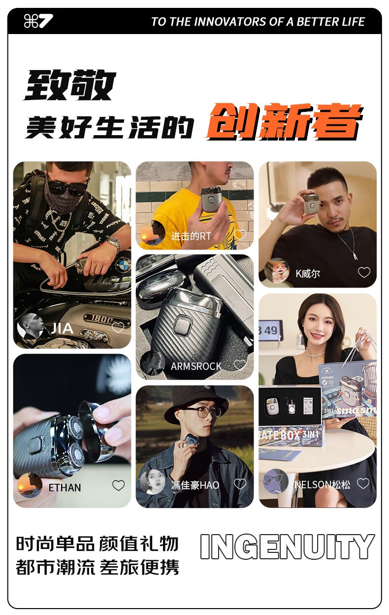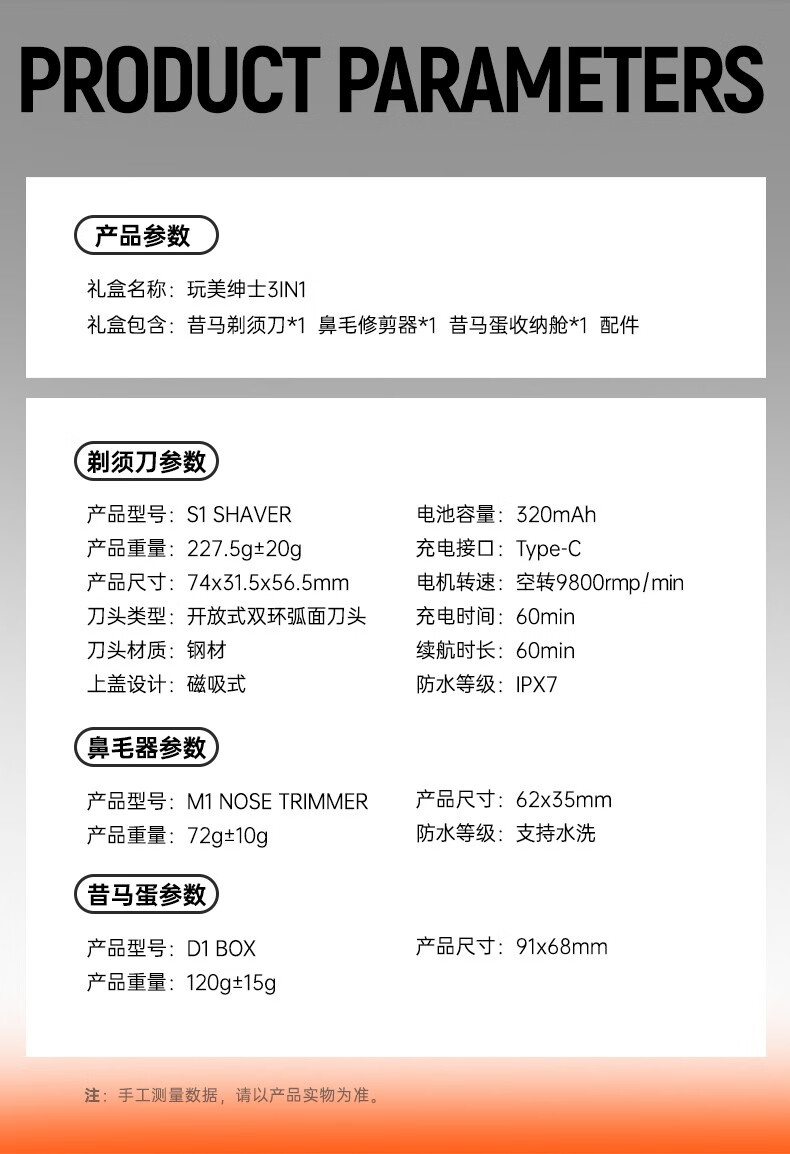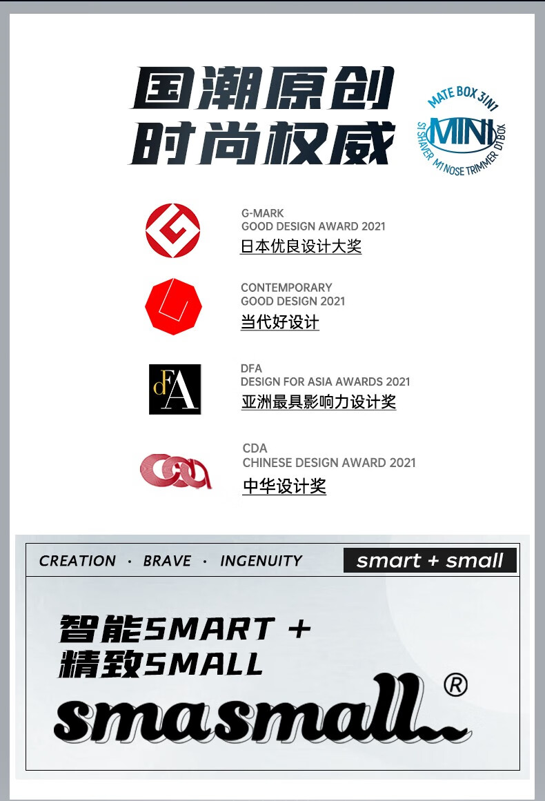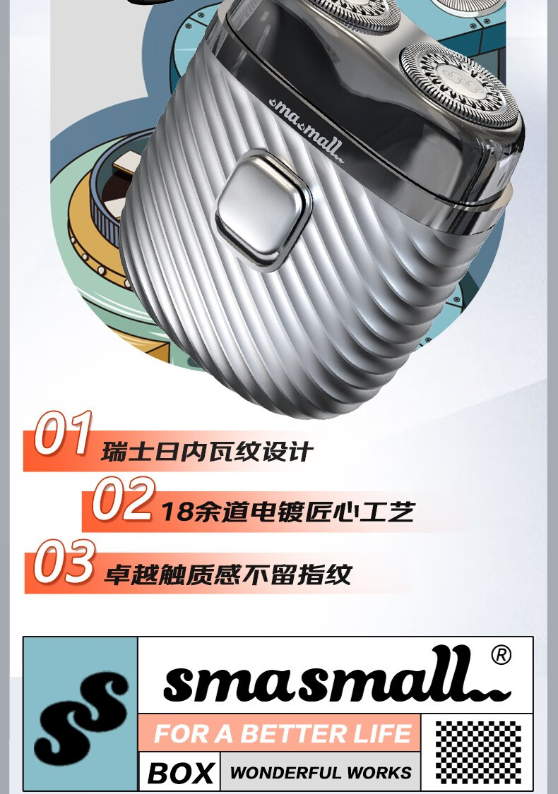 昔马(SMASMALL)剃须刀电动迷你便携款男士刮胡刀鼻毛修剪器二合一礼盒款新年情人节送男友男生生日礼物完美绅士 玩美绅士3IN1 礼盒装