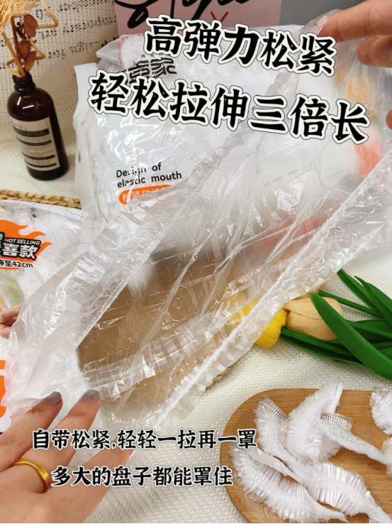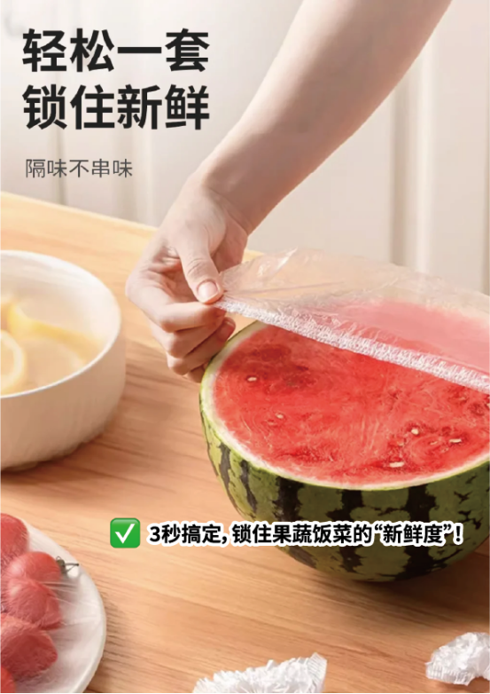 ✅食品级PE材质,松紧口设计,有弹性皮圈 ✅韧性好不易破,摒弃传统保鲜模式 ✅开启快捷操作方式,一“套”即可