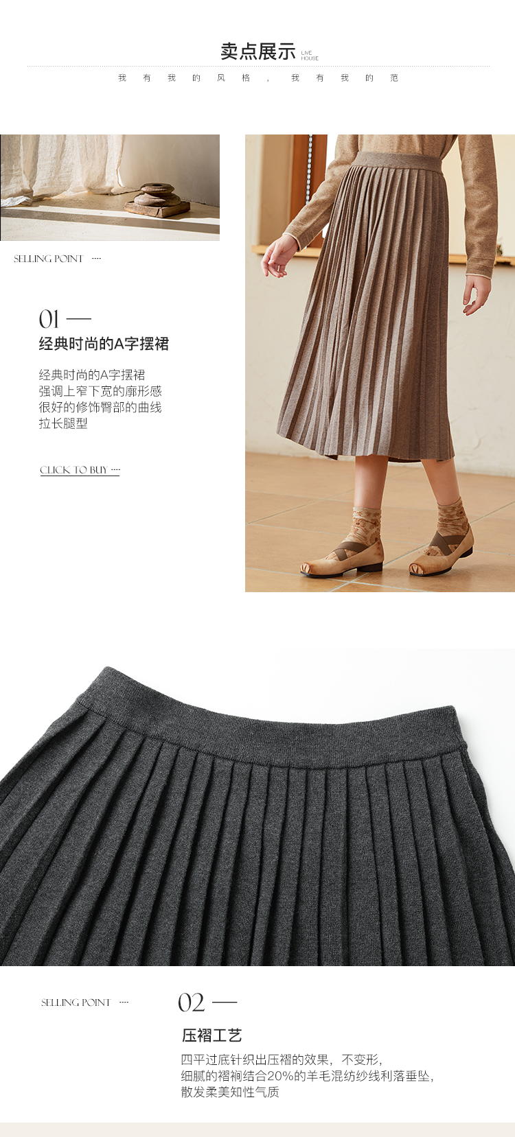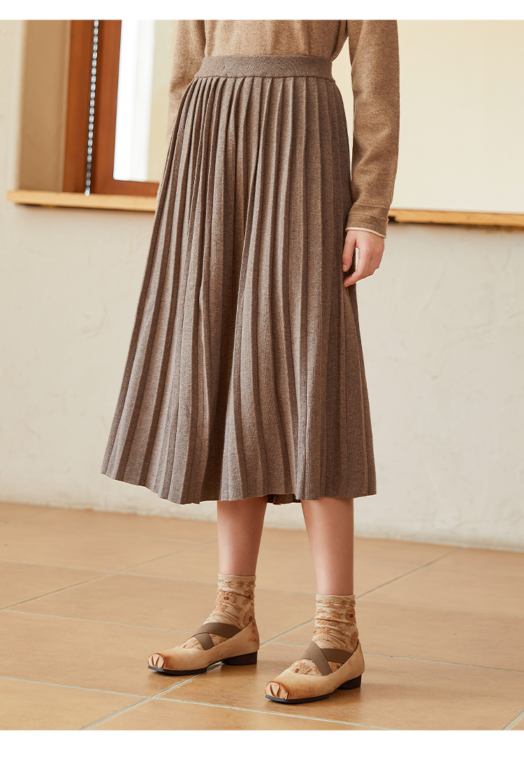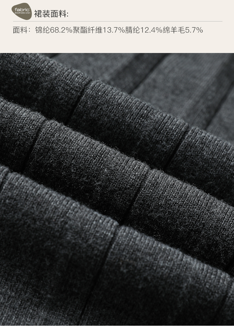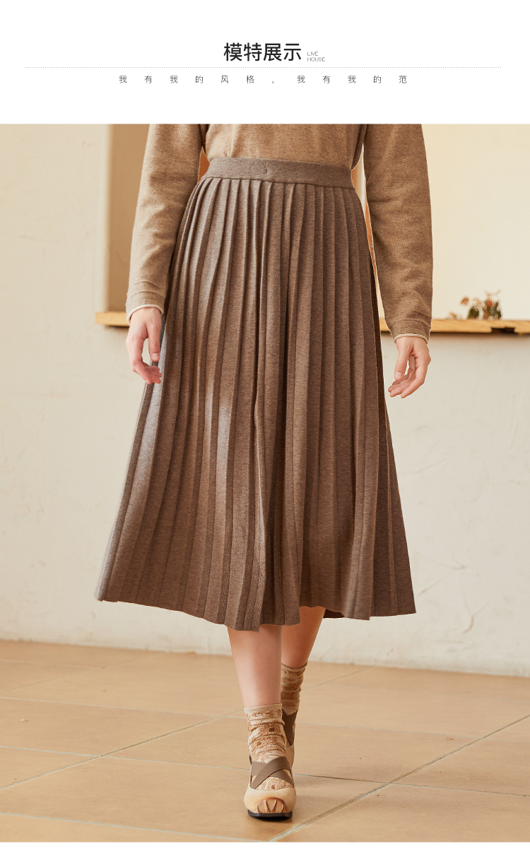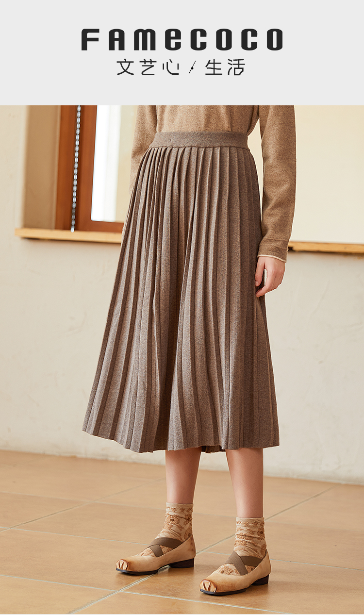 Famecoco范可儿宽松百褶毛织半身裙冬季加厚羊毛A字裙女F228HA018