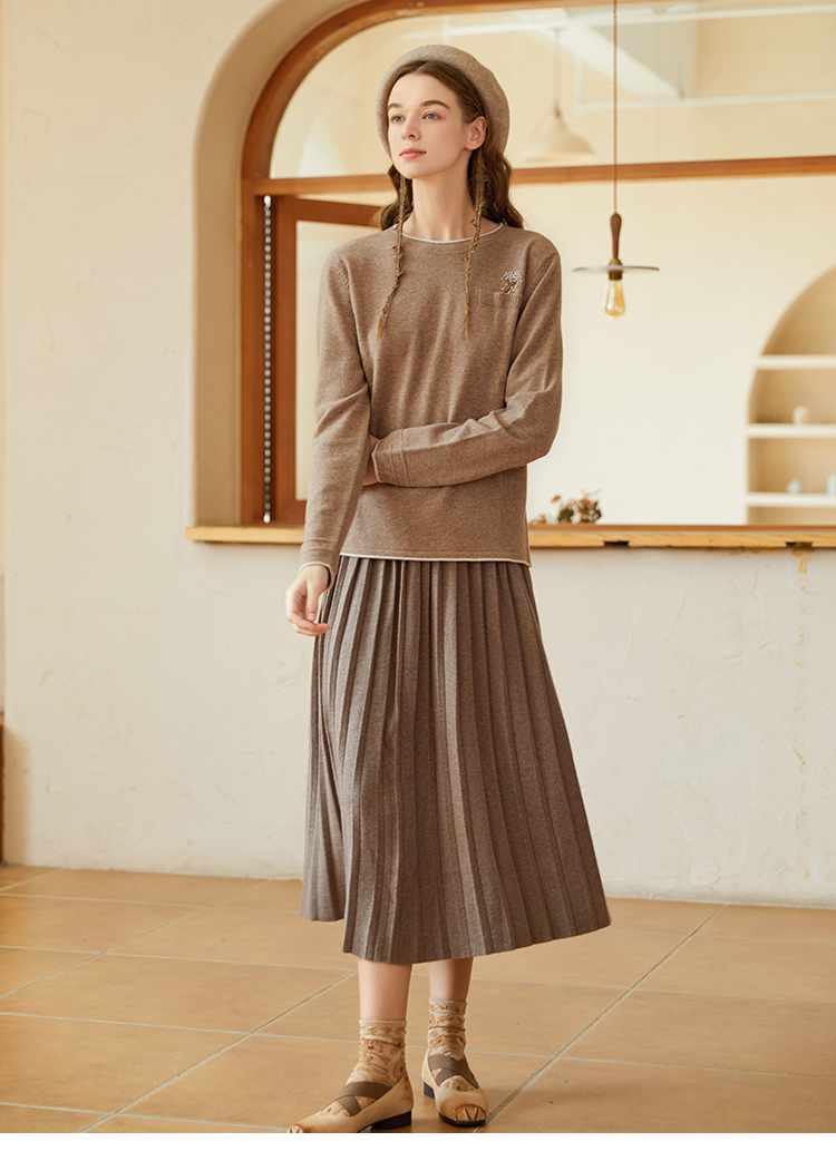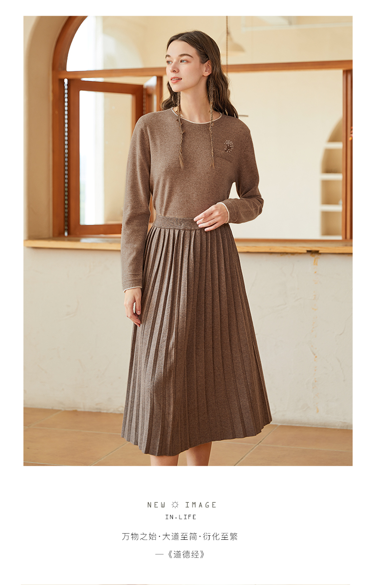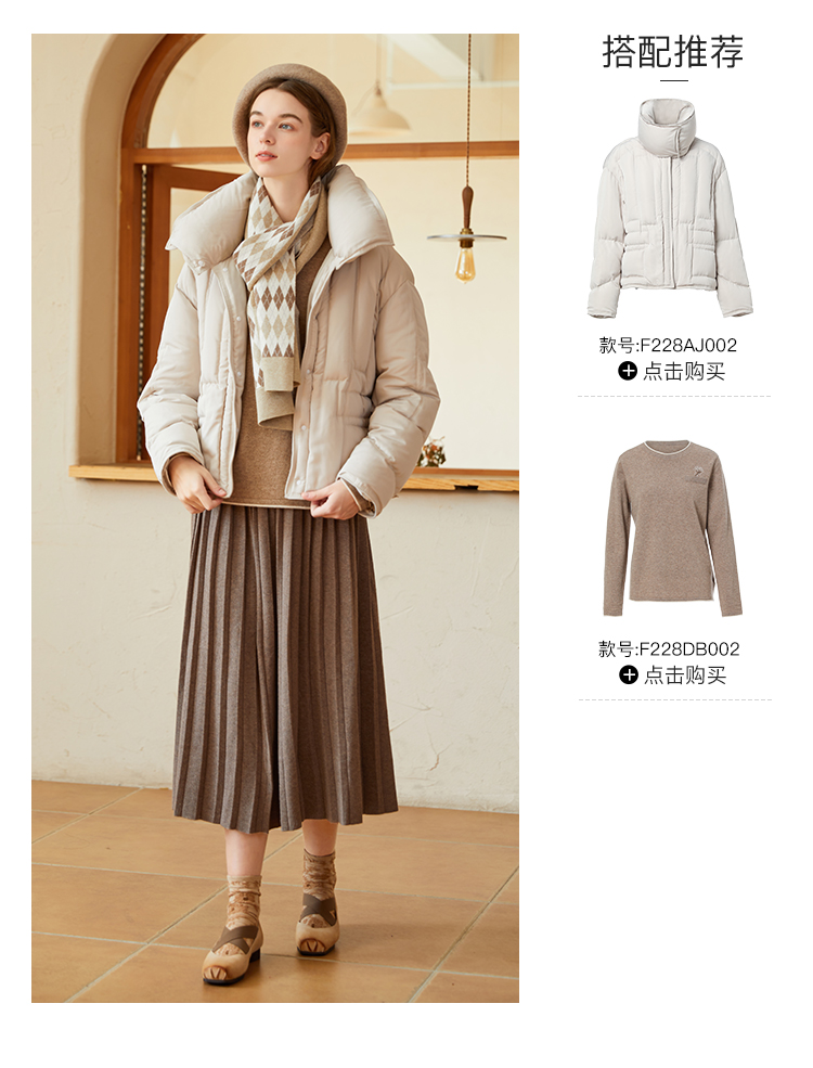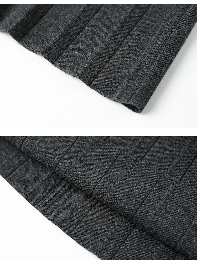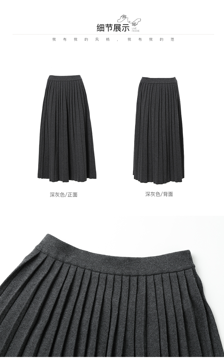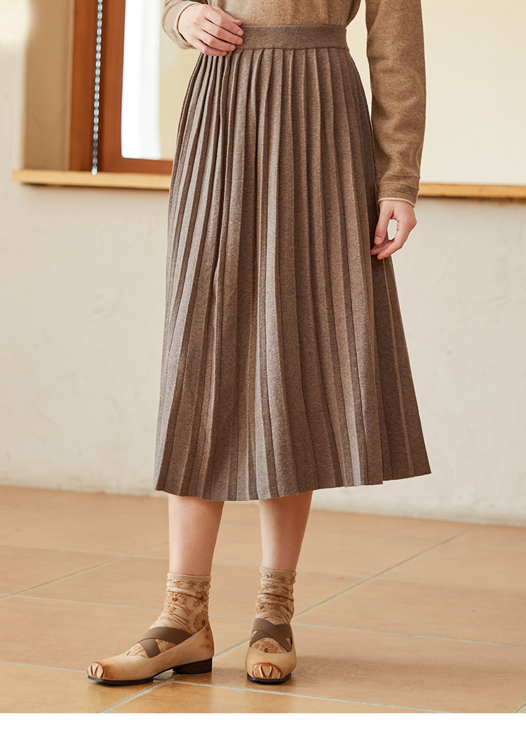Famecoco范可儿宽松百褶毛织半身裙冬季加厚羊毛A字裙女F228HA018