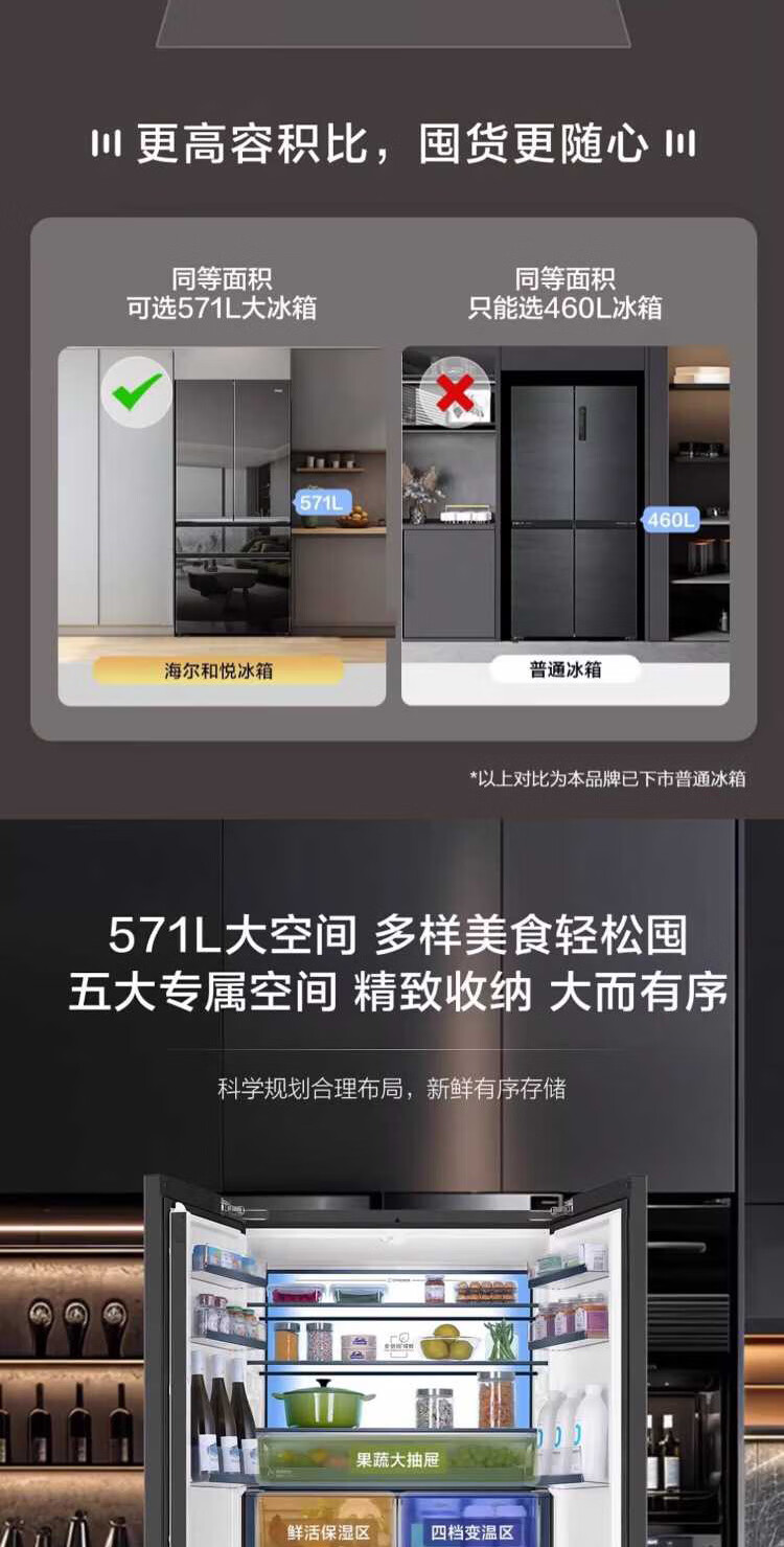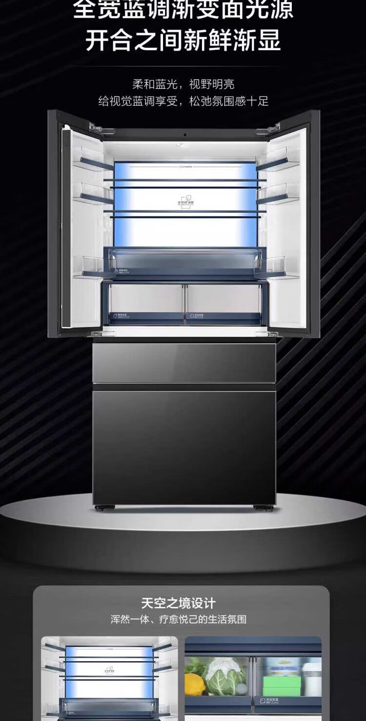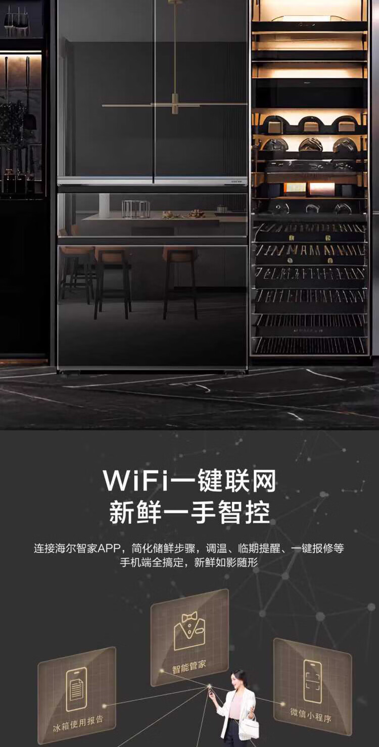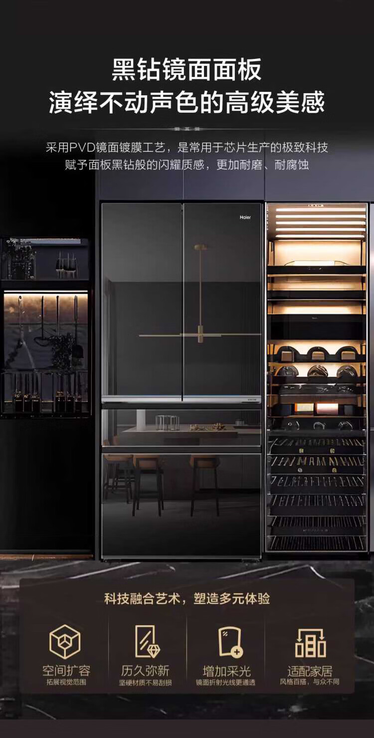 米兰系列-海尔594mm专业超薄零嵌冰箱571升对开门法式多门全空间保鲜epp除菌净味一级变频大容量黑钻镜面超薄零嵌+EPP超净系统+四档变温+全空间保鲜BCD-571WGHFD2BD5U1