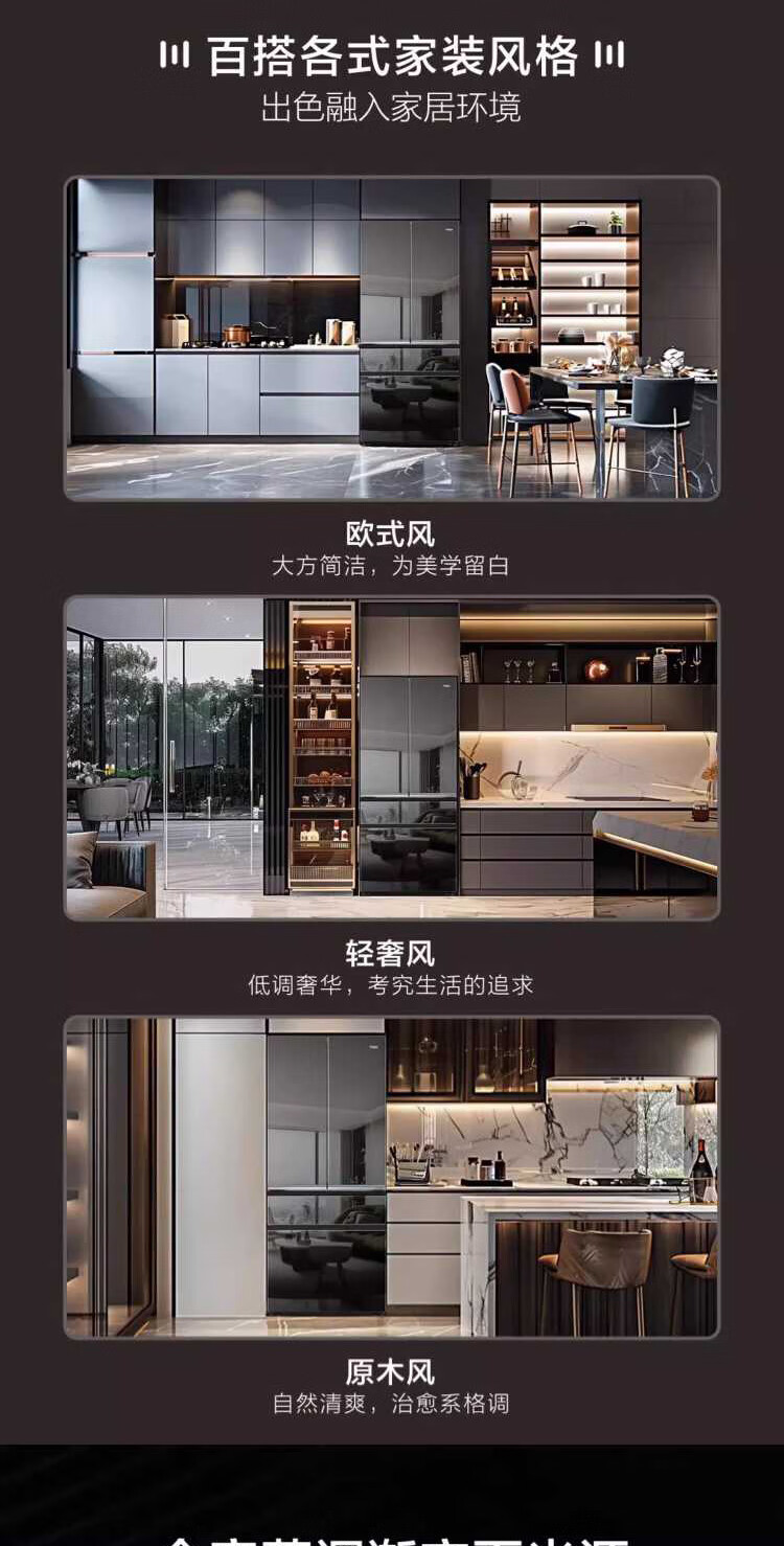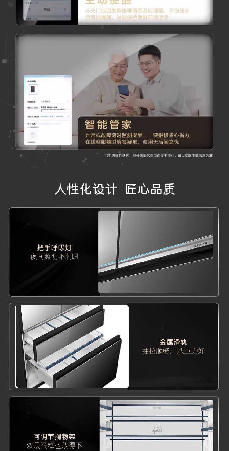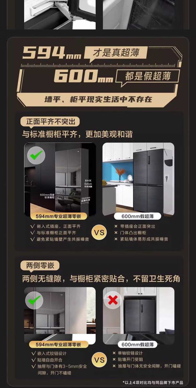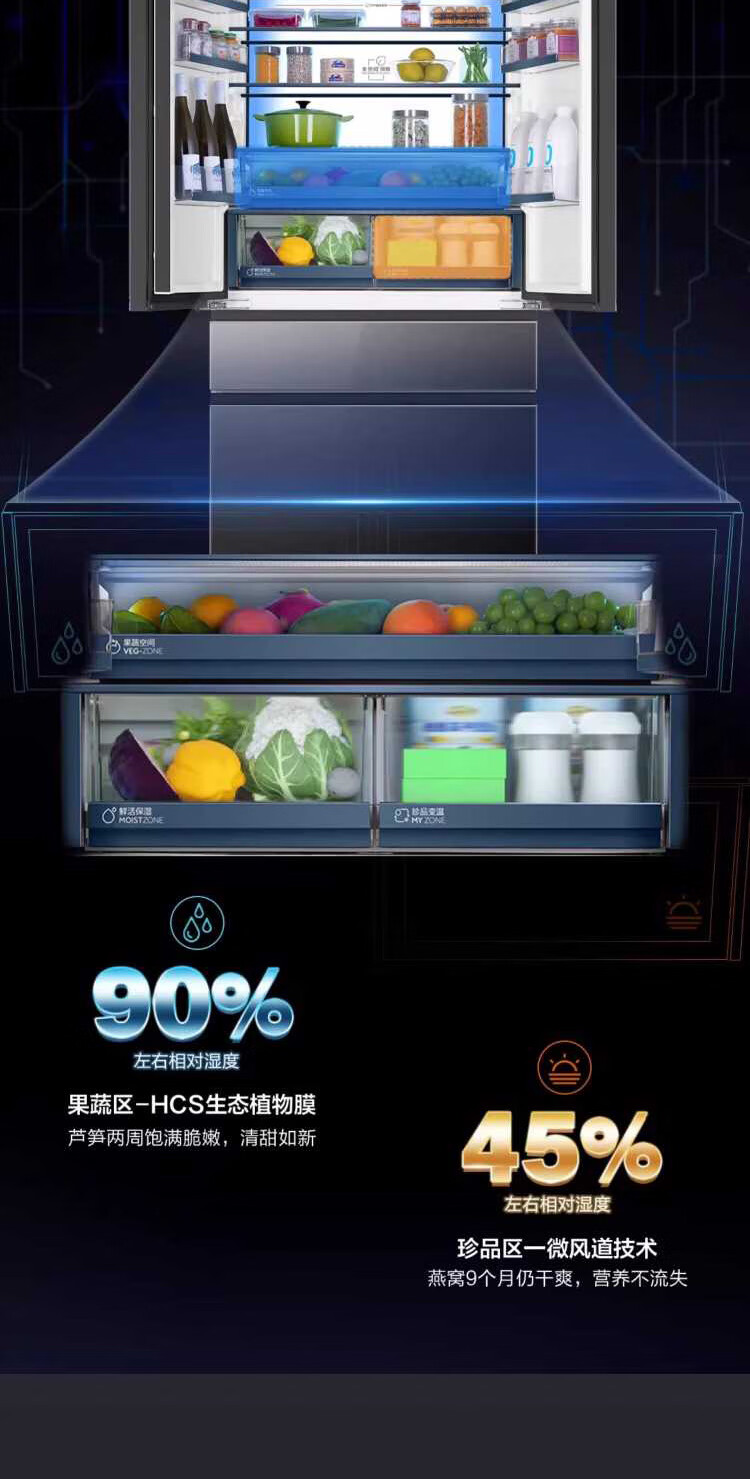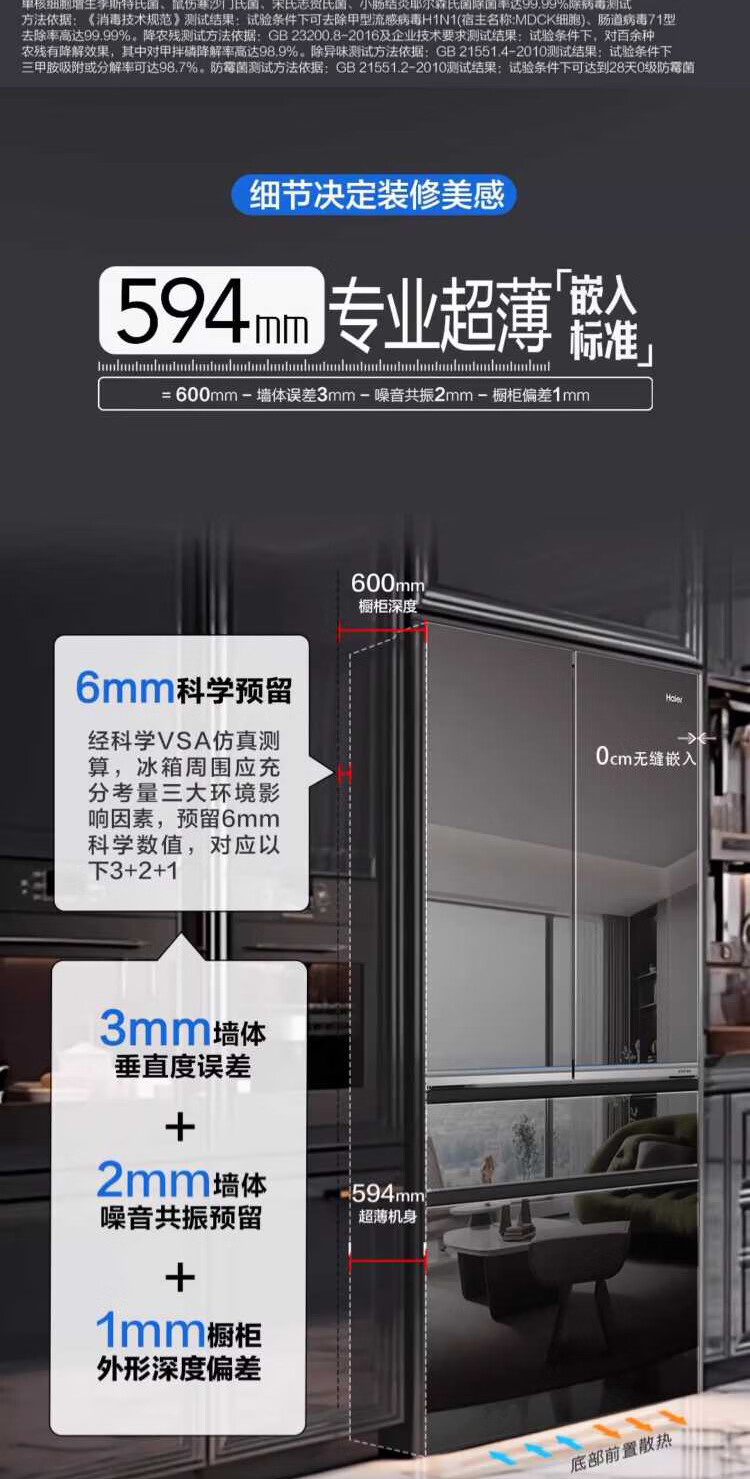 米兰系列-海尔594mm专业超薄零嵌冰箱571升对开门法式多门全空间保鲜epp除菌净味一级变频大容量黑钻镜面超薄零嵌+EPP超净系统+四档变温+全空间保鲜BCD-571WGHFD2BD5U1
