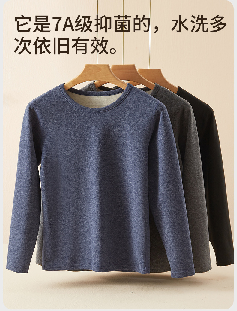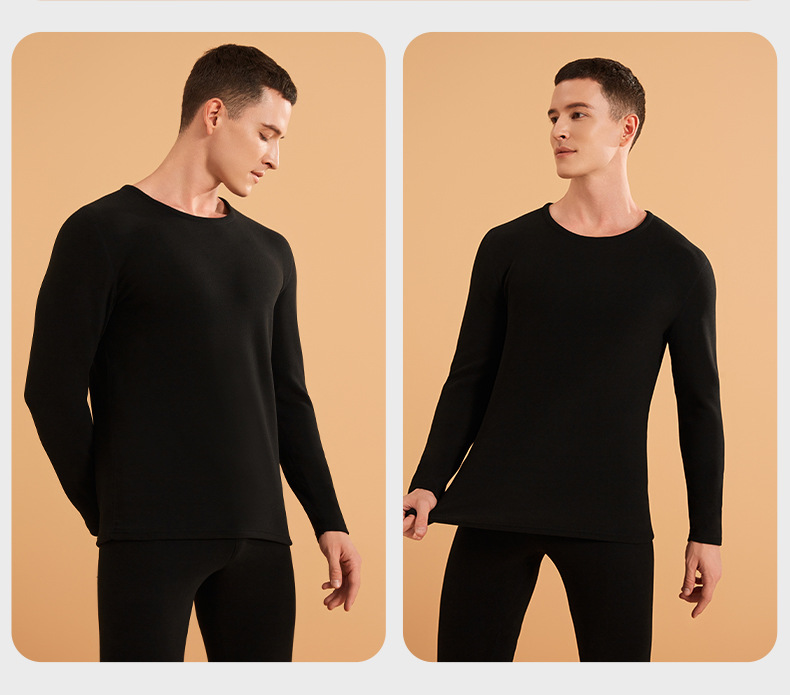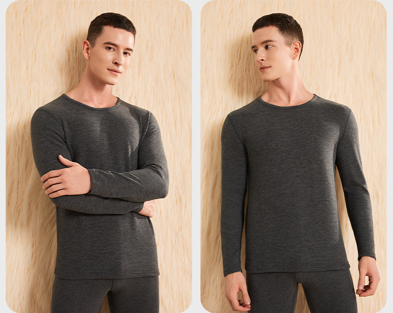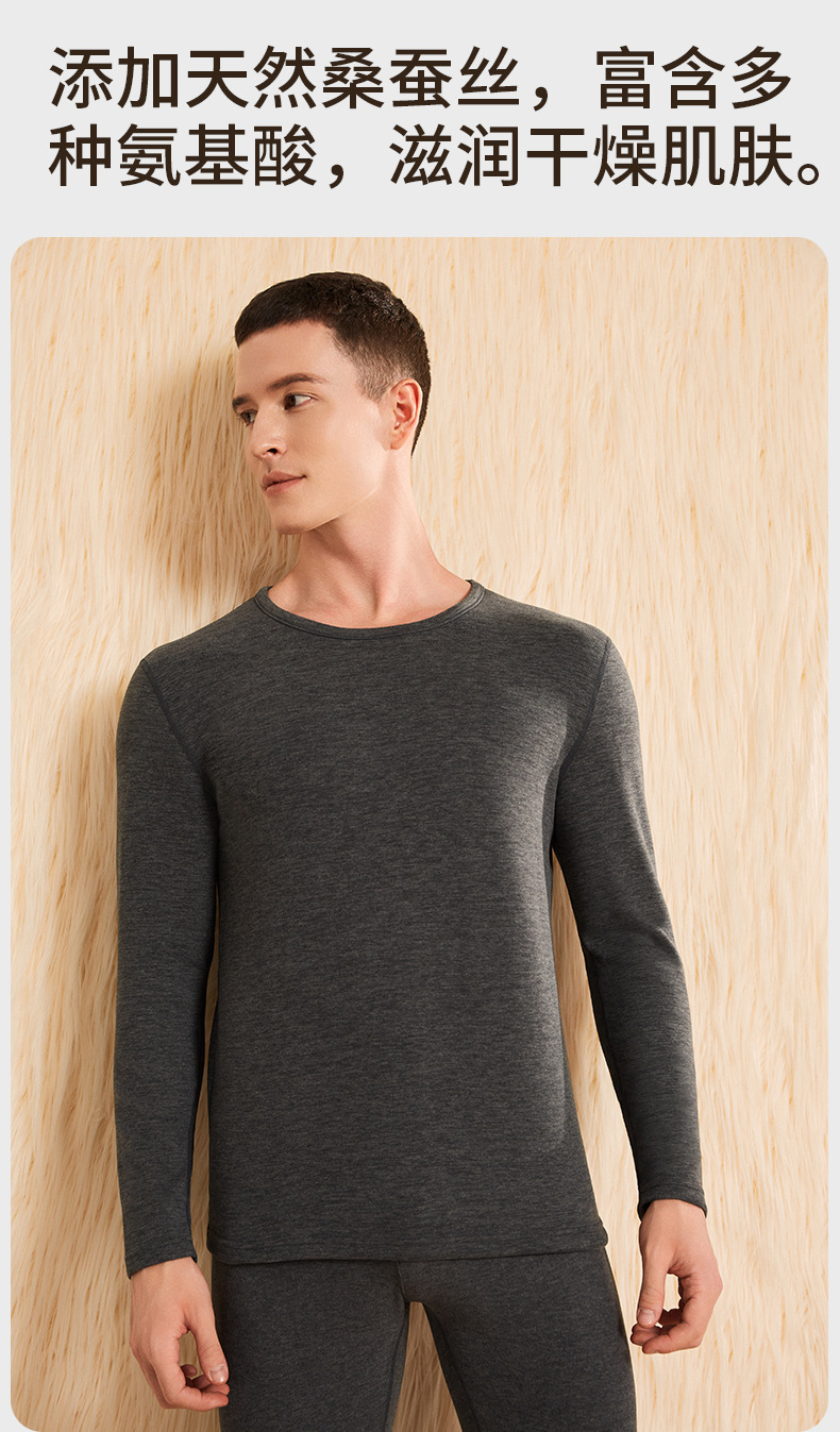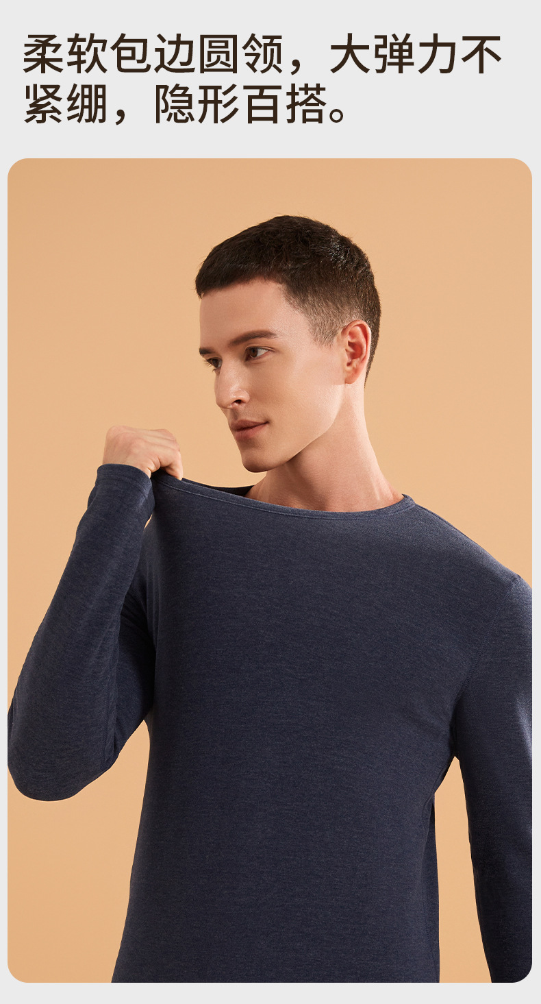 山羊绒蚕丝德绒保暖内衣 圆领加绒新款7A抗菌羊绒蚕丝包边保暖内衣女 加绒男士秋衣秋裤套装打底衫