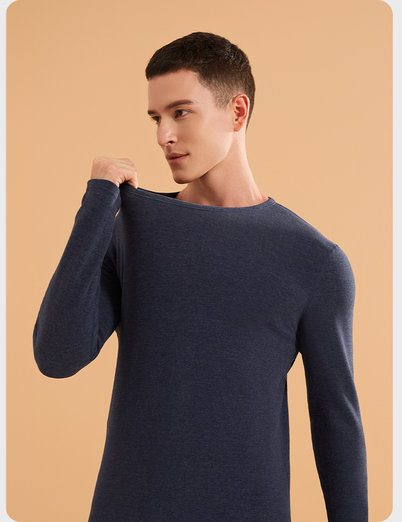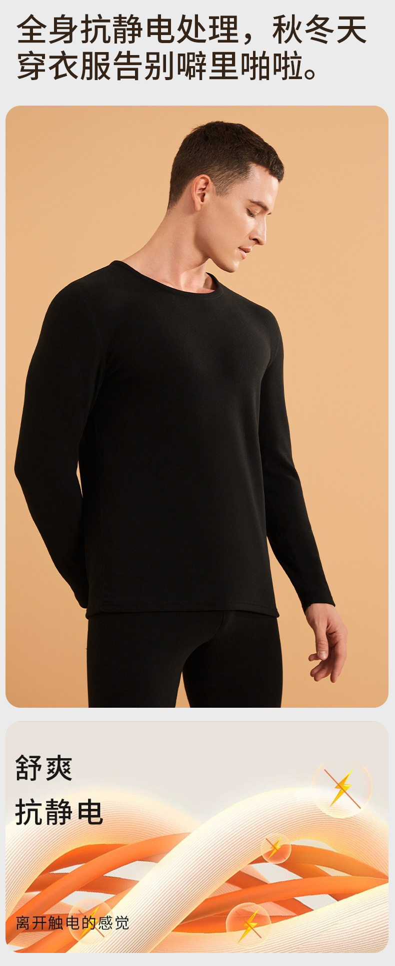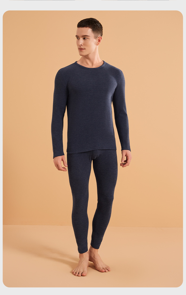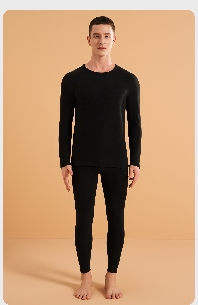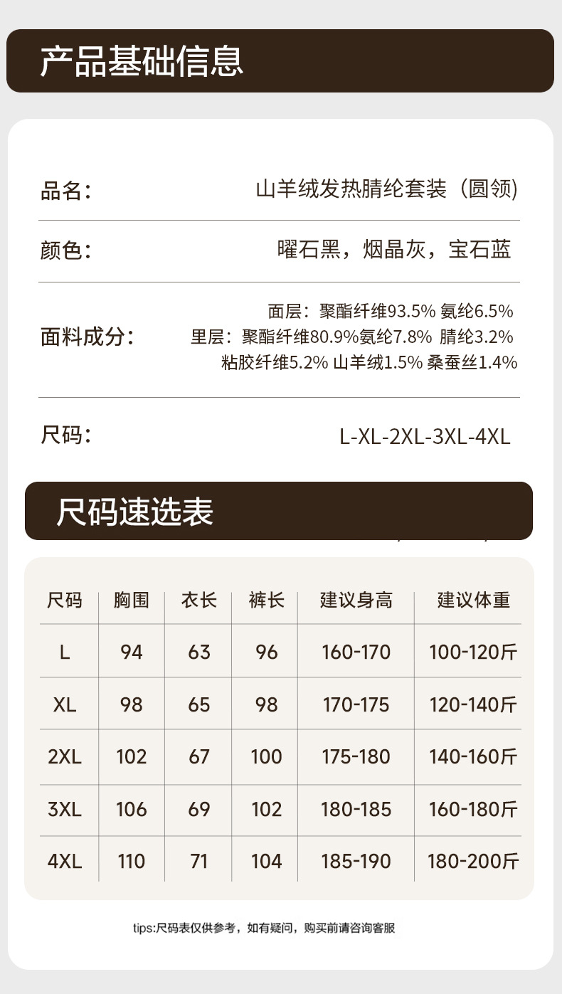 山羊绒蚕丝德绒保暖内衣 圆领加绒新款7A抗菌羊绒蚕丝包边保暖内衣女 加绒男士秋衣秋裤套装打底衫