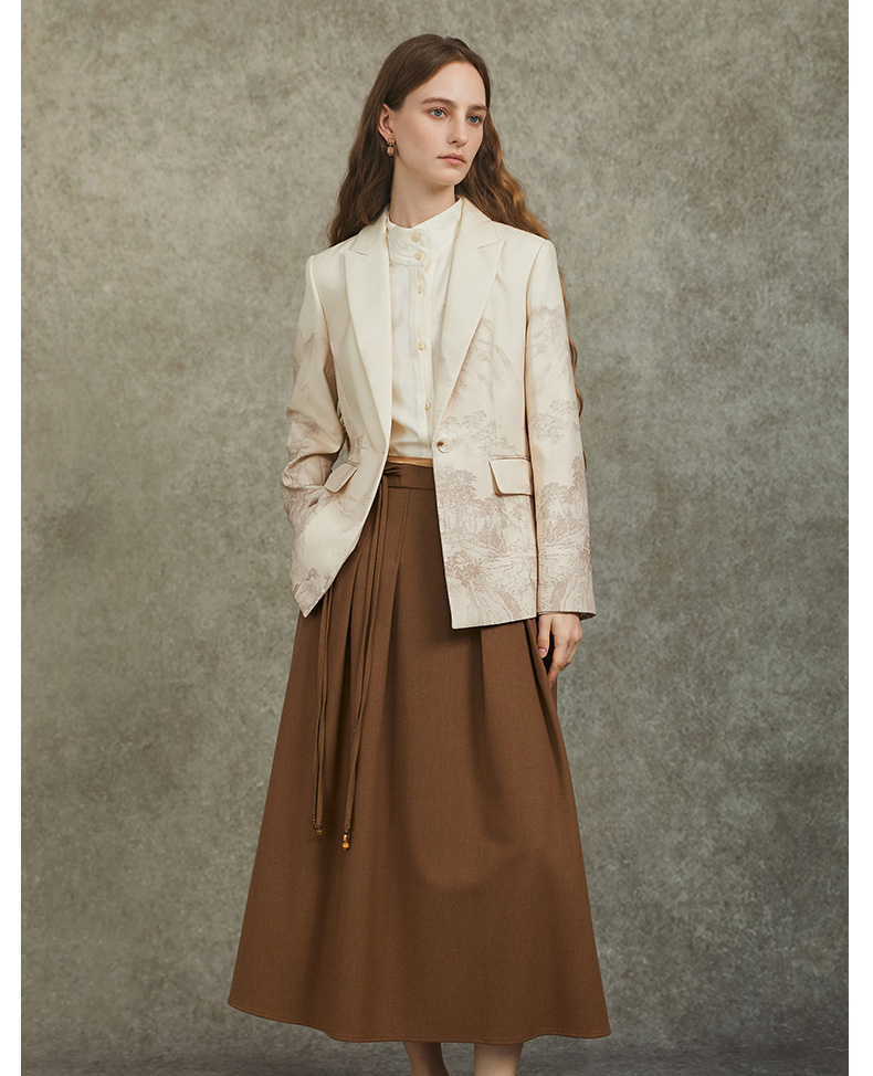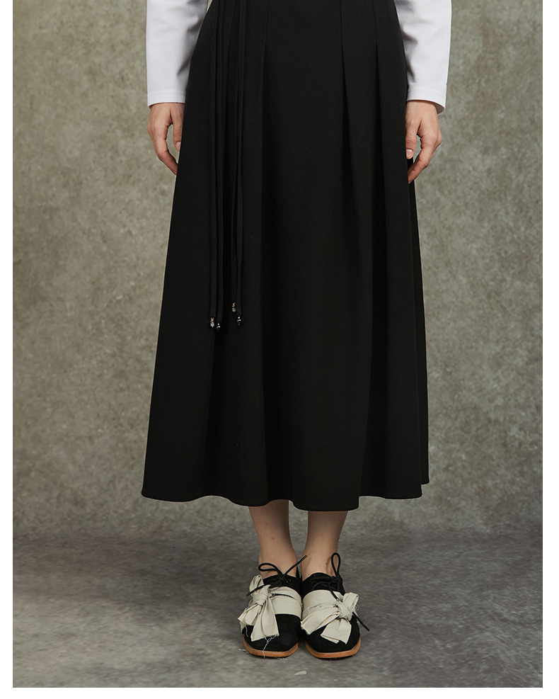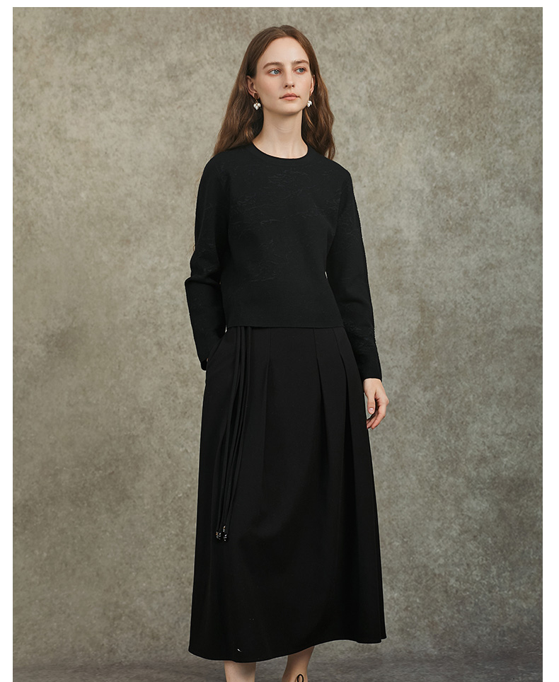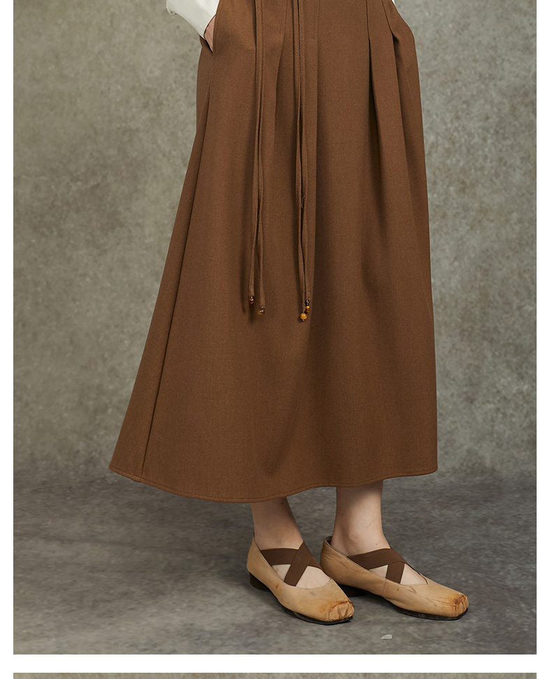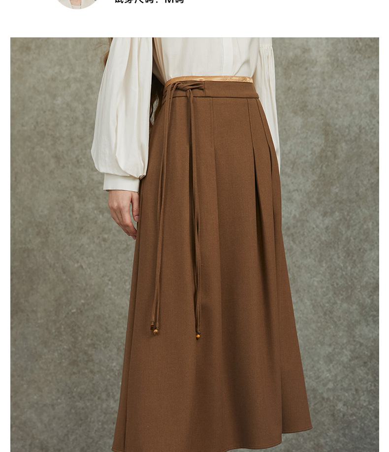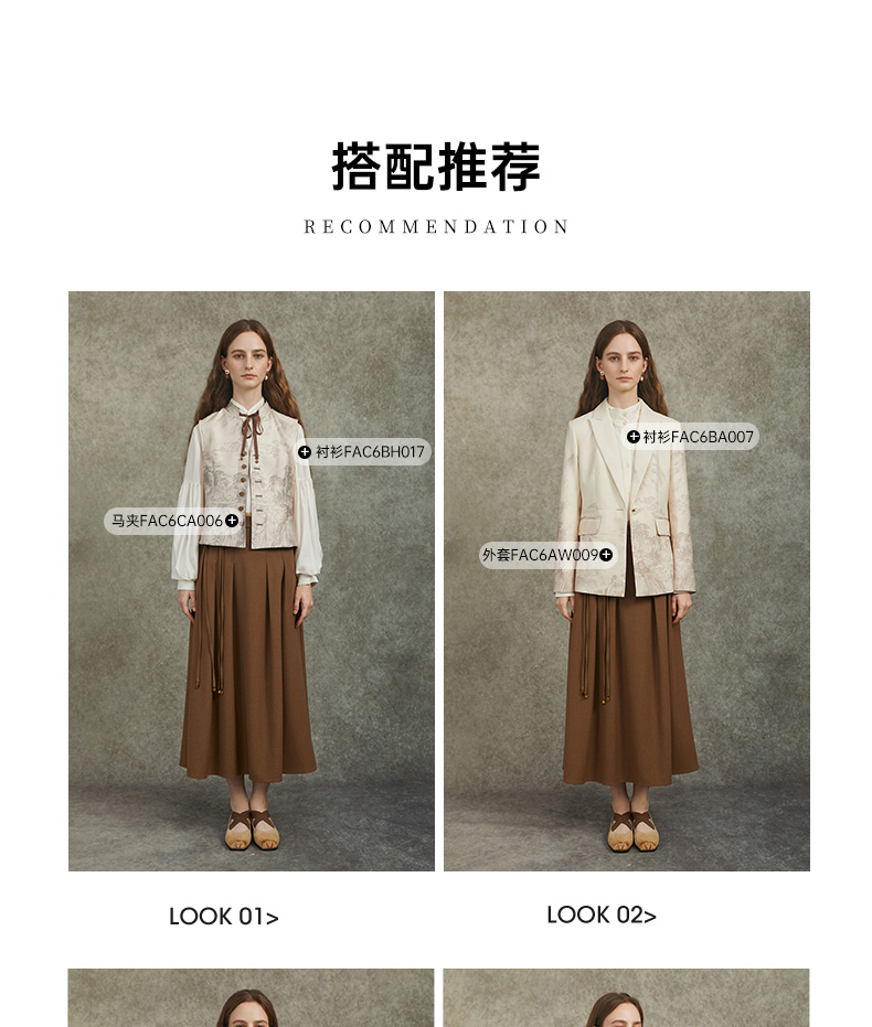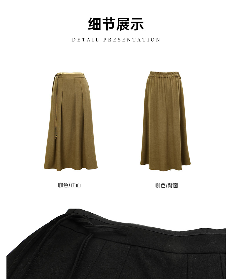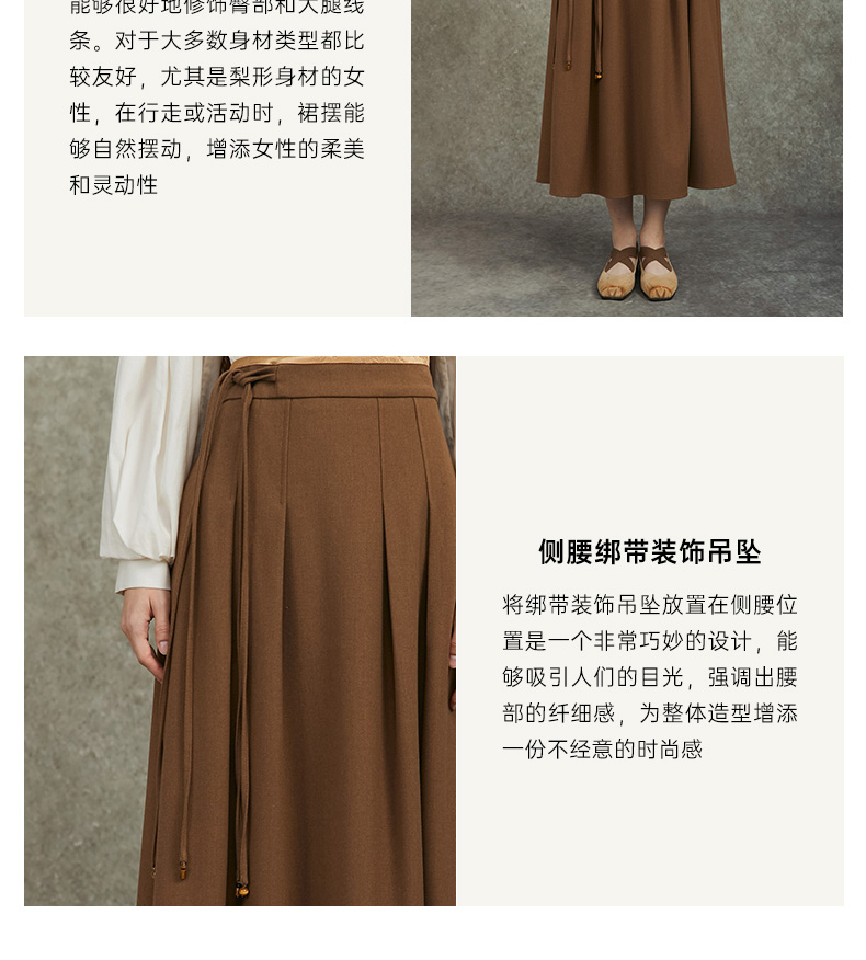Famecoco范可儿高级锻感拼接半身裙中式简约A字长裙FAC6HA010