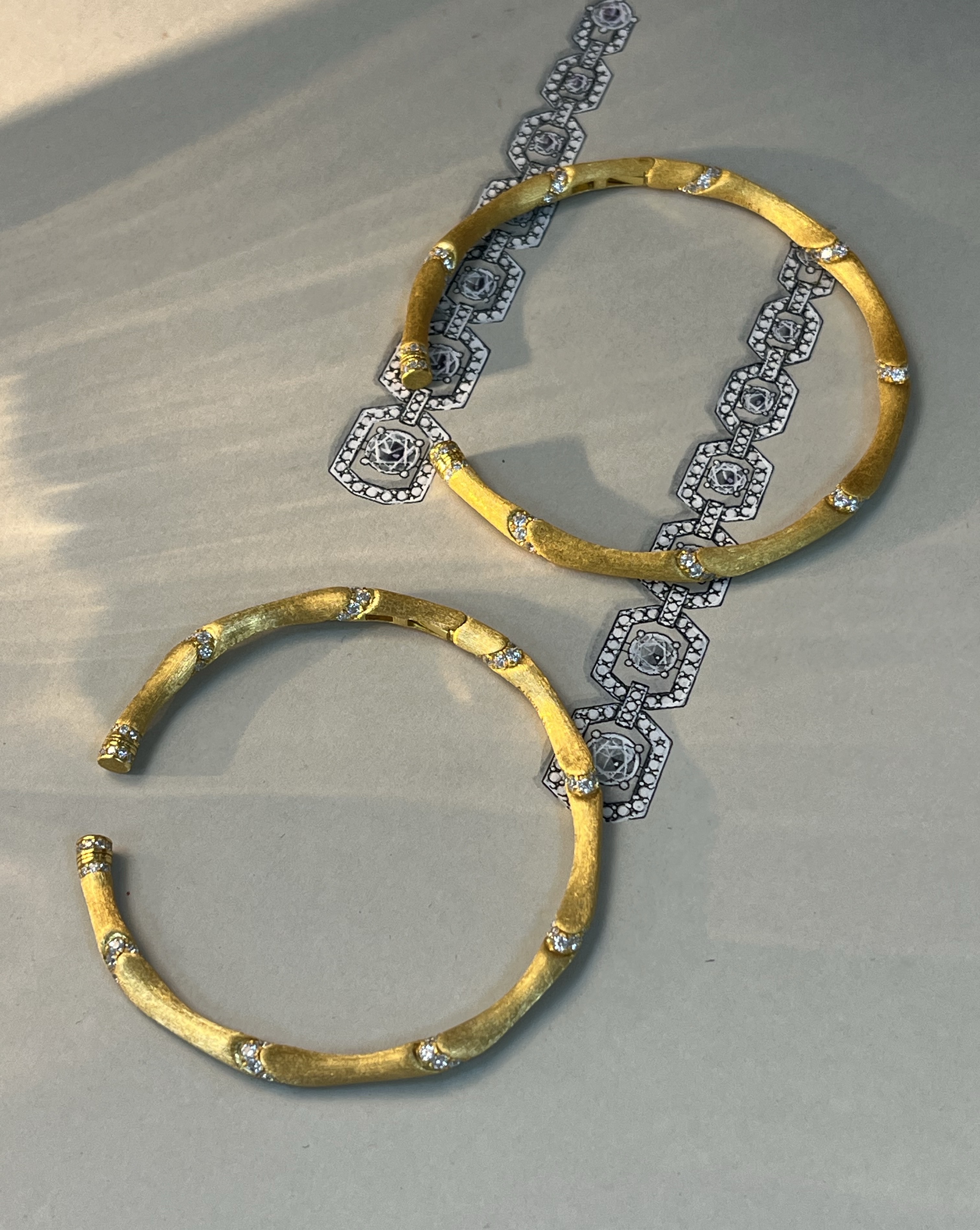 外层的镀金我们也赋予了匠心,每一件作品分别需要镀金三次,每次的镀金都有着不一样的目标,但是最终,都是为了成就戴在指尖,腕上,饰于胸前,伏于耳畔那片闪闪发光的它们.