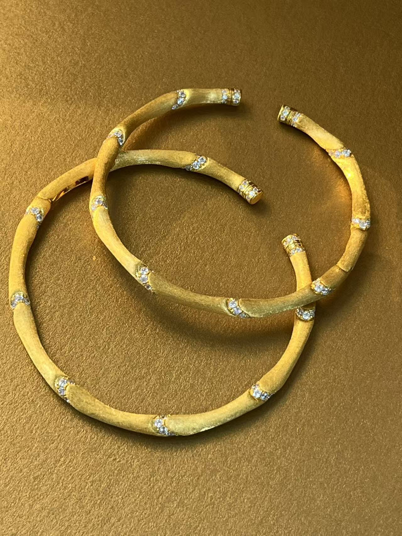 节节高升 所愿皆成 镯子体型圆润饱满 竹节拉丝镯 近圆形 侧面开口镯子 银镀金首饰(非质量问题 不退不换)