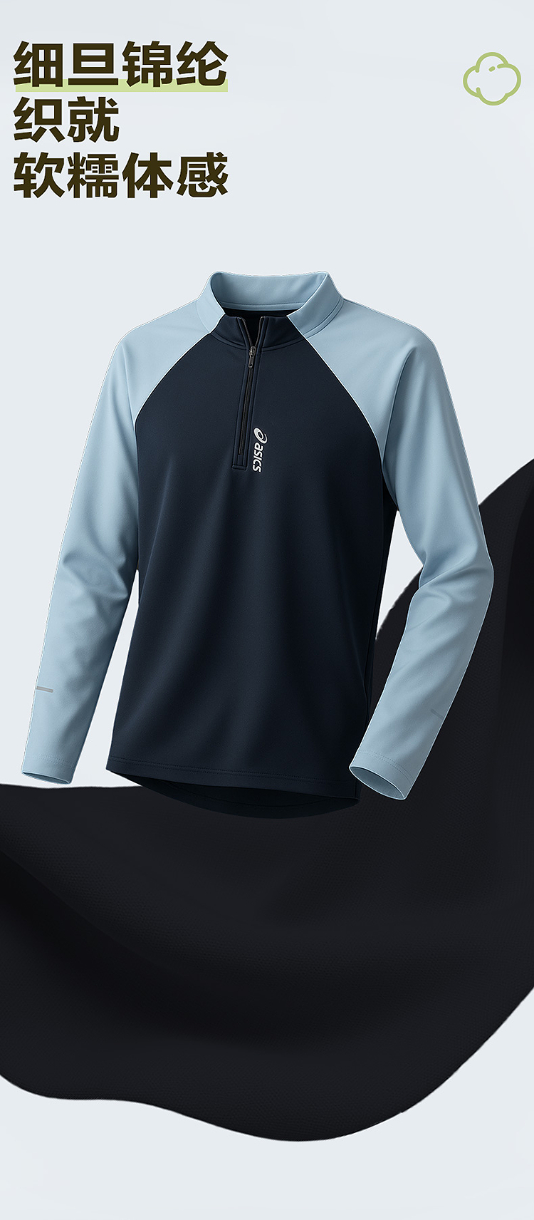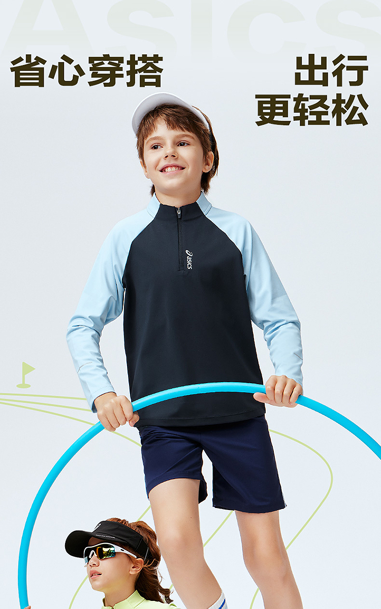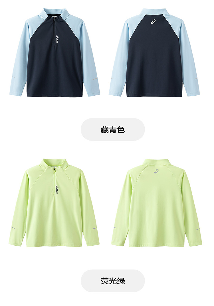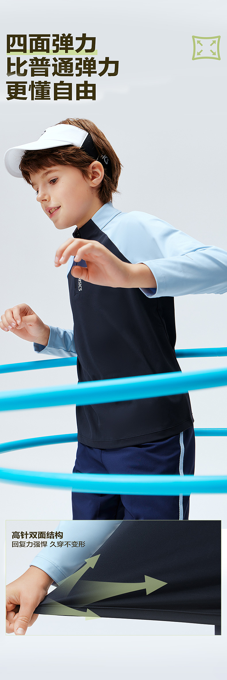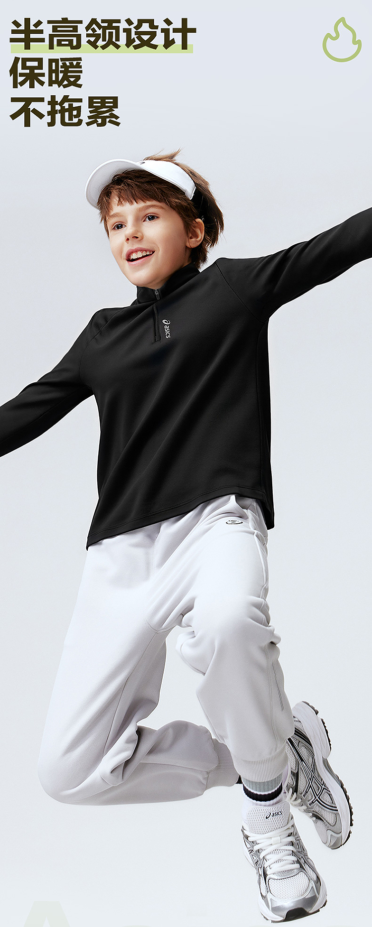 ASICS/亚瑟士儿童2026年新款半高领logo长袖撞色速干T恤舒适百搭