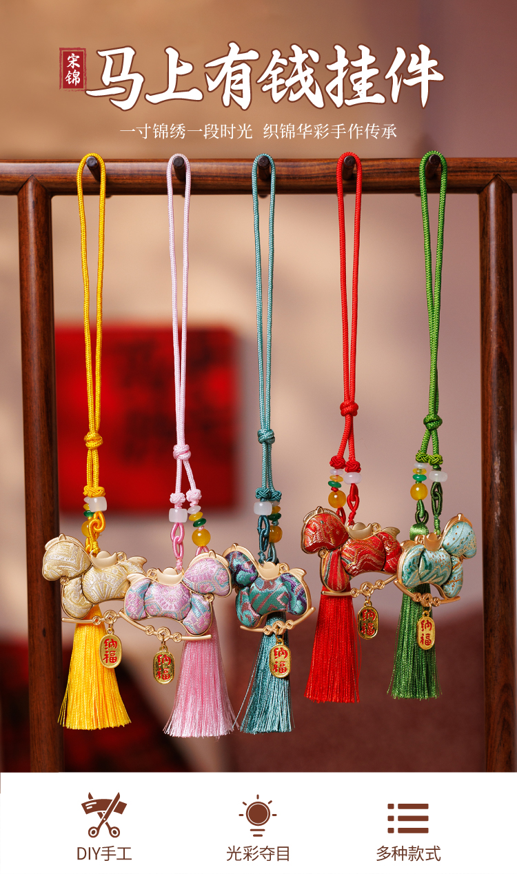 马年新年春节元旦非遗宋锦马上有钱挂件,非遗手工/暖场活动/赠礼好物体验传统技艺魅力,款式多样,制作简单,一套齐全,手工diy材料,装饰挂件,手工制作
