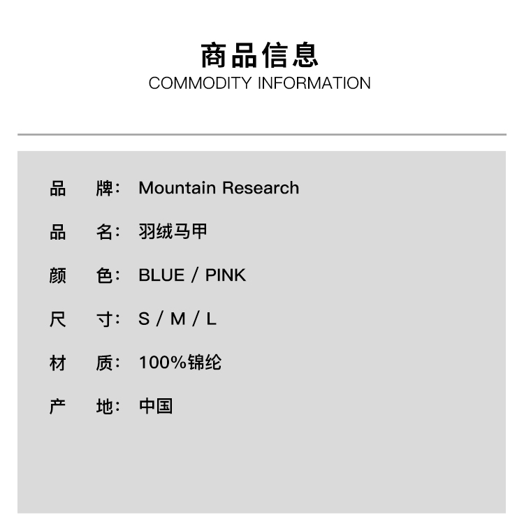Mountain Research Puff Vest 联名款轻量保暖连帽羽绒马甲