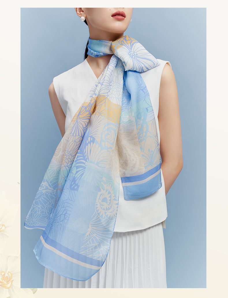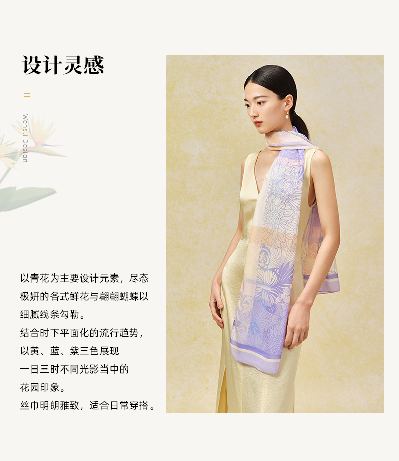 万事利“木兰辞”51厘米双面印花真丝小方巾