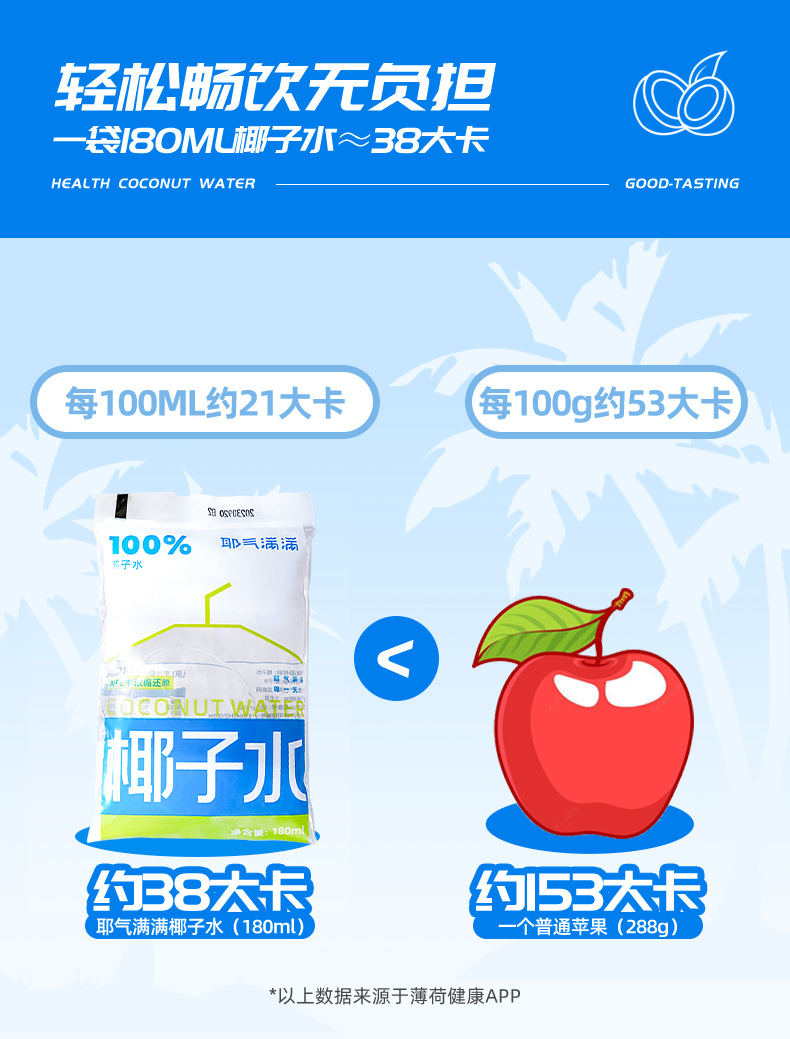 【耶气满满 小白袋椰子水!!品牌直发!新品new限量到货!】 耶气满满袋装椰子水!仅34.9/10小袋包邮到家 NFC椰子水!不添加一滴水!不添加糖和色素 配料表:只有椰子水!