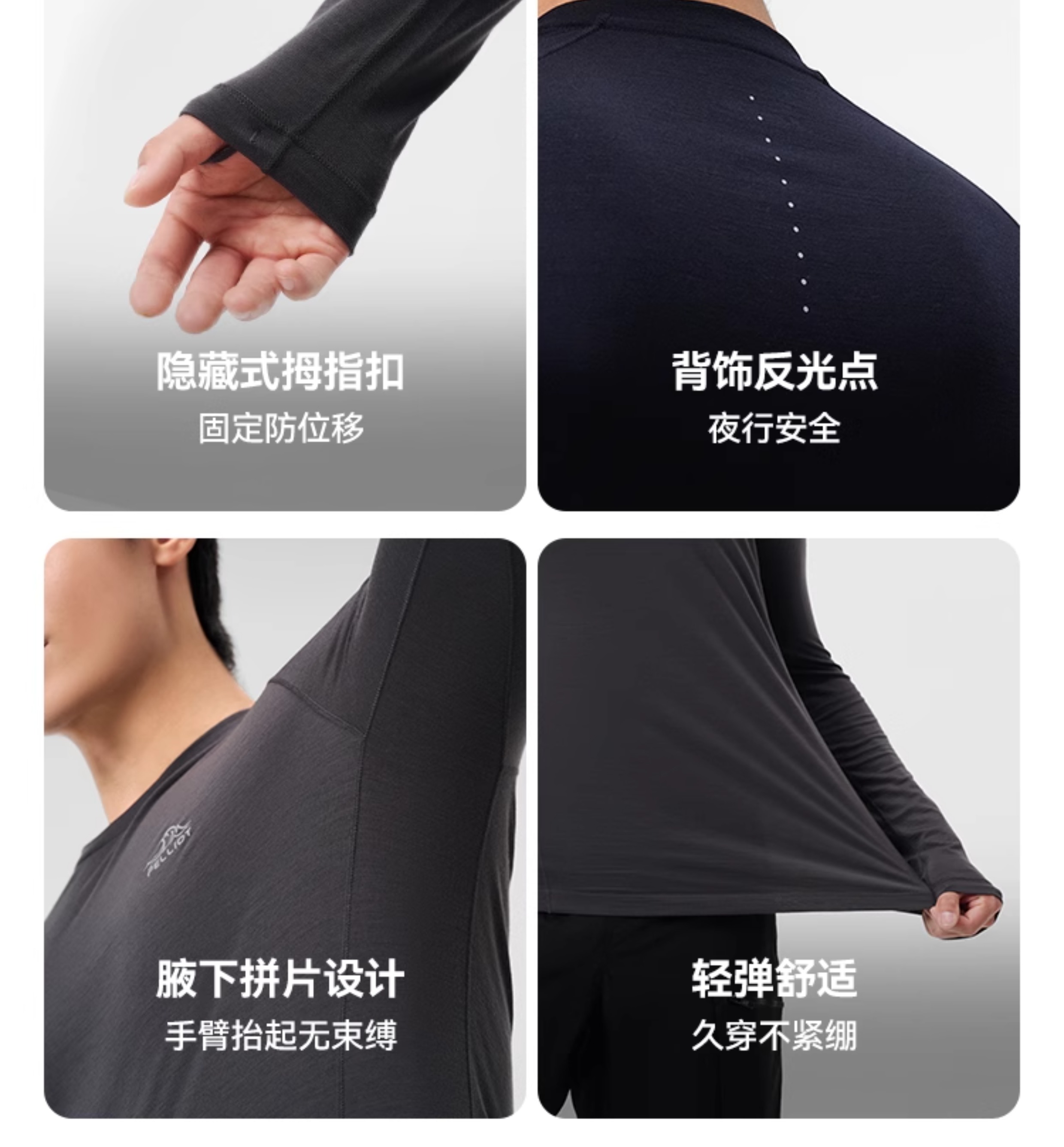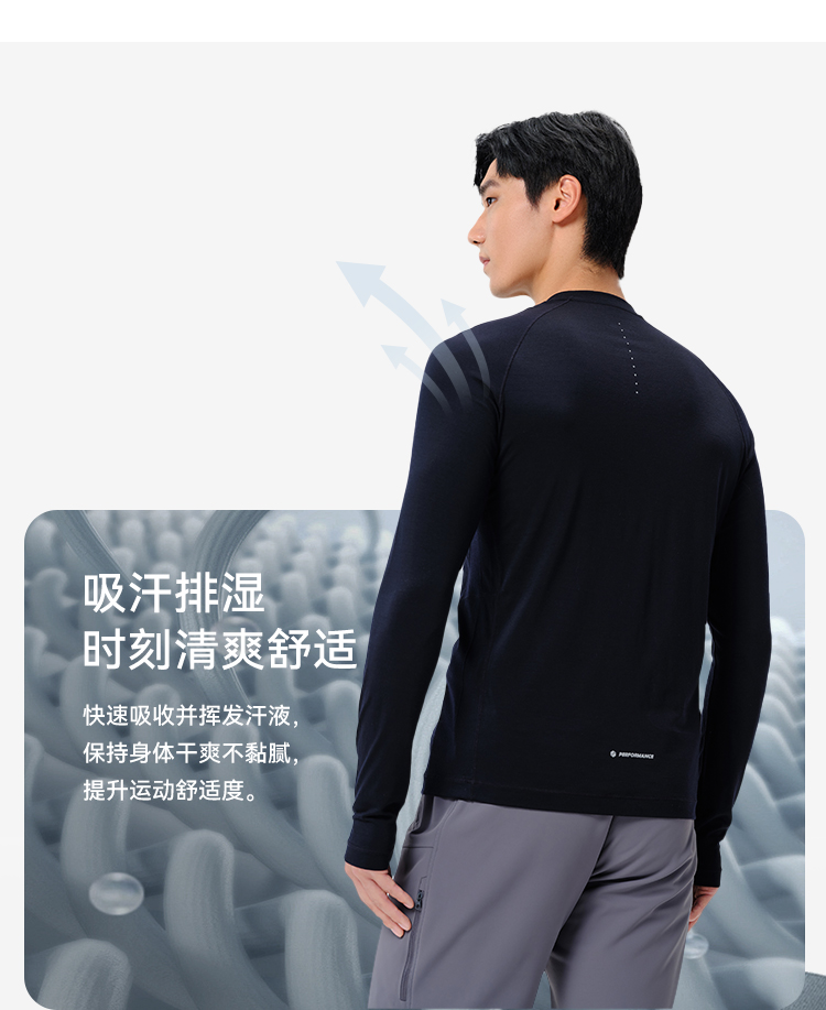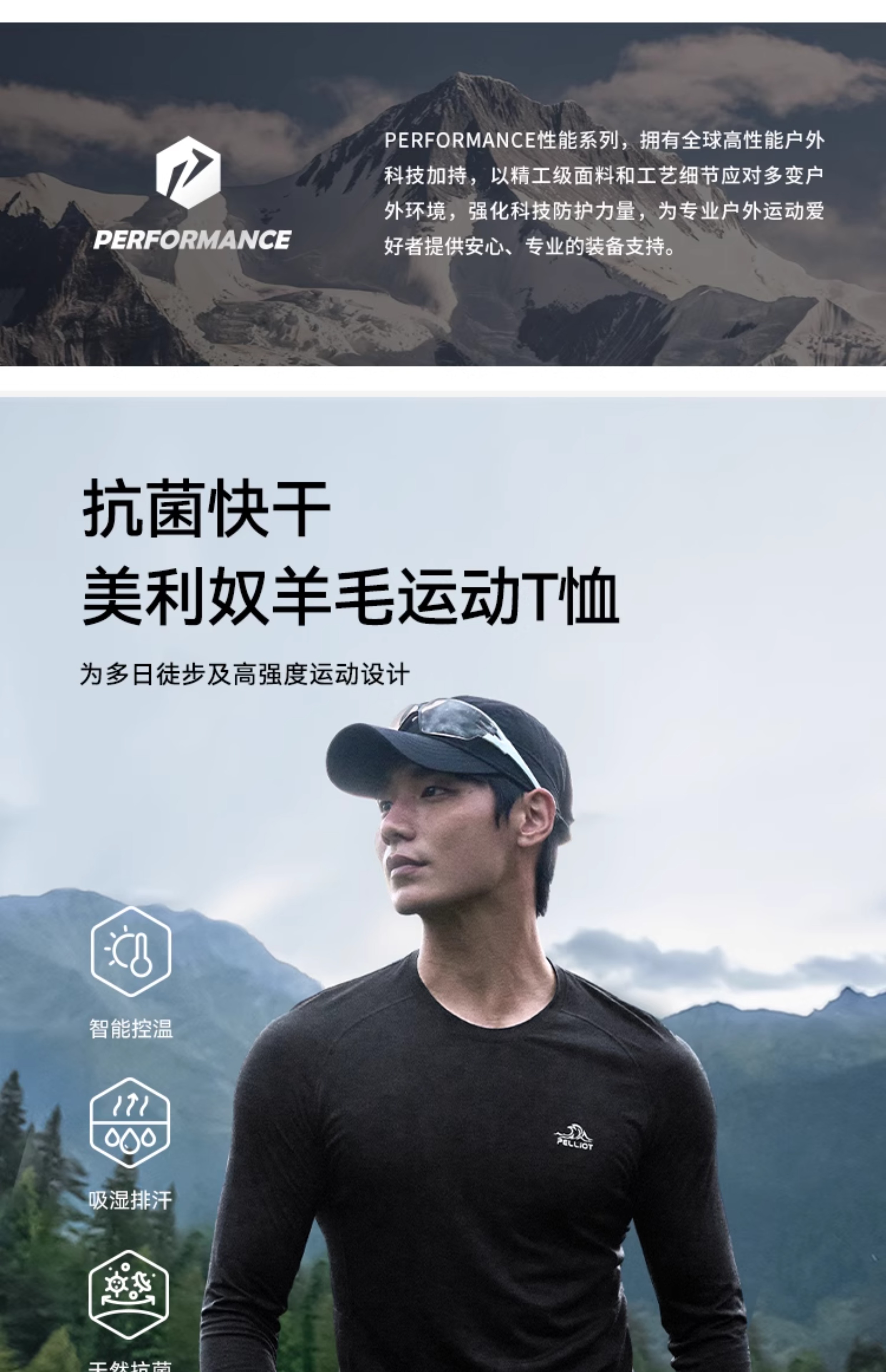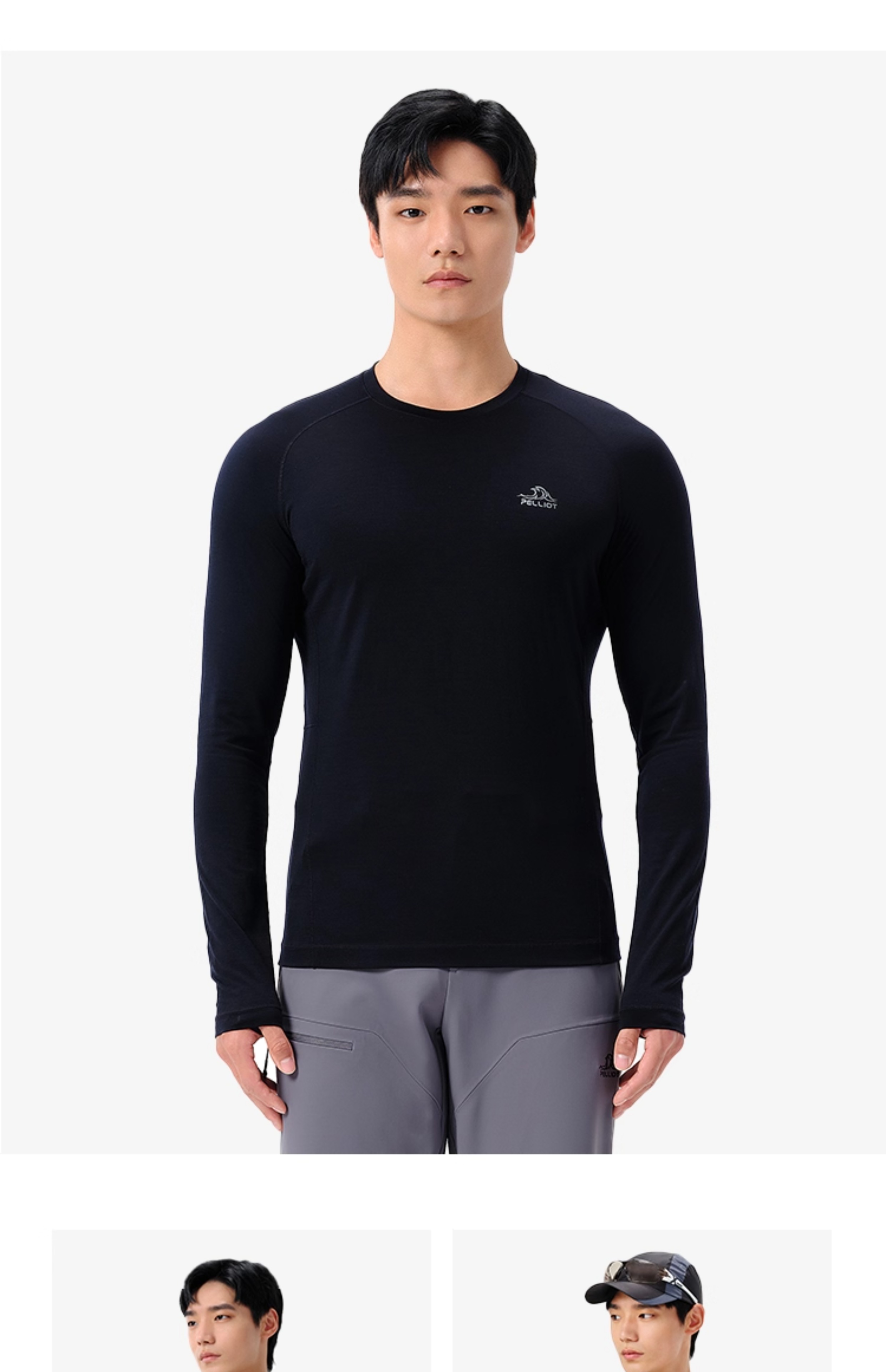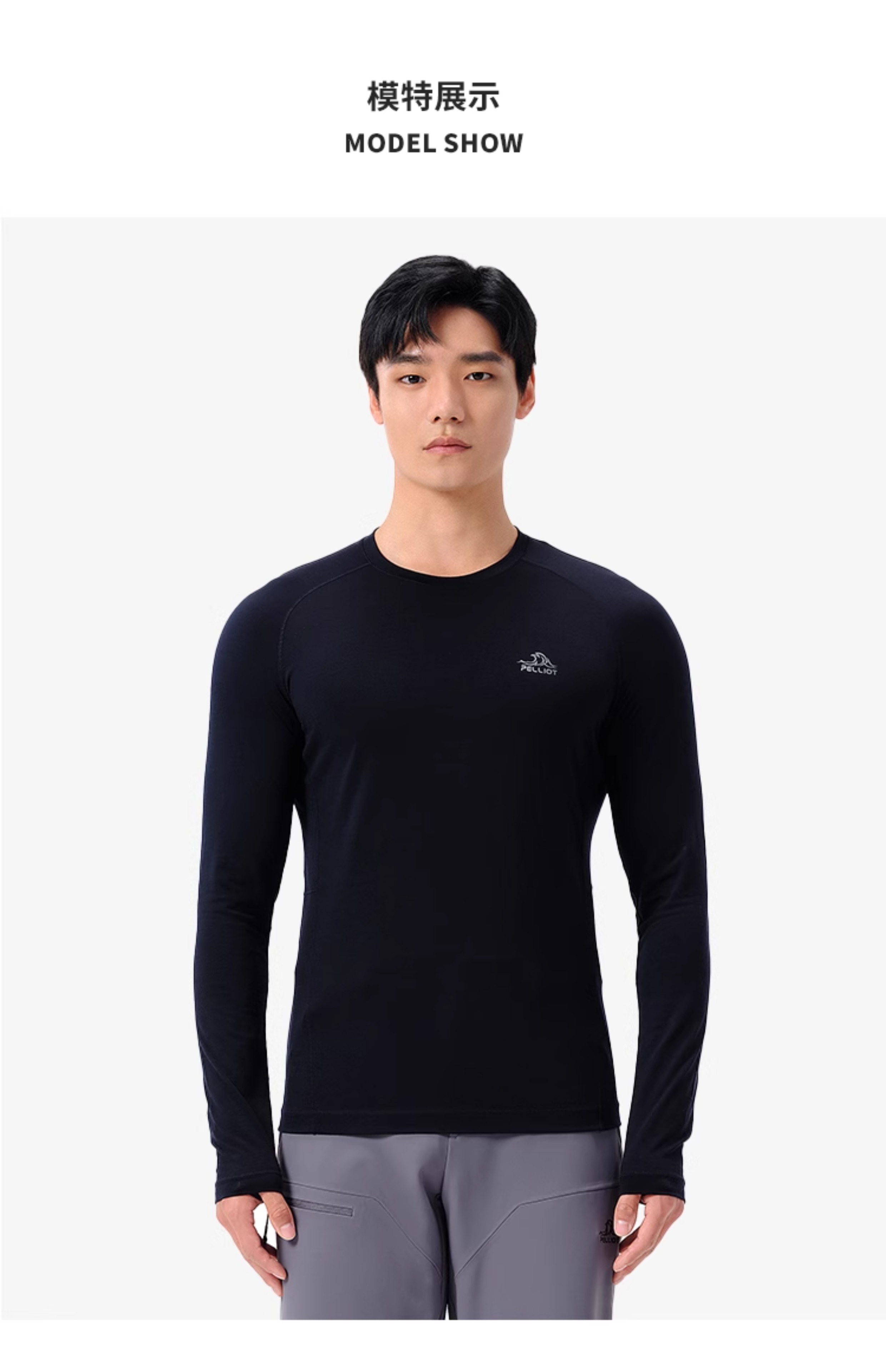 【P系列】伯希和户外运动T恤男士长袖美利奴羊毛快干抗菌休闲上衣