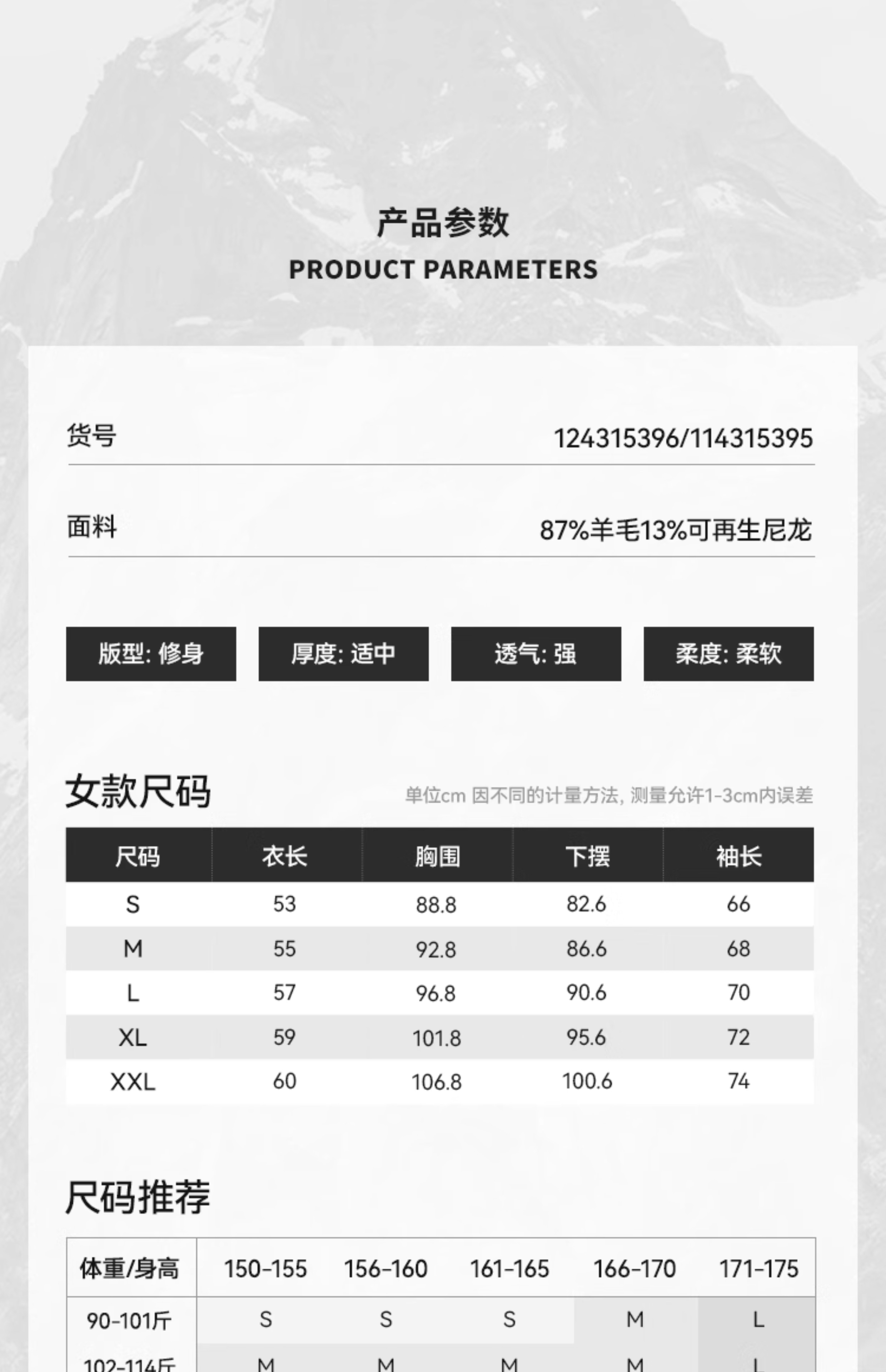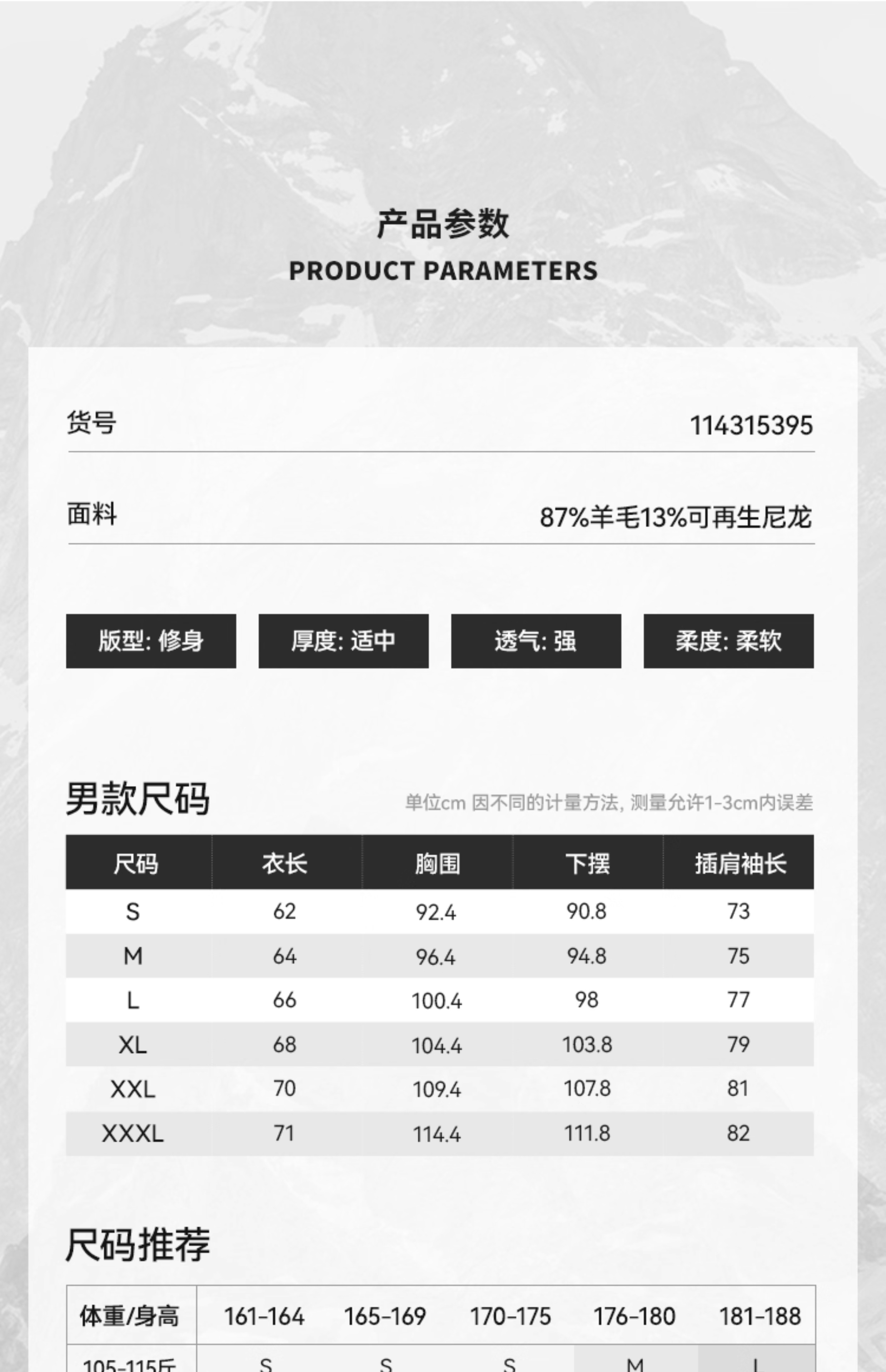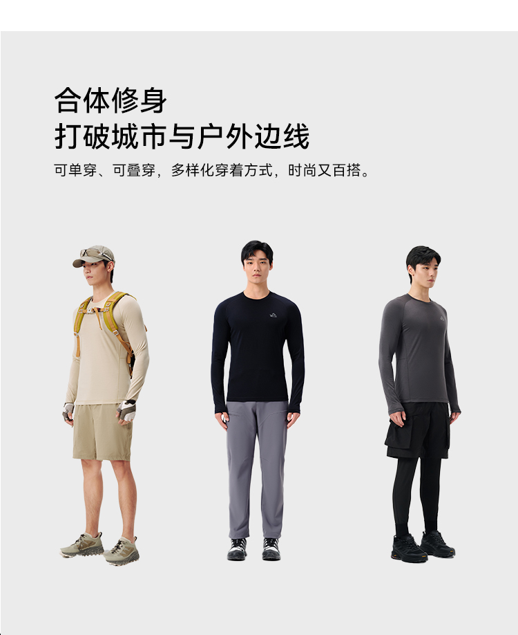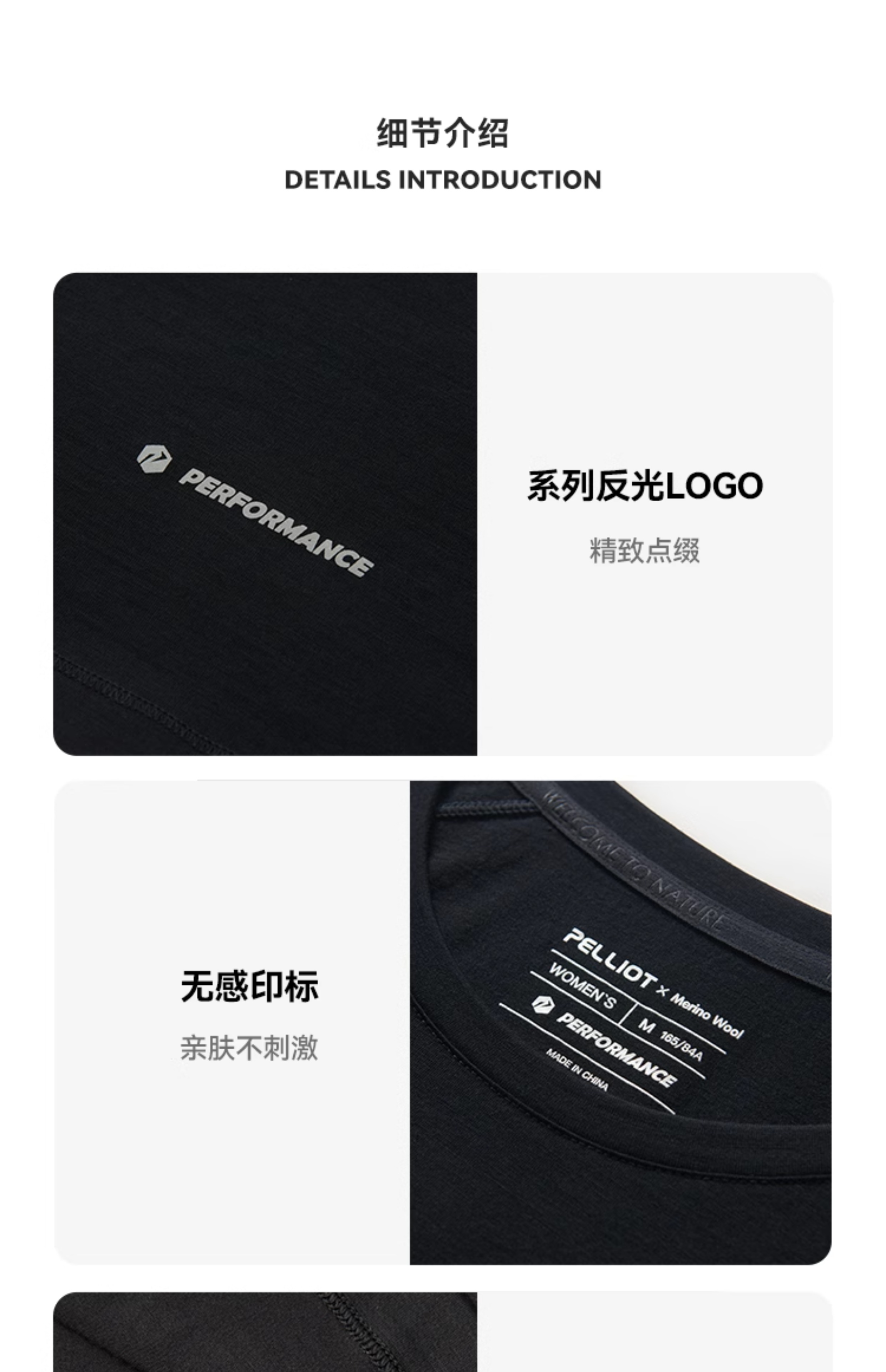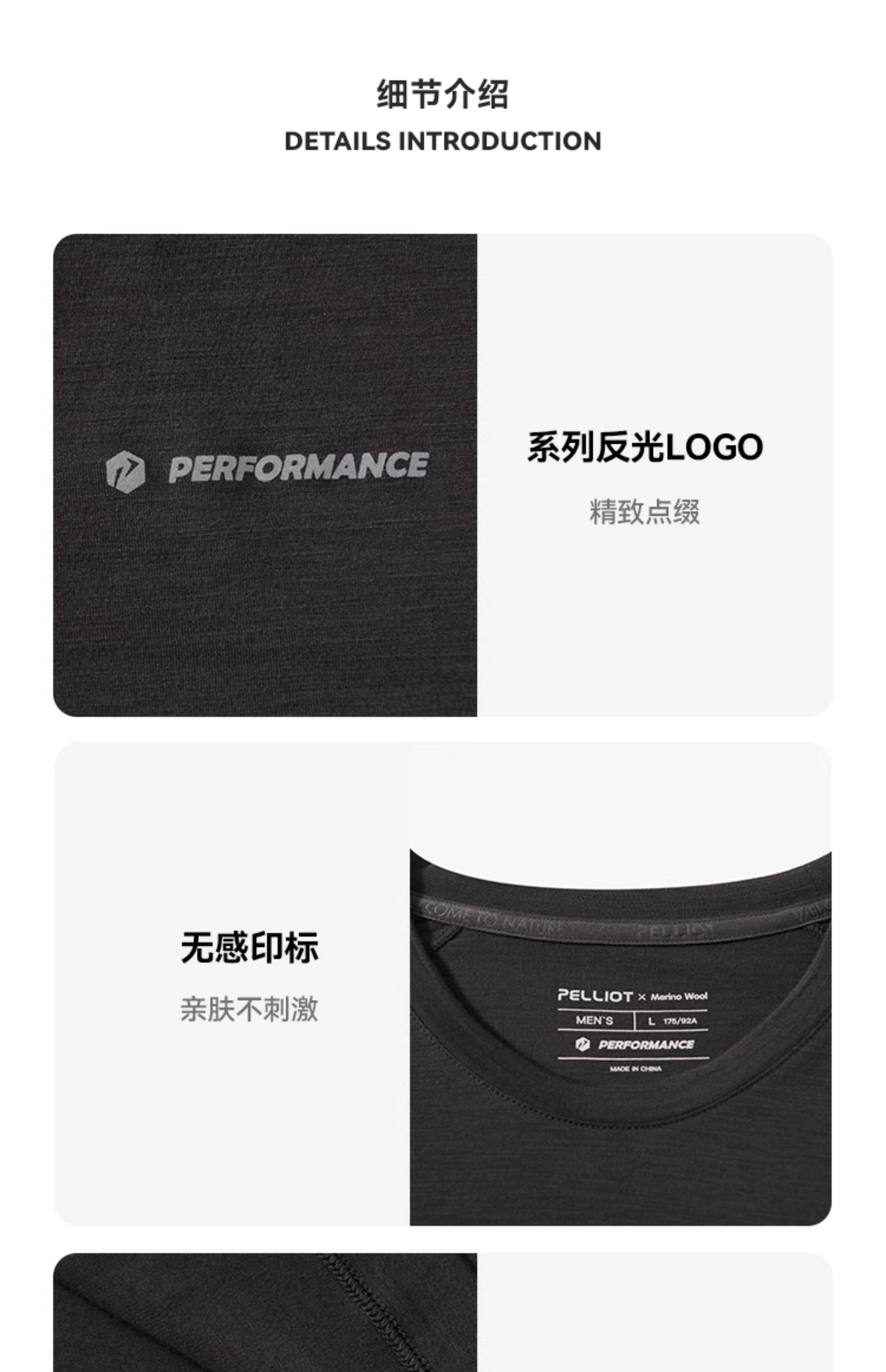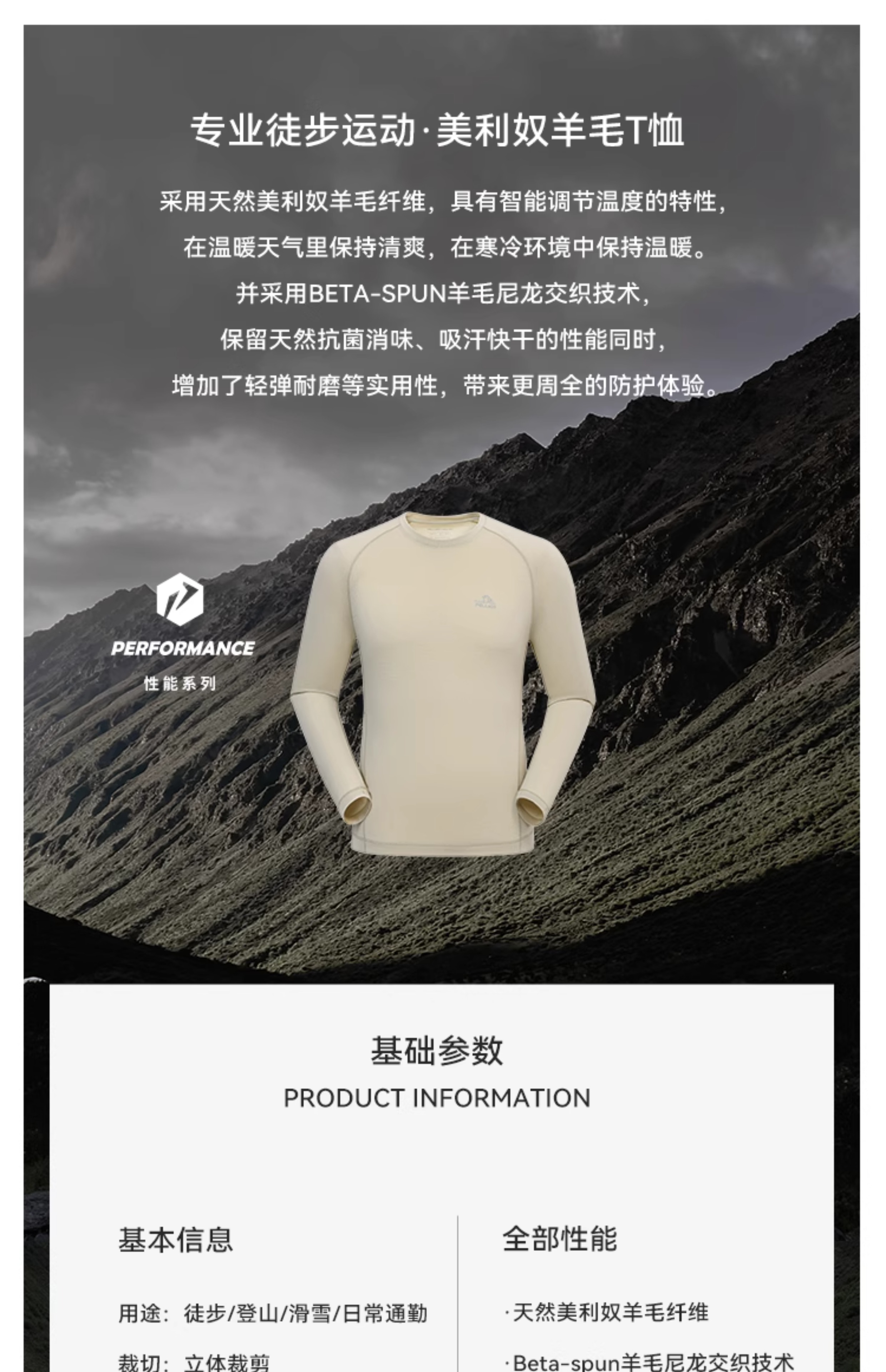 【P系列】伯希和户外运动T恤男士长袖美利奴羊毛快干抗菌休闲上衣