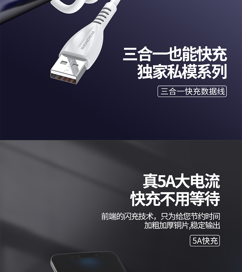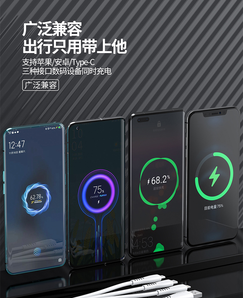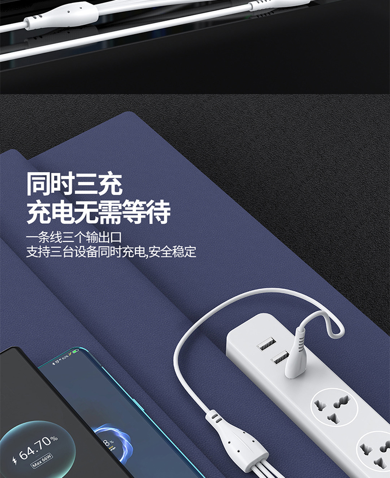 1拖3闪充数据线 安卓智能通用数据线 适用于OPPO VIVO 数据线