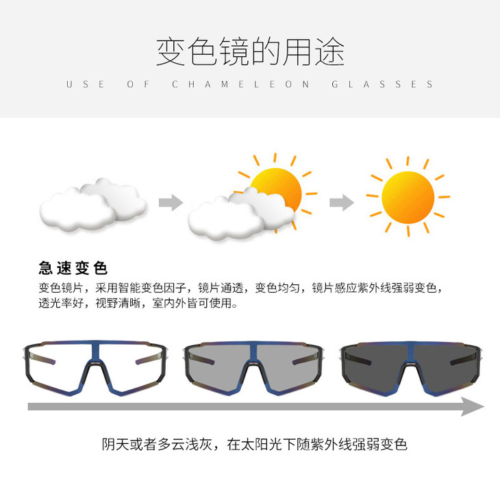 新款户外运动骑行眼镜欧美自行车变色太阳镜男女连体运动墨镜
