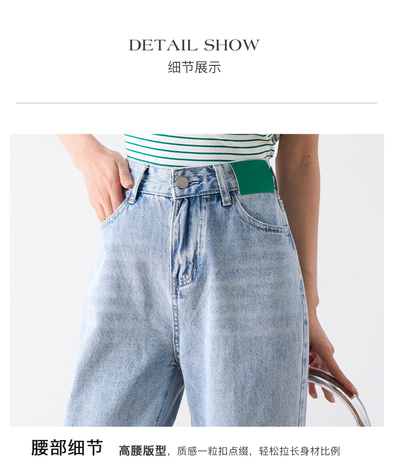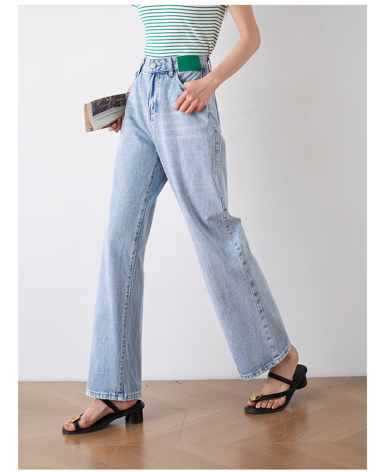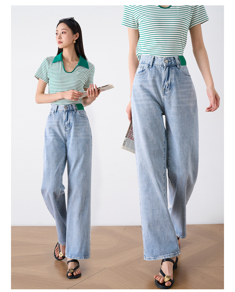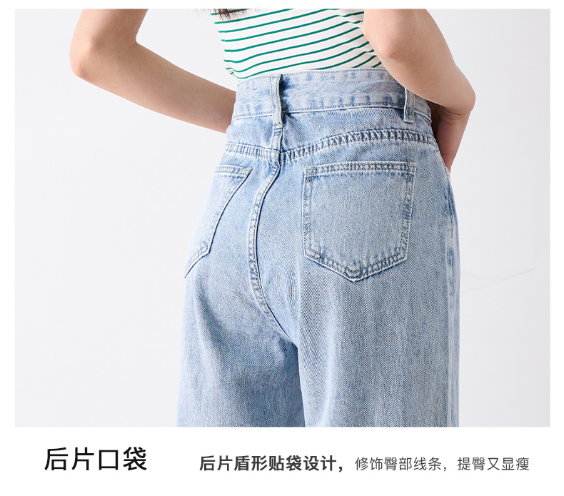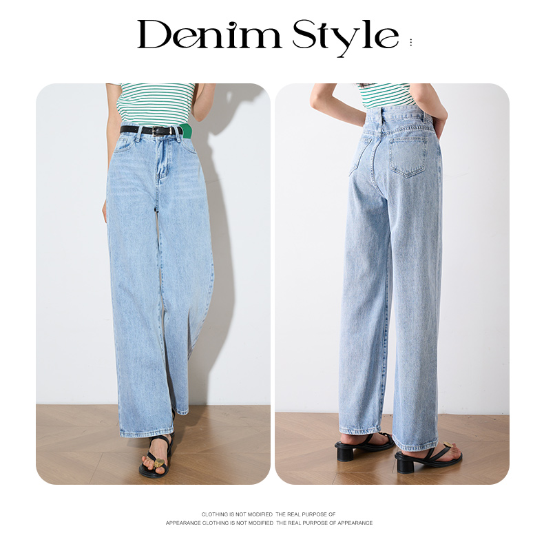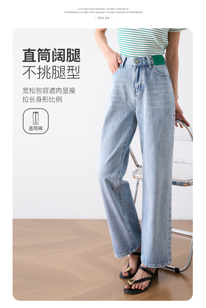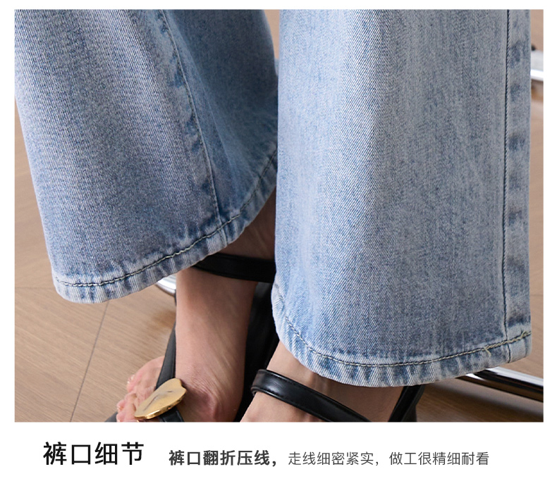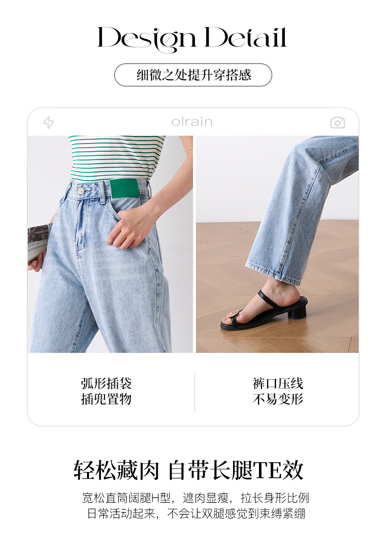 OLrain欧芮儿浅蓝色阔腿牛仔裤女夏季2025年新款高腰直筒长裤