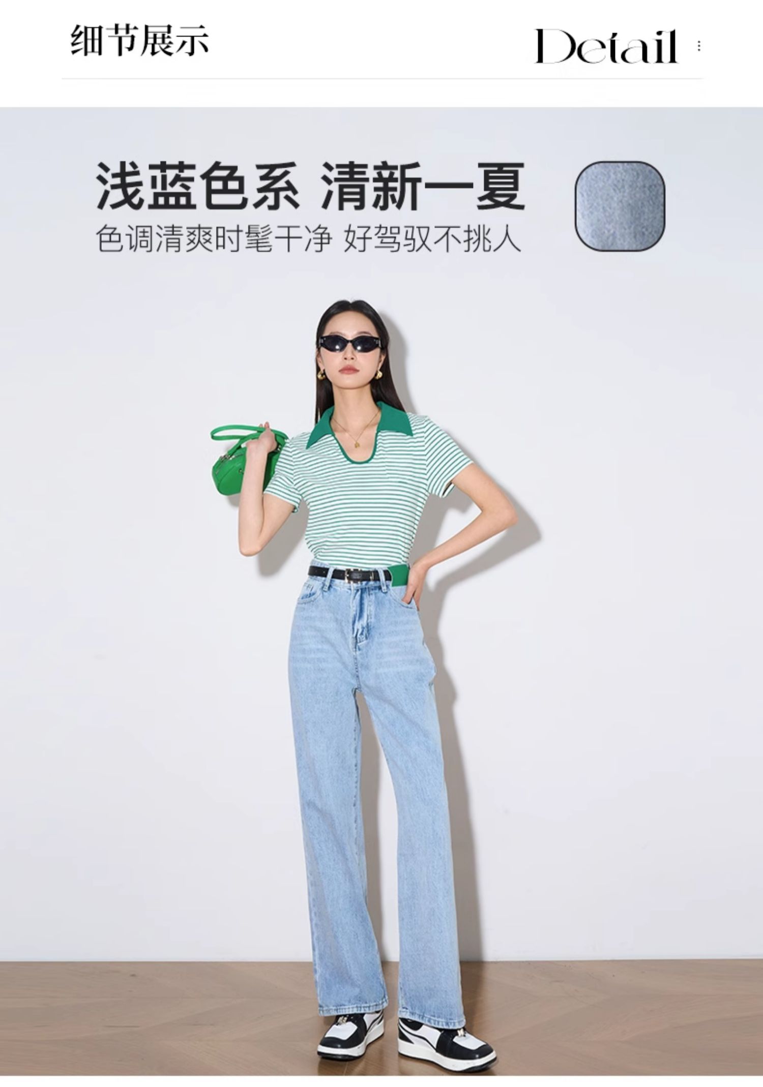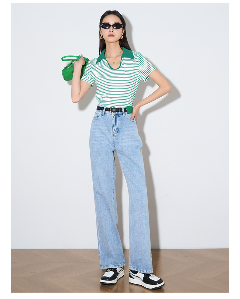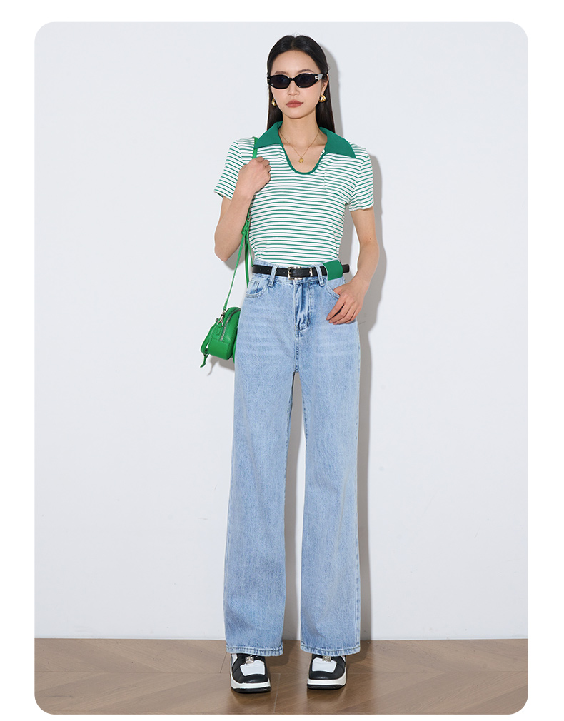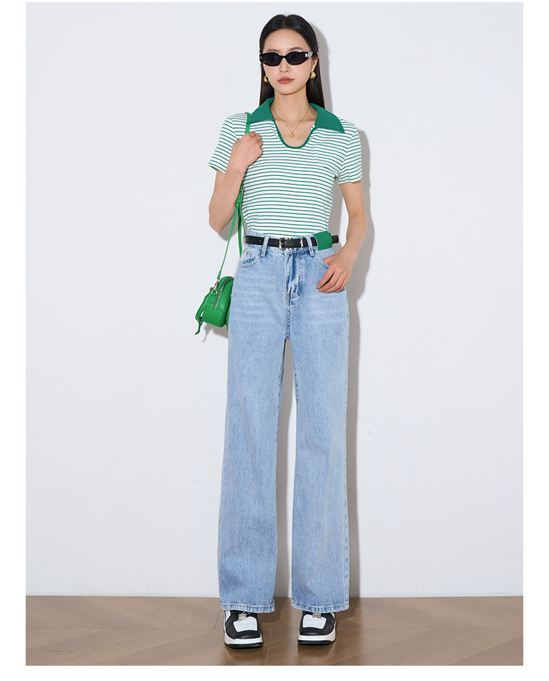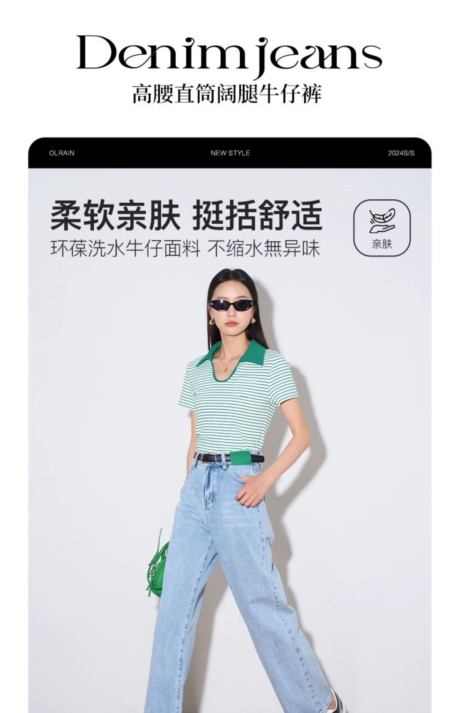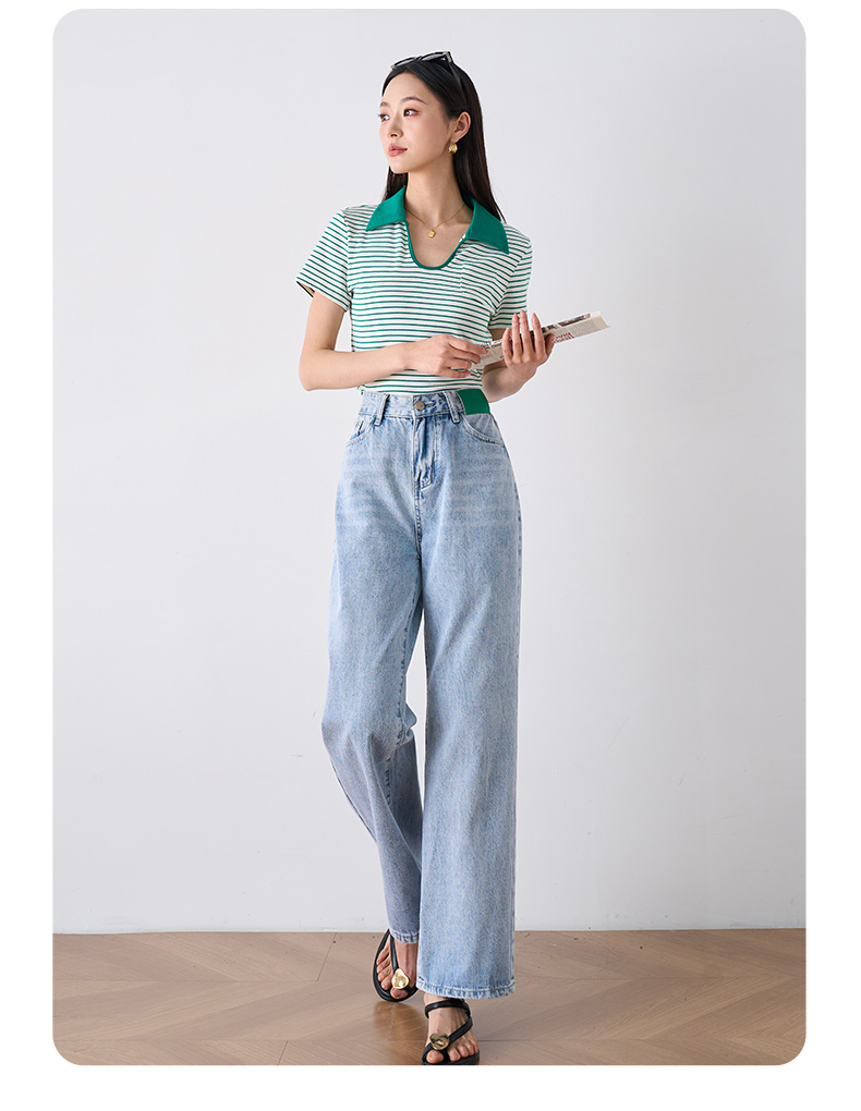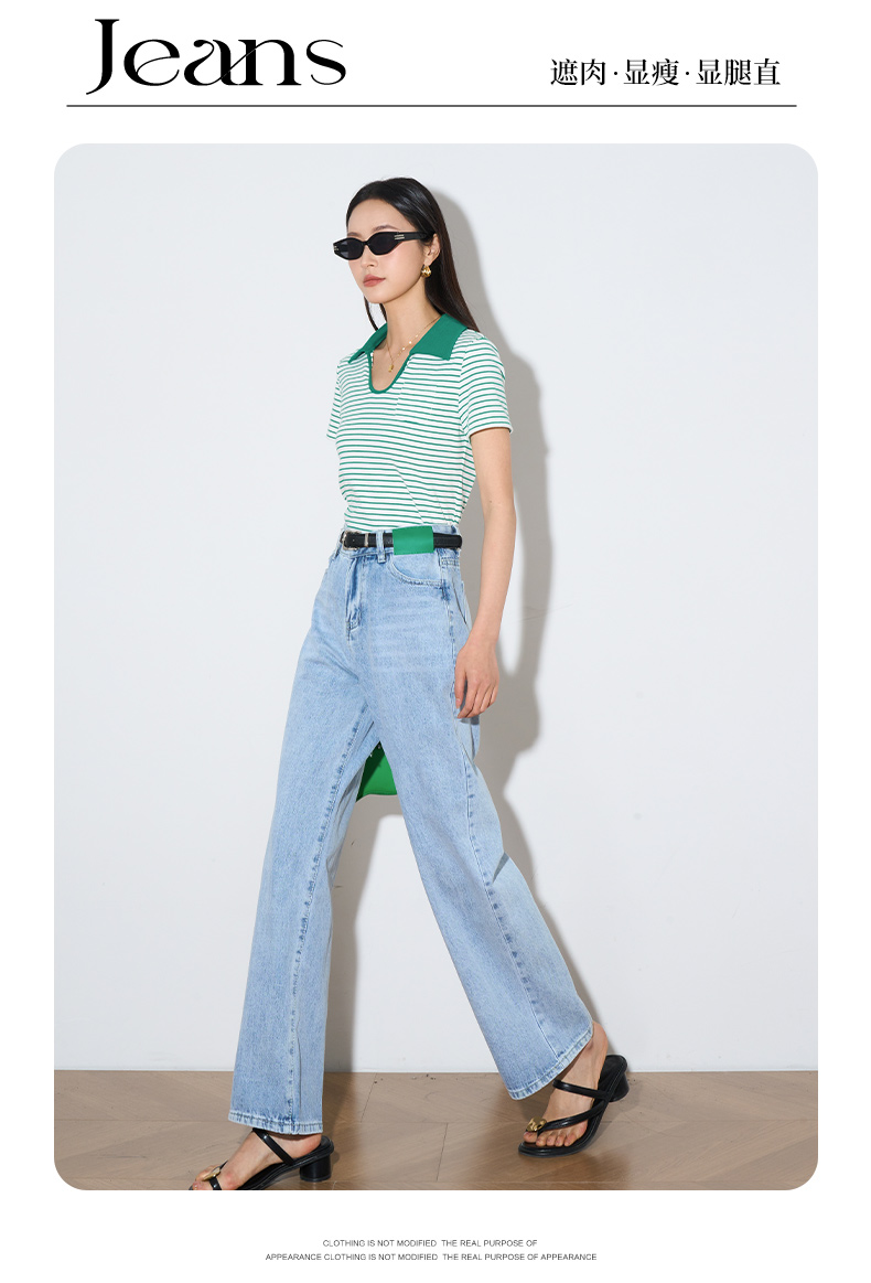 OLrain欧芮儿浅蓝色阔腿牛仔裤女夏季2025年新款高腰直筒长裤
