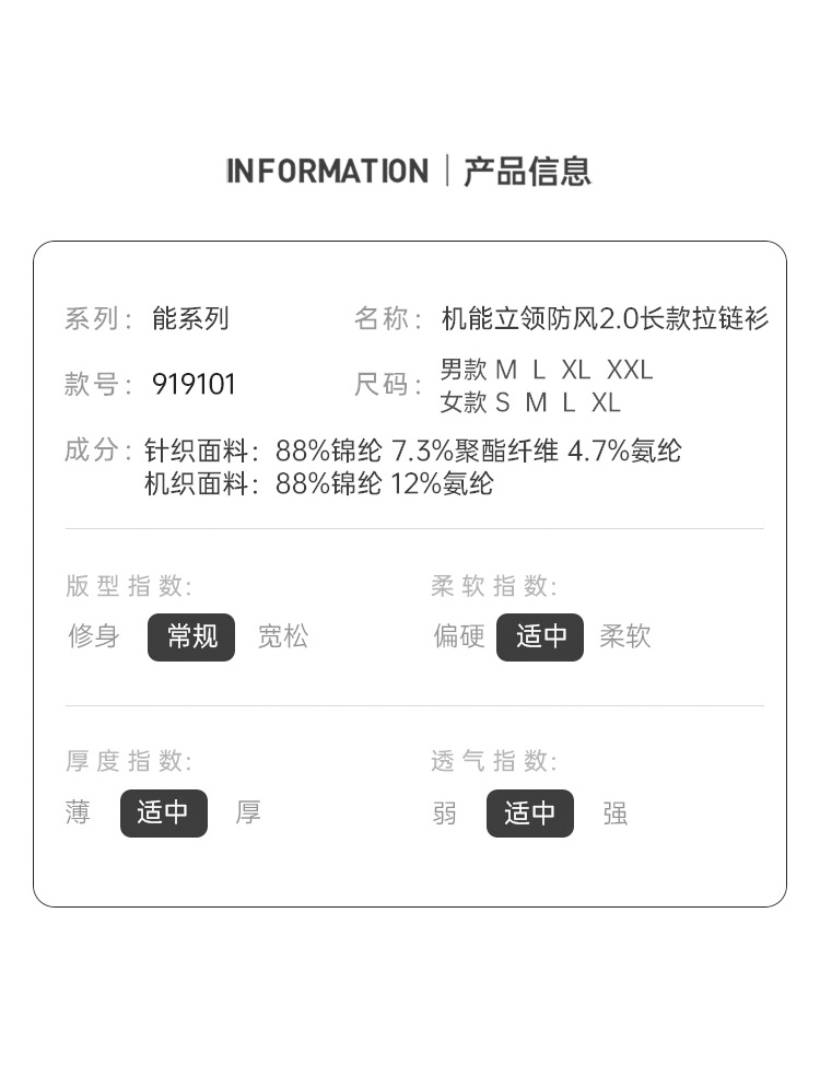 UTO能系列机能立领防风2.0男士长款拉链衫