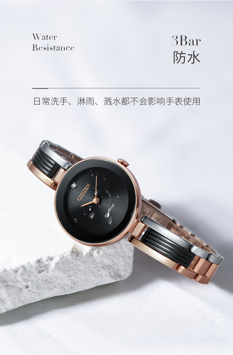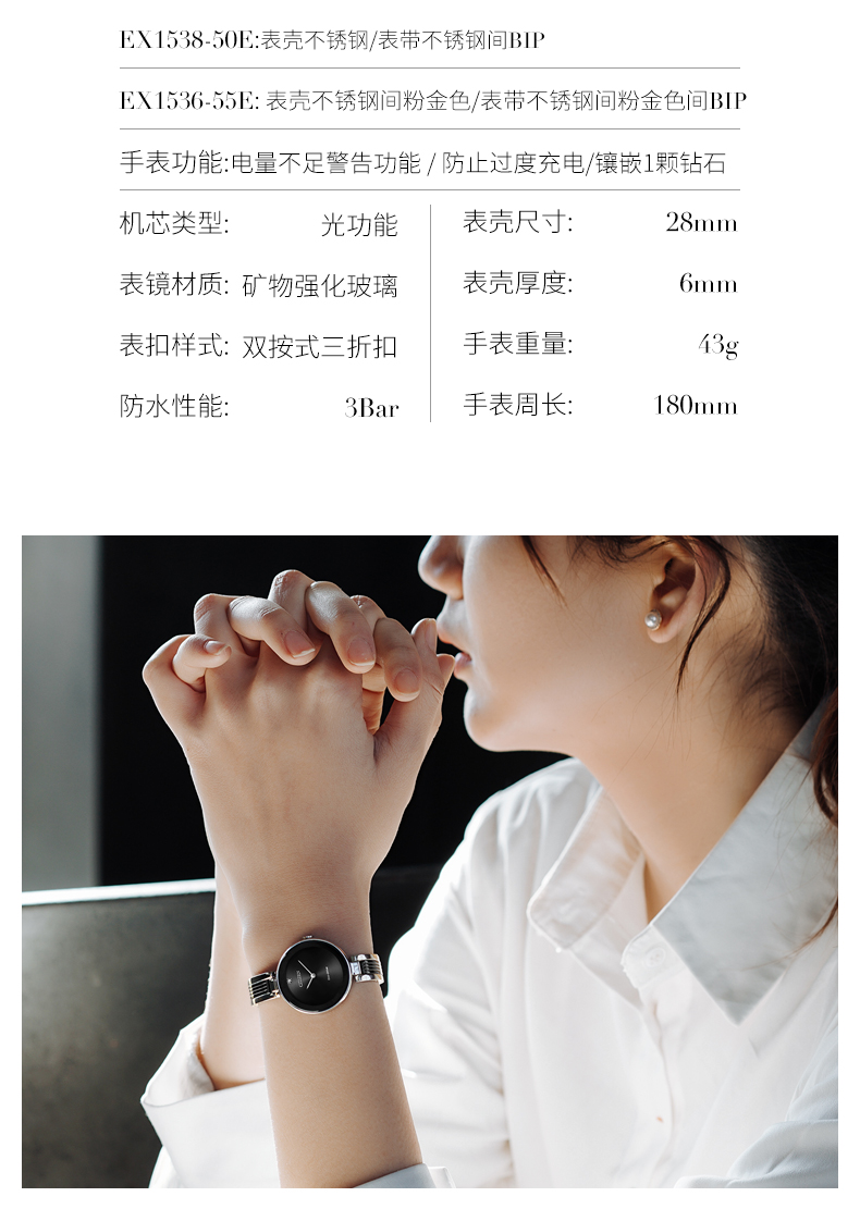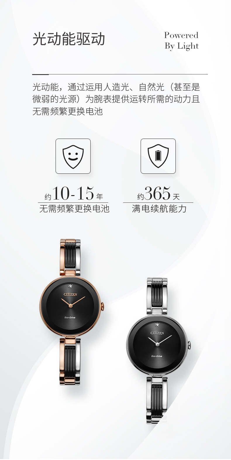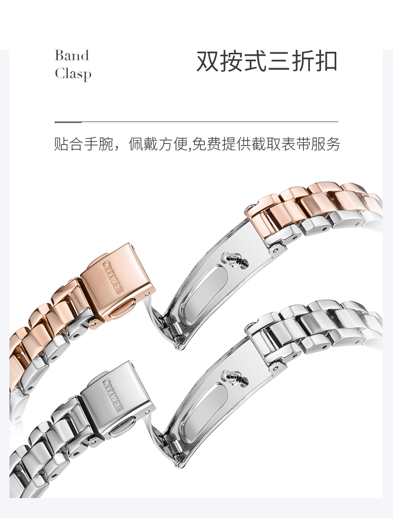 西铁城光动能女表不锈钢间粉金色间BIP镶嵌1颗真钻EX1536-55E