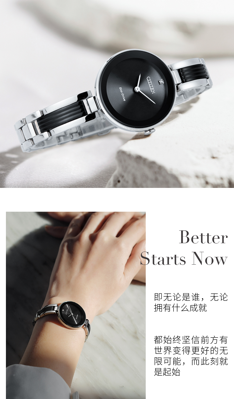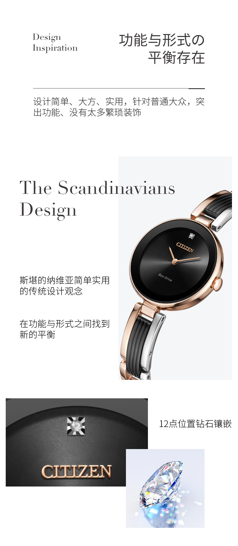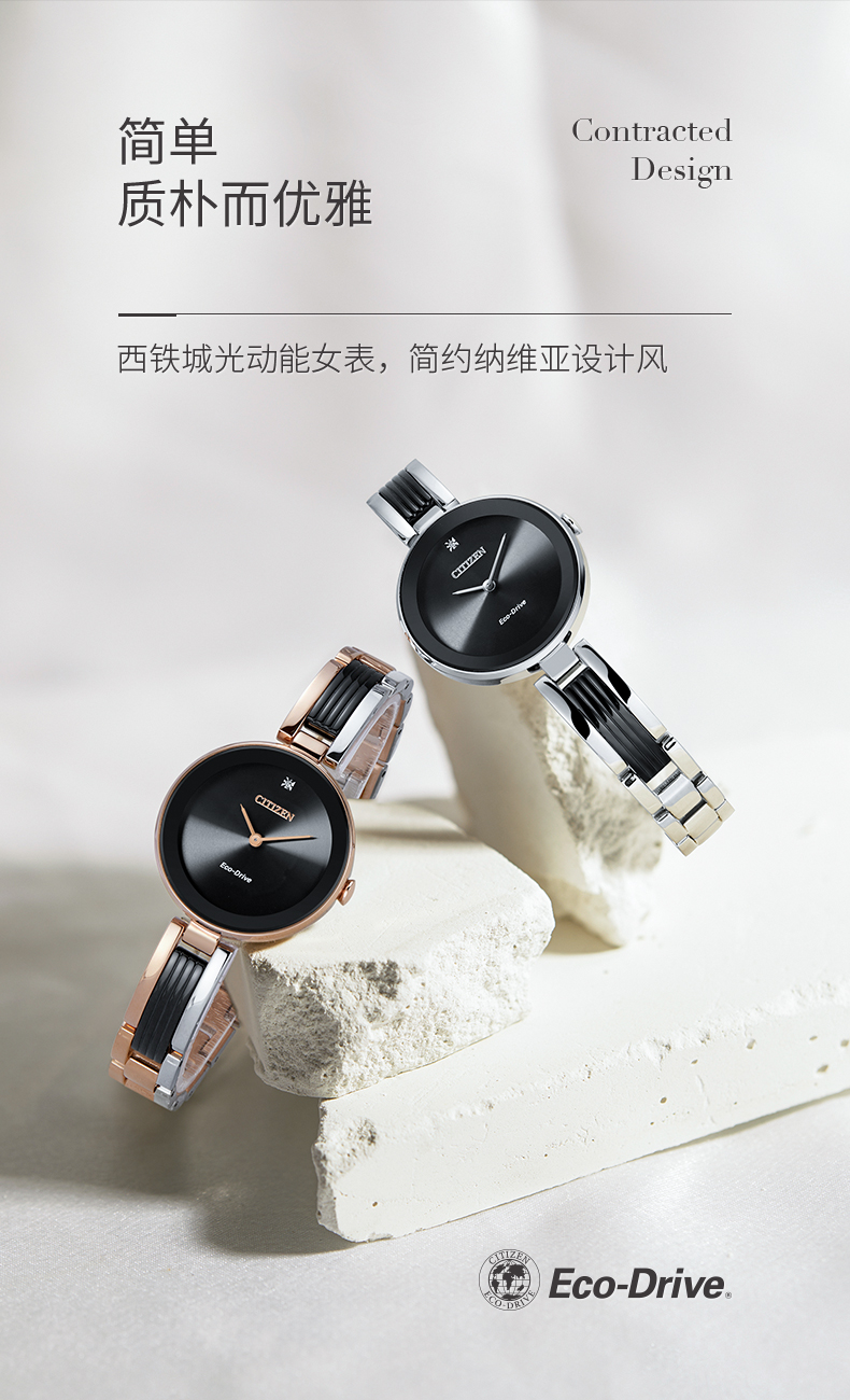 西铁城光动能女表不锈钢间粉金色间BIP镶嵌1颗真钻EX1536-55E