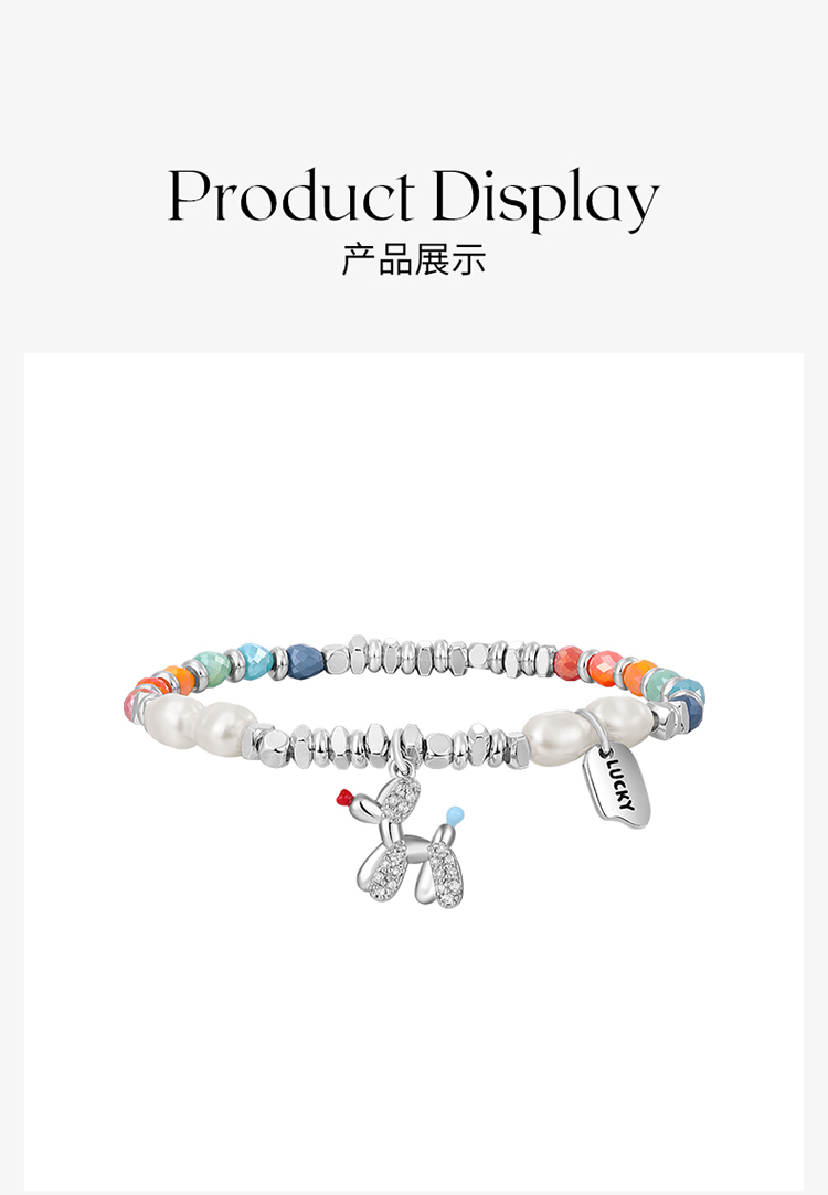 ZEGL浪姐美依礼芽同款气球狗彩色串珠手链女小众碎银子多巴胺饰品