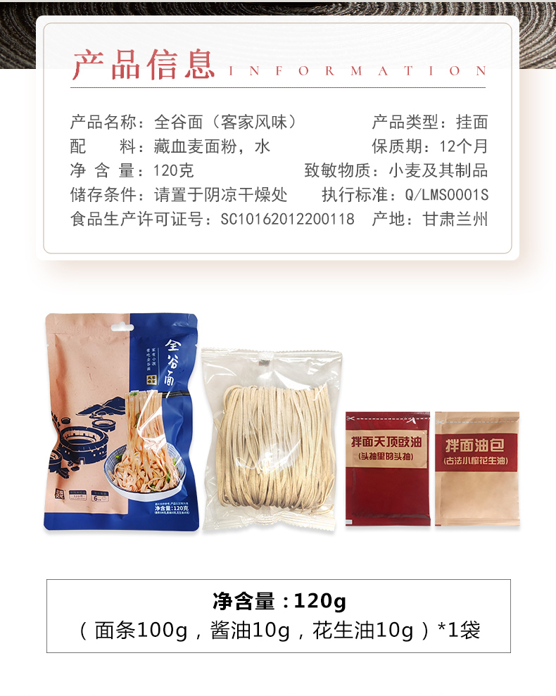客家全谷面袋装升级上新风味拌面精选藏血麦青藏食材自然晾晒手工面条金谷力