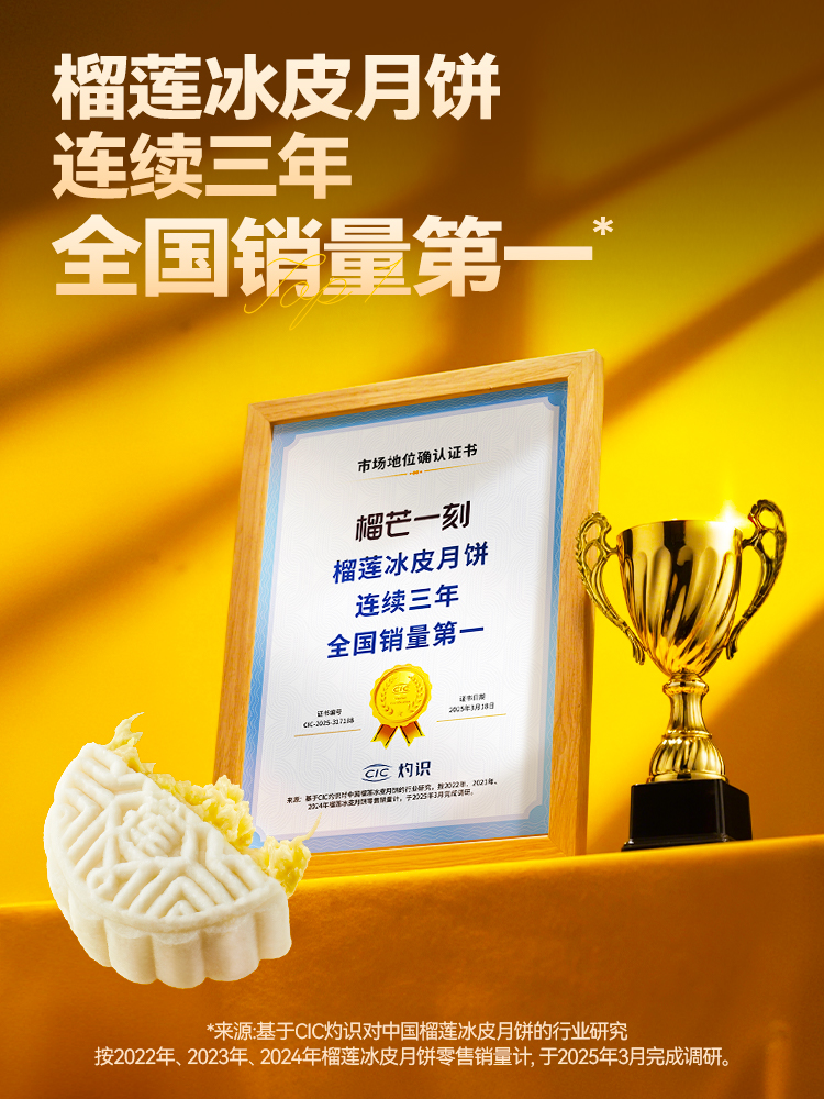 2025年中秋榴芒一刻 金枕榴莲冰皮月饼80克*6枚*1盒【含礼品袋】
