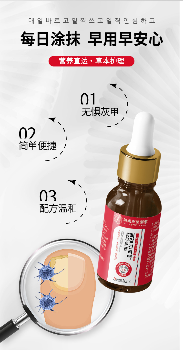 【滋养甲根 远离灰甲】韩国东星灰甲护理液 亮甲护甲甲沟炎 温润配方温和去灰 灰甲液灰指甲液30ml/盒