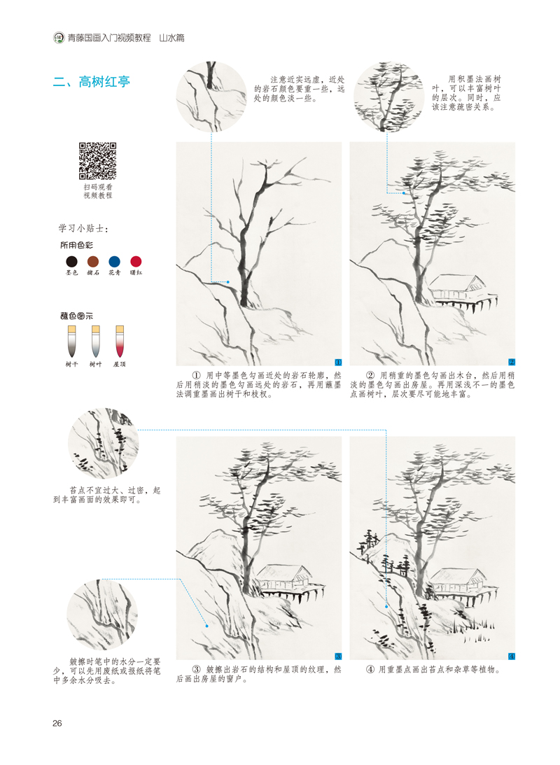 这套书基础知识讲解丰富,包含工具介绍、用笔方法、用墨方法、用色方法及构图的章法等内容;课程部分讲解了单个物体或完整画面的画法步骤,并附有视频教程、学习小贴士和局部精讲等内容,适合学生、成人国画爱好者等初学人群学习。总体来说,这是一套内容丰富、讲解细致的系统化的国画教程,应当能让国画爱好者学有所获。