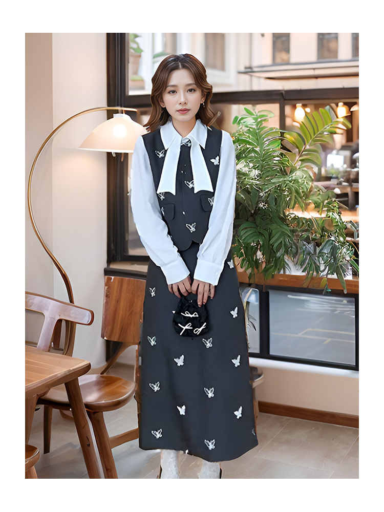 9/6奢姿大码女装2024秋季减龄蝴蝶马甲半身裙两件套胖妹妹时尚套装9943934052