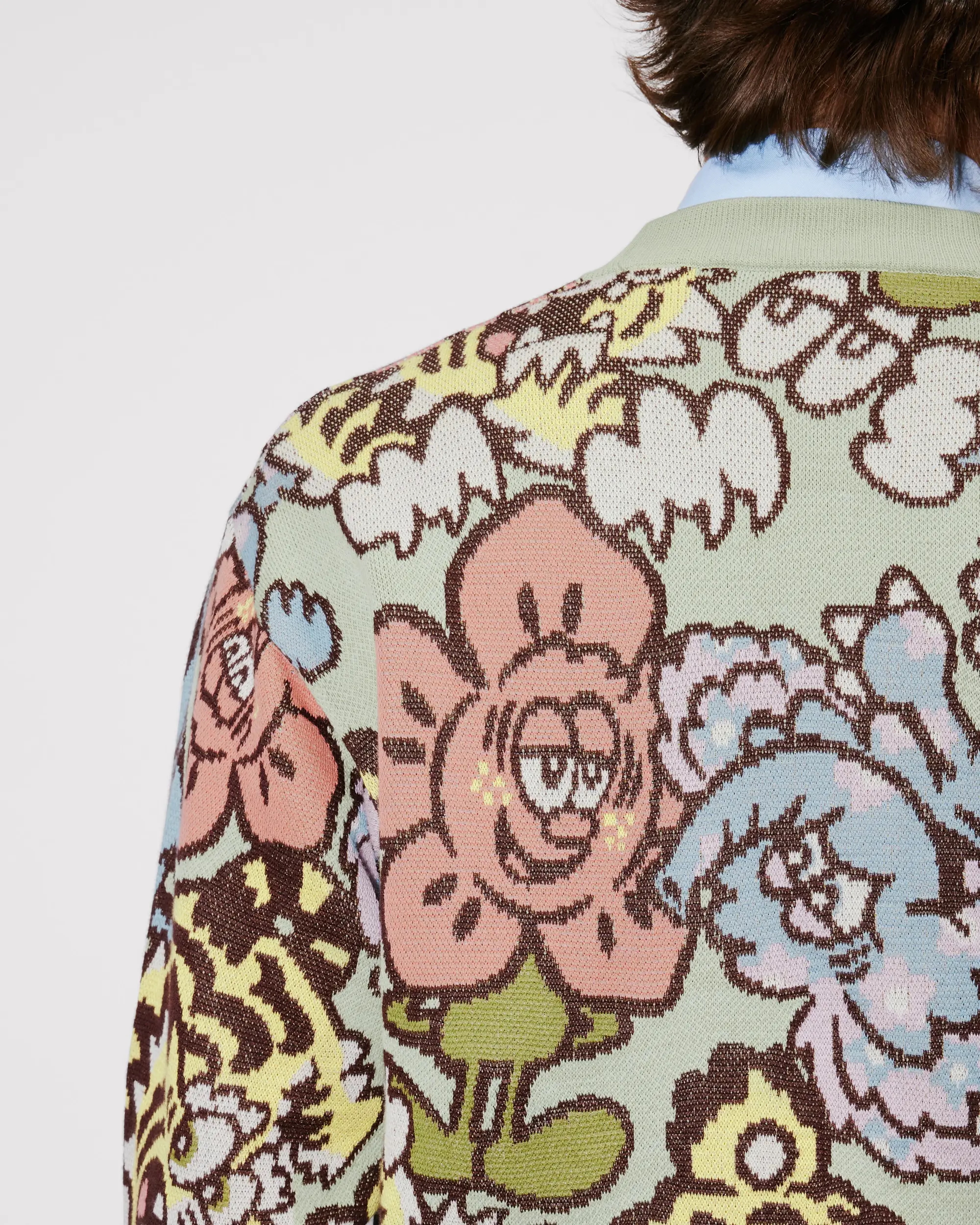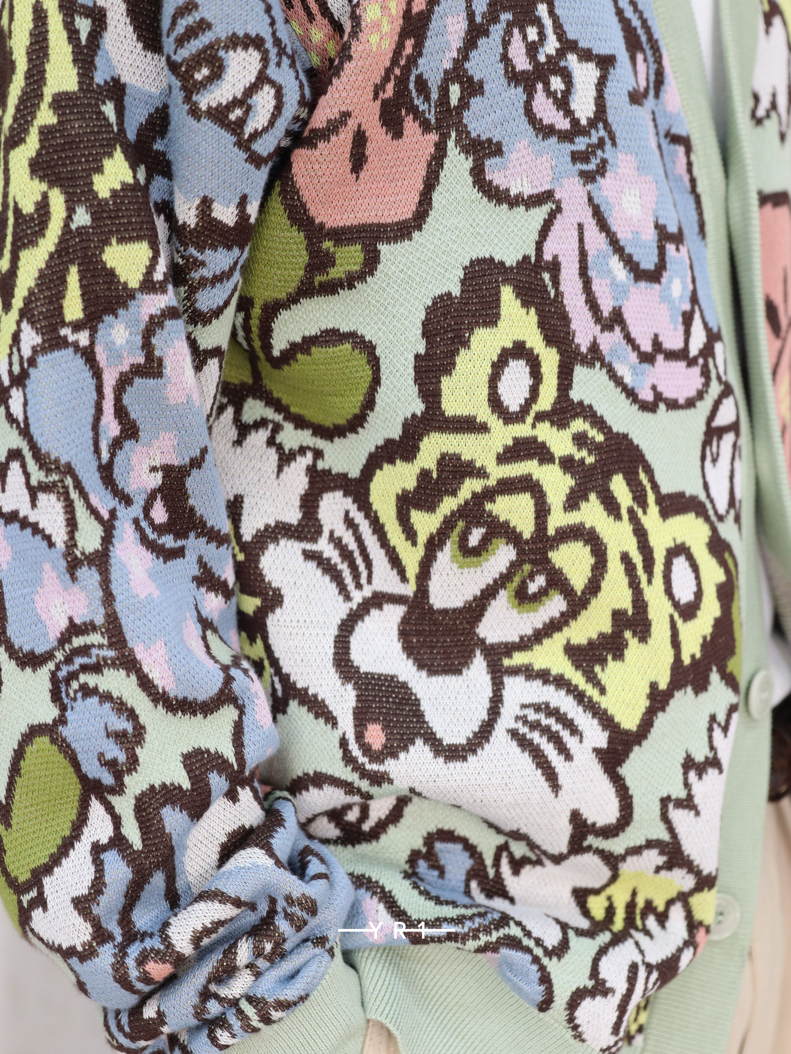 这款独特的开衫采用通体图案,带有该品牌的几个标志性图案:老虎、大象和博克花,以 Verdy 大胆俏皮的美学特征重新演绎。这款提花单品采用 8 种不同纱线混合而成,设计色彩鲜明。
