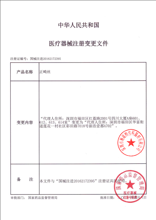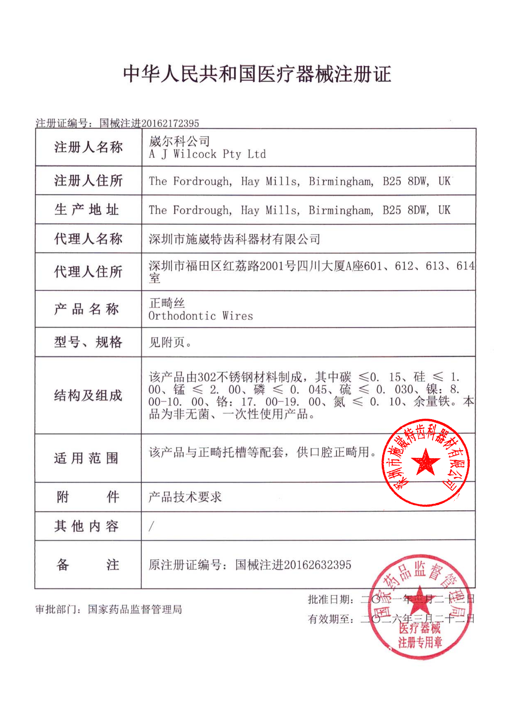 注册证编号:国械注进20162172395(原注册证编号:国械注进20162632395)