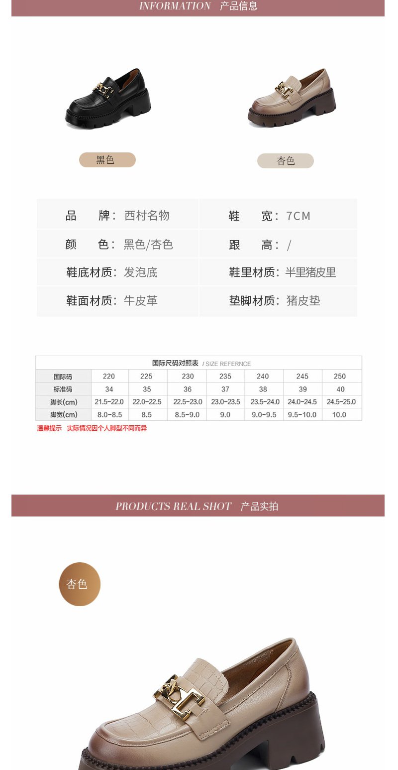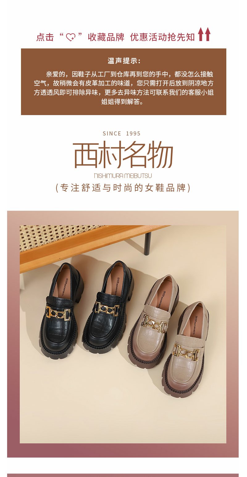西村名物2022年夏新款复古英伦风JK小皮鞋厚底真皮一脚蹬乐福鞋女单鞋T22AM11061